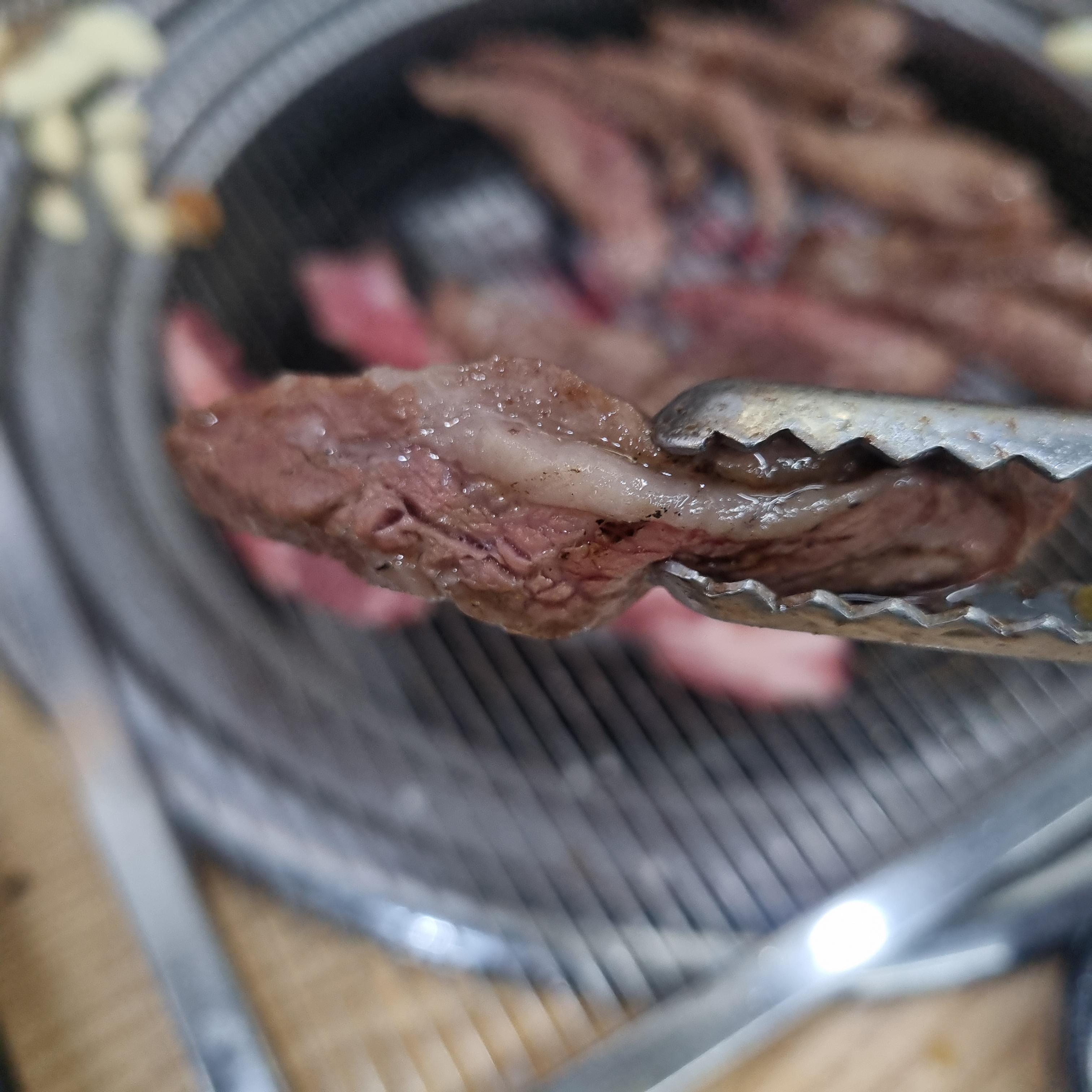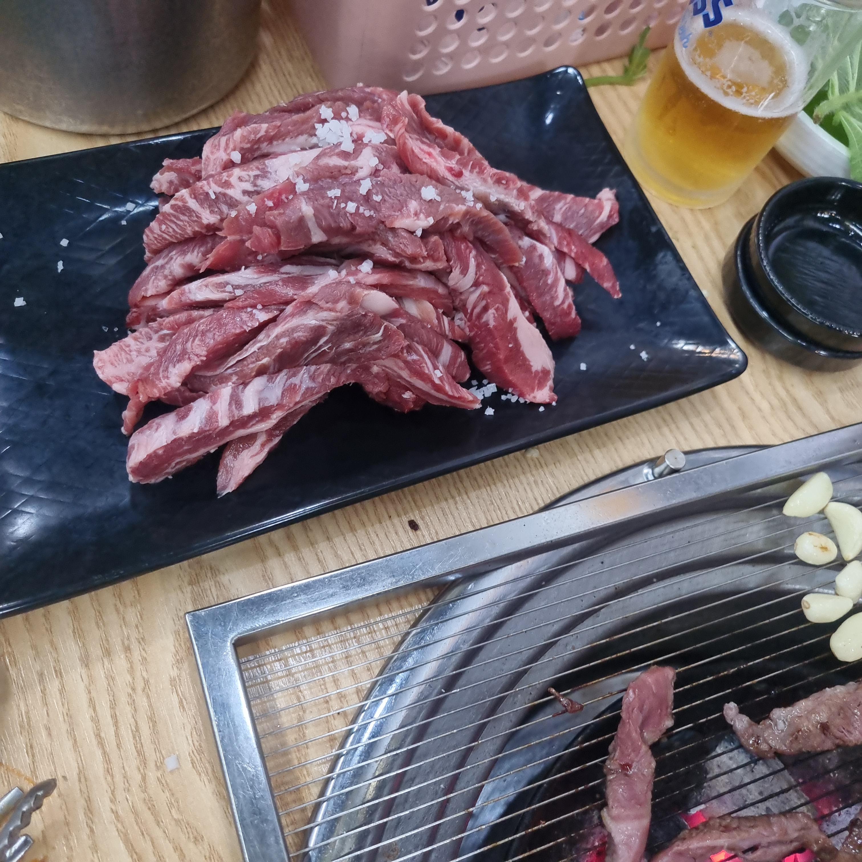 수입산 소고기이지만 싱싱하게 보이고 숯불에 구워 아주 맛있을 것 같습니다.