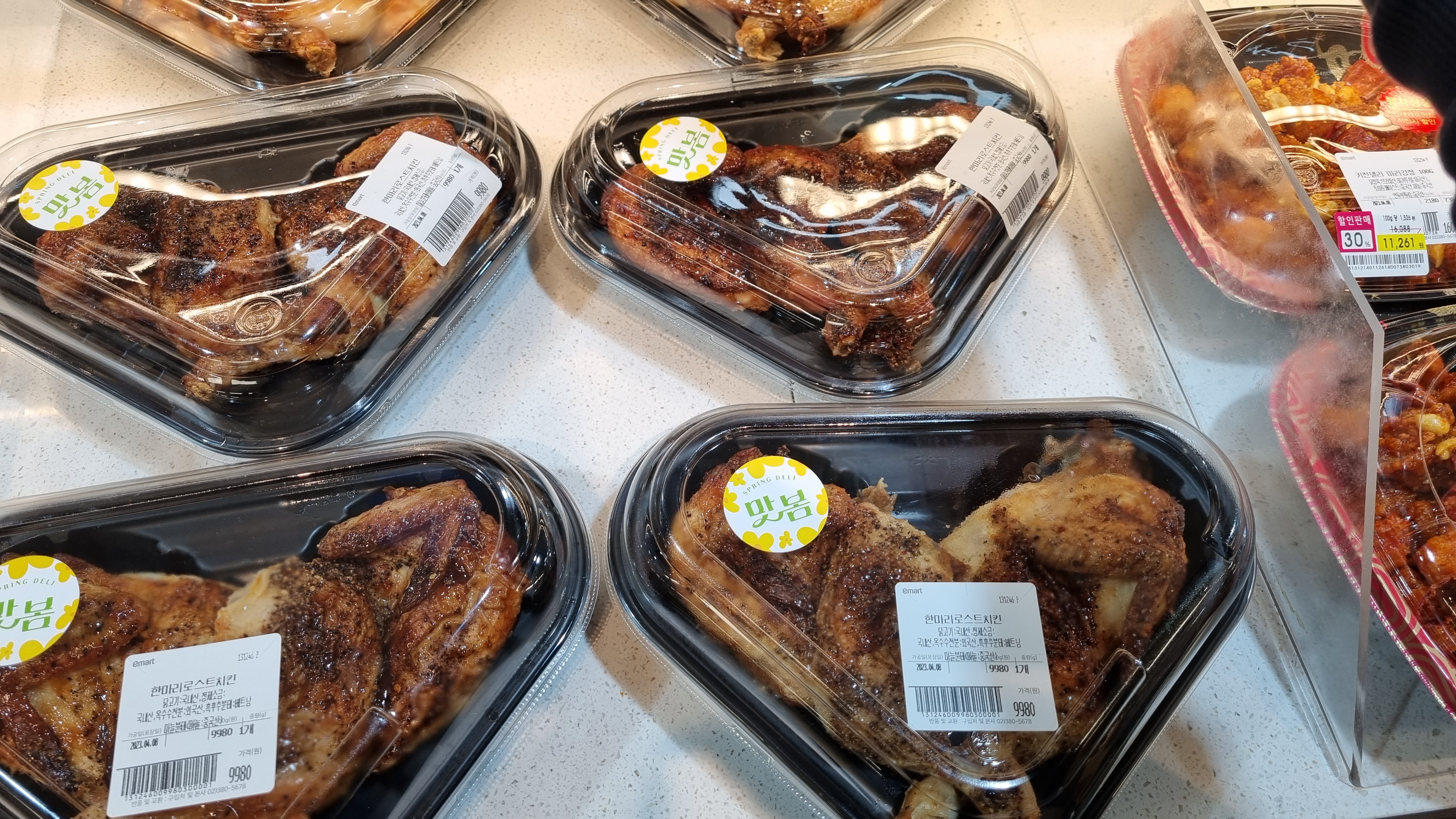 매장을 한참 돌아다니다가 푸드코너등을 돌아보고 있었습니다. 처음 올때 목적은 저렴한 후리이드치킨과 양념치킨을 구입하려 했습니다. 전문매장에서 구입하면 2만 원이 넘지만 대형마트에서는  8천 원 정도면 한 마리를 구입할 수 있습니다.
