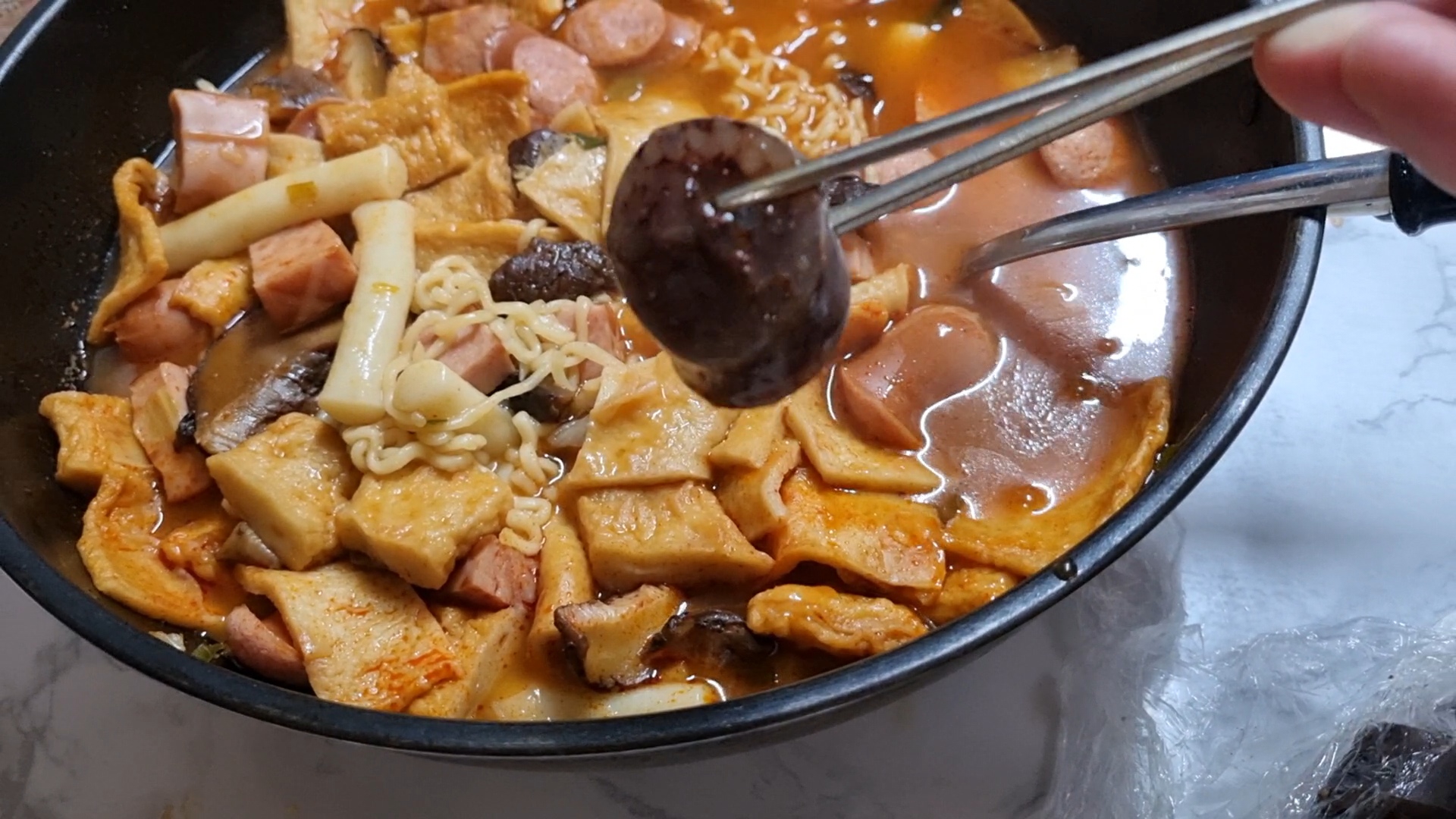 라볶이는 집에서 재료를 준비하여 직접 만들었데 순대와 함께 드시려면 떡볶이 국물을 조금 진하고 걸쭉하게 하면 더 맛있게 드실 수 있습니다.