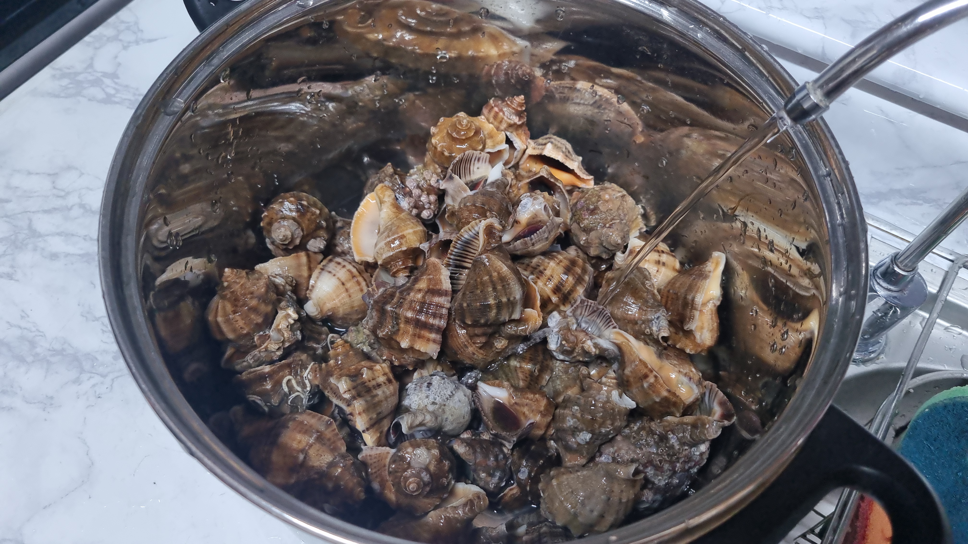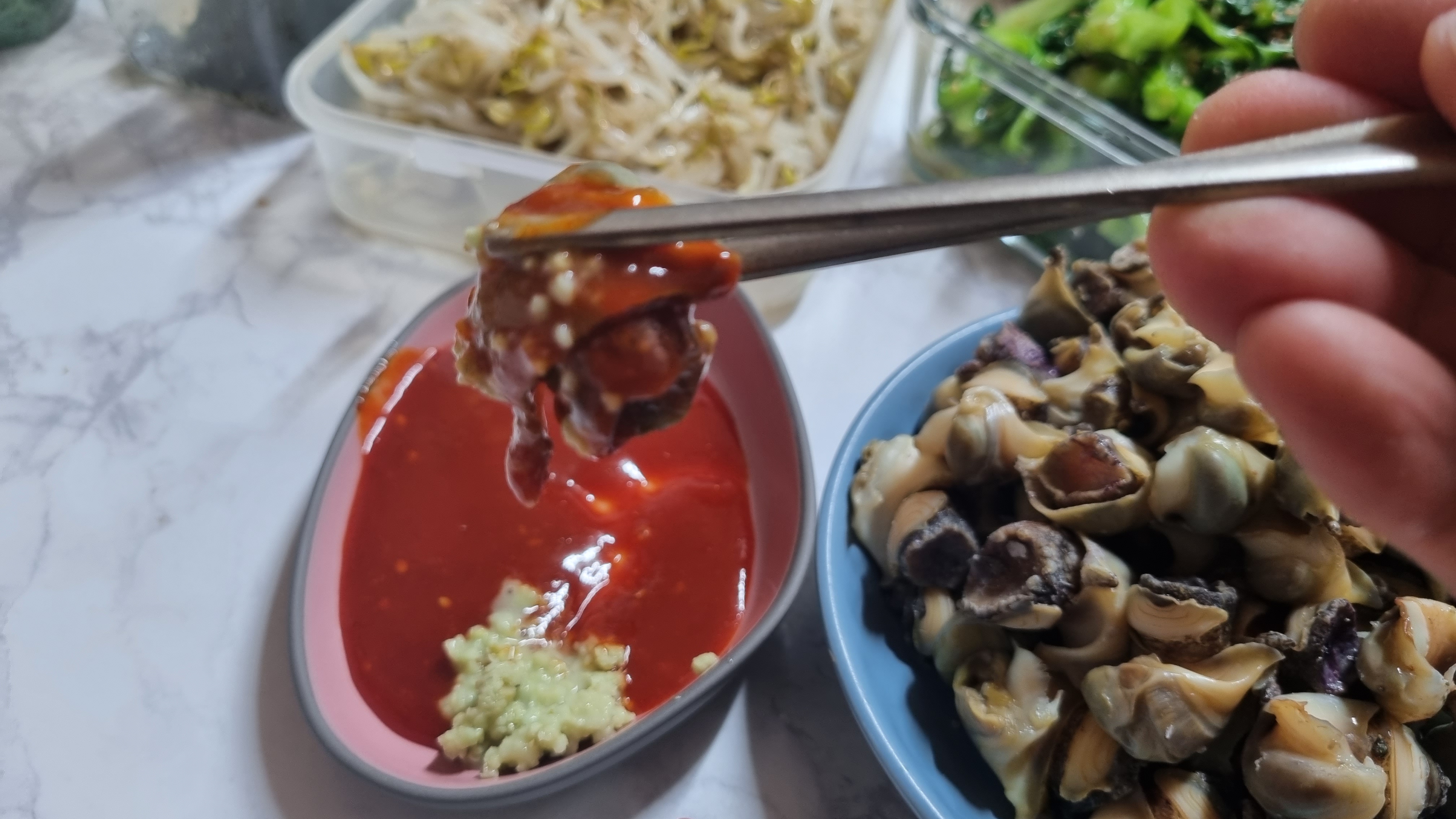 조개류 등은 삶는 것보다 찌는 법으로 요리해도 문제가 없는데 소라는 물에 담가 삶아야 잘 삶아지고 더 맛있고 안전합니다.