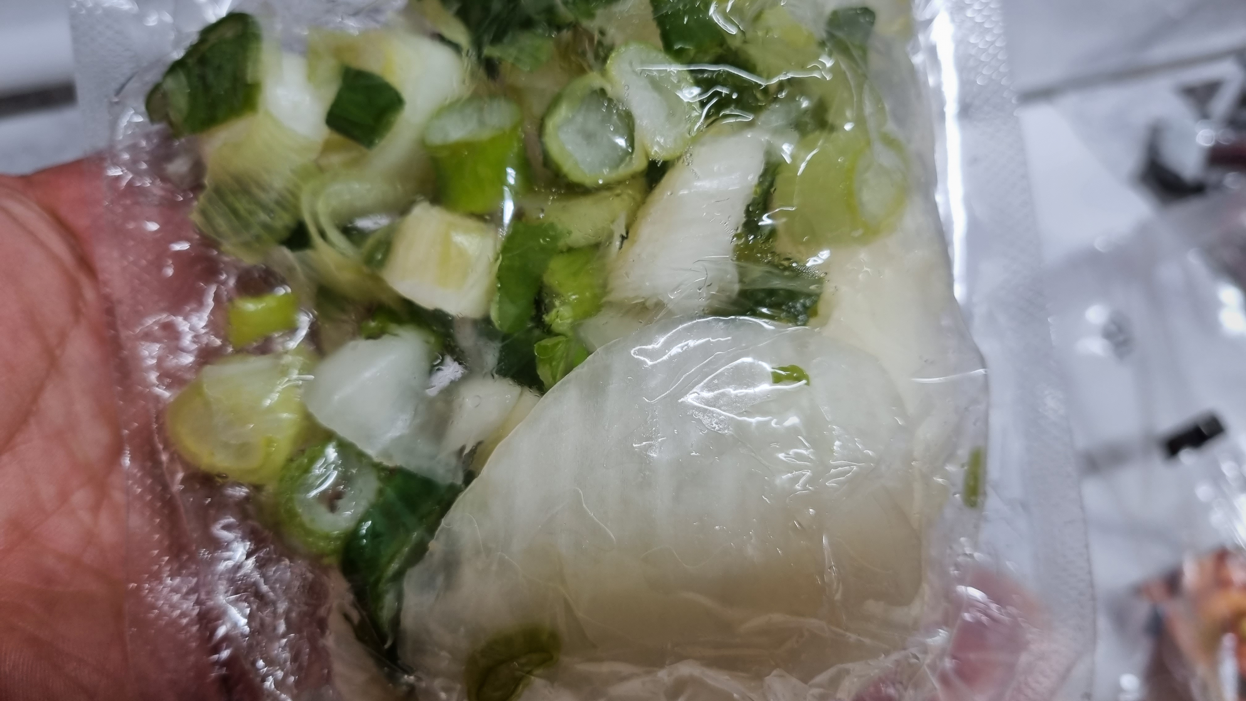 포장지를 개봉하니 처음 보이는 것이 이렇습니다. 콩나물 조금과 양파와 대파가 썰어져 진공포장이 되어 있고 소시지도 진공포장이 되어 있어 담아져 있습니다.