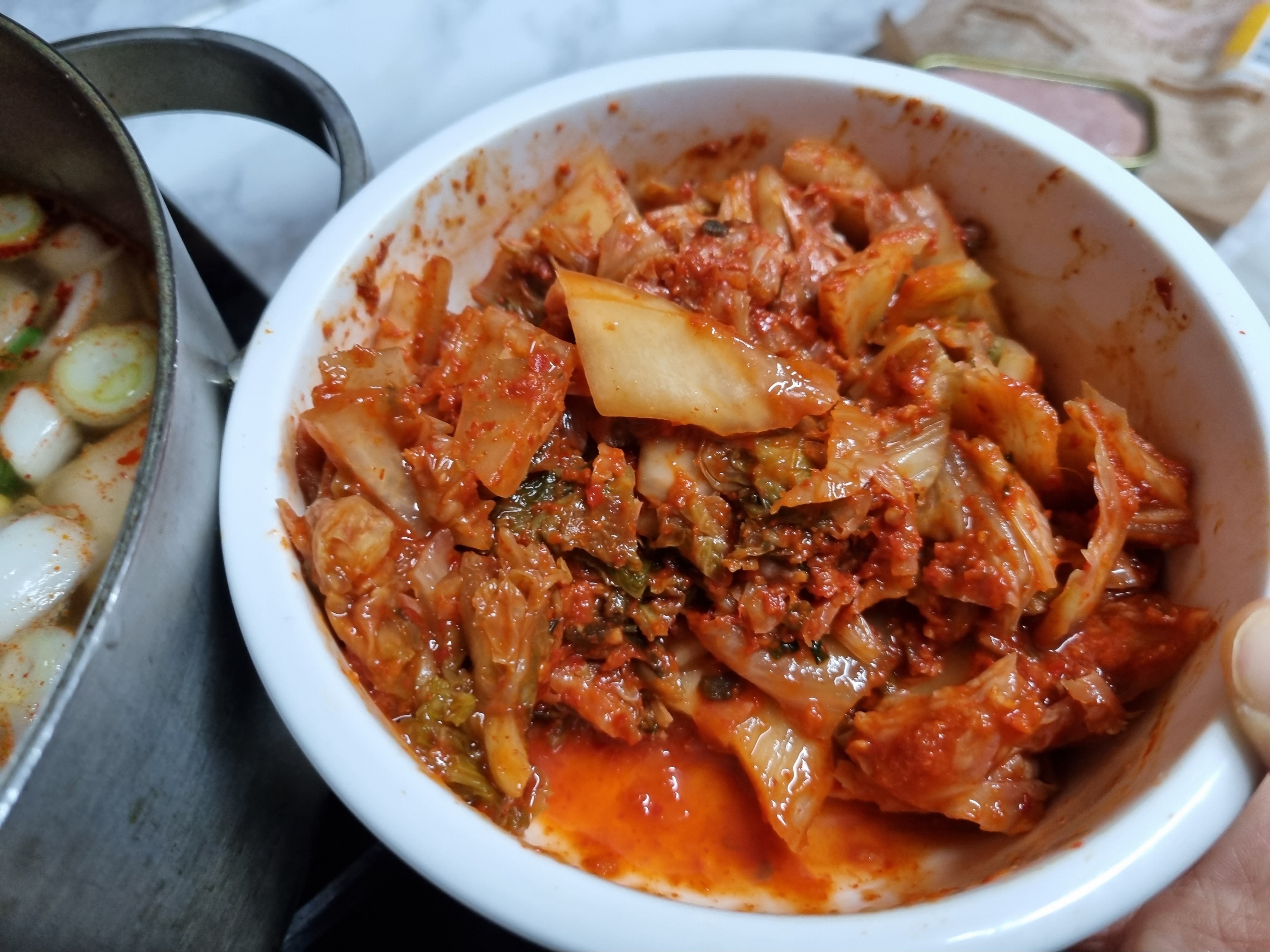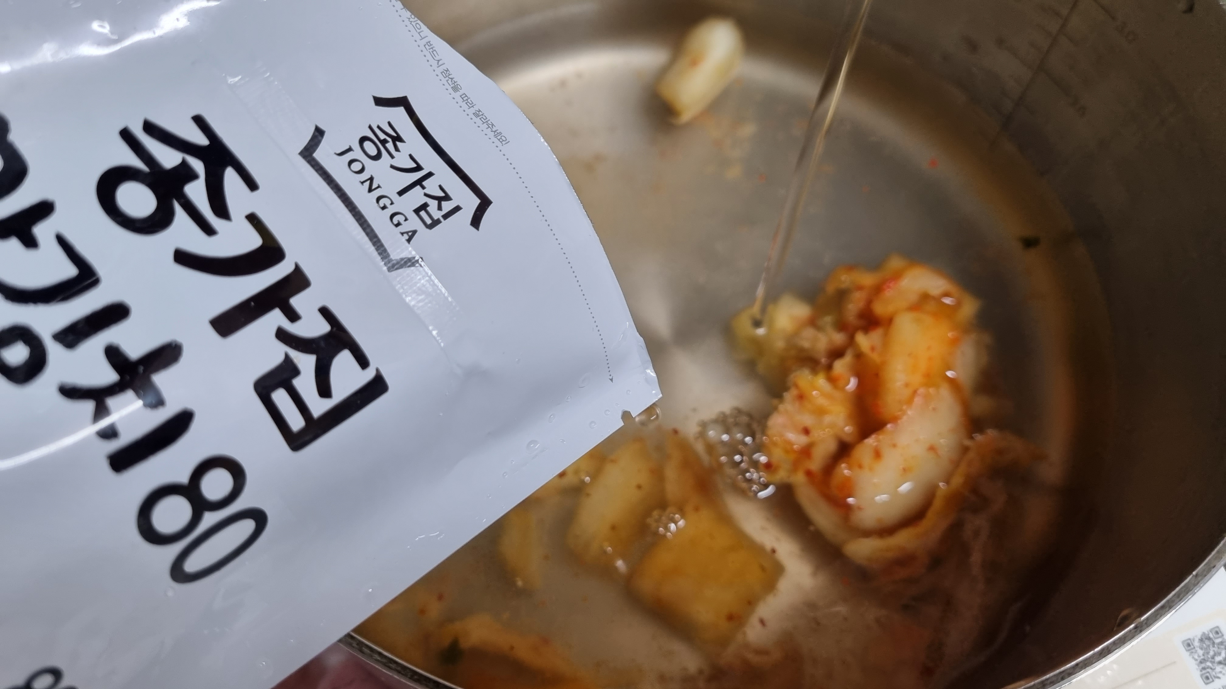 집에 대파와 양파가 있어 조금씩 더 넣었고 김치를 국물과 함께 기본으로 들어있는 것보다 추가로 집에 있는 것을 더 많이 넣었습니다.