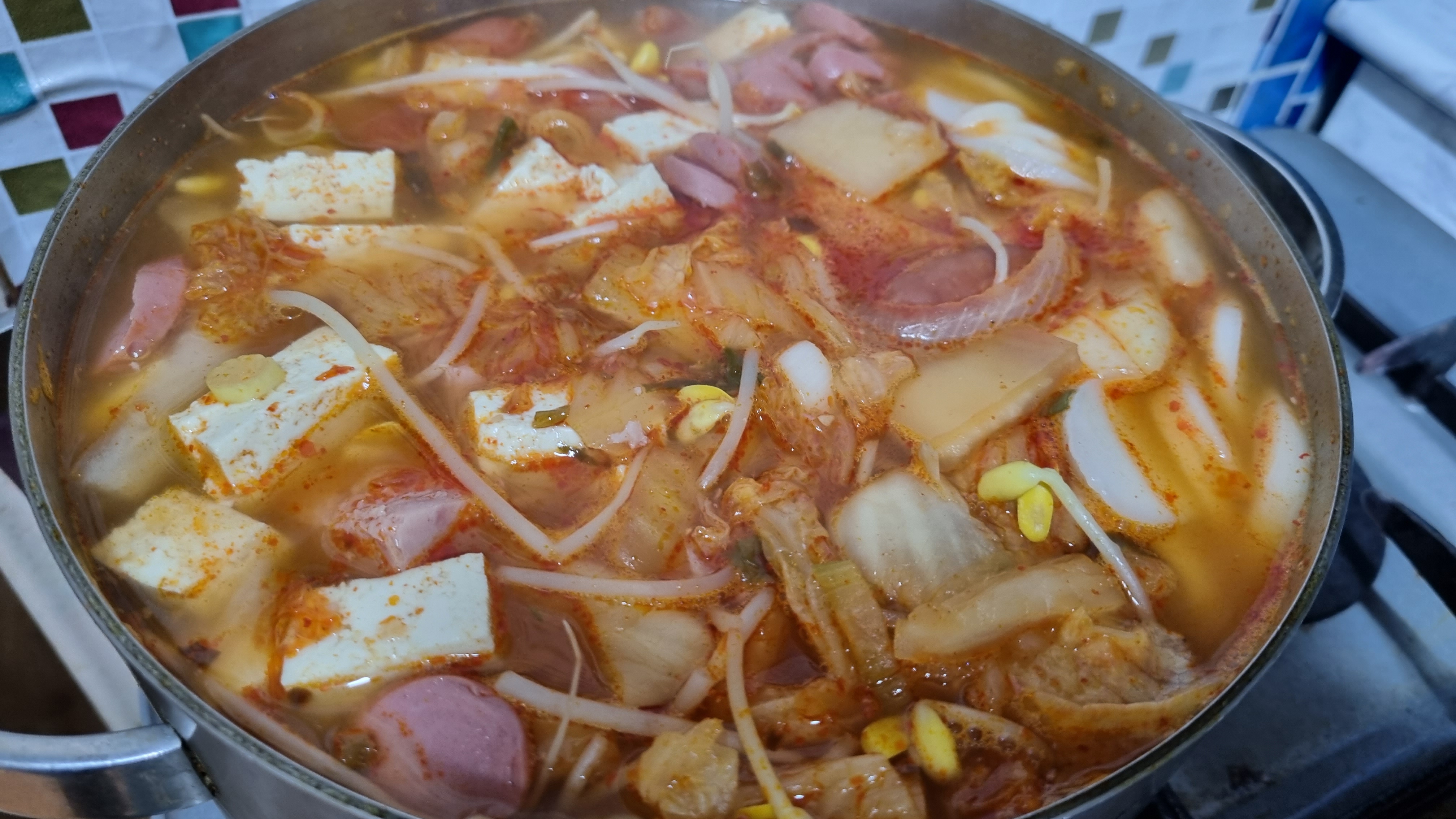 한참을 만들다가 뭔가가 아쉽고 냉장고를 열어보니 두부가 있어 한모를 추가했습니다. 오늘따라 추가 재료를 많이 넣었는데 일단 마음에 듭니다.