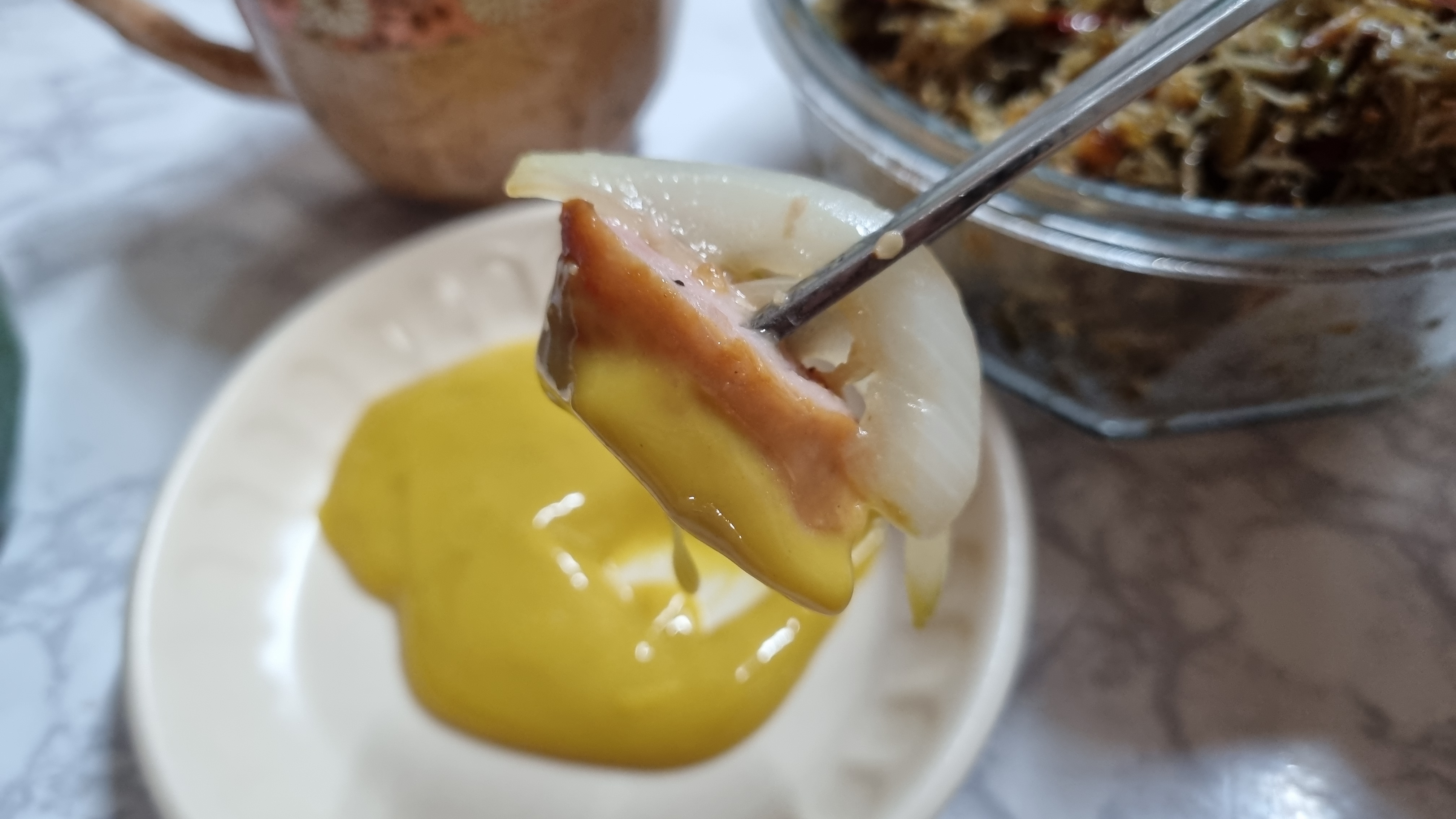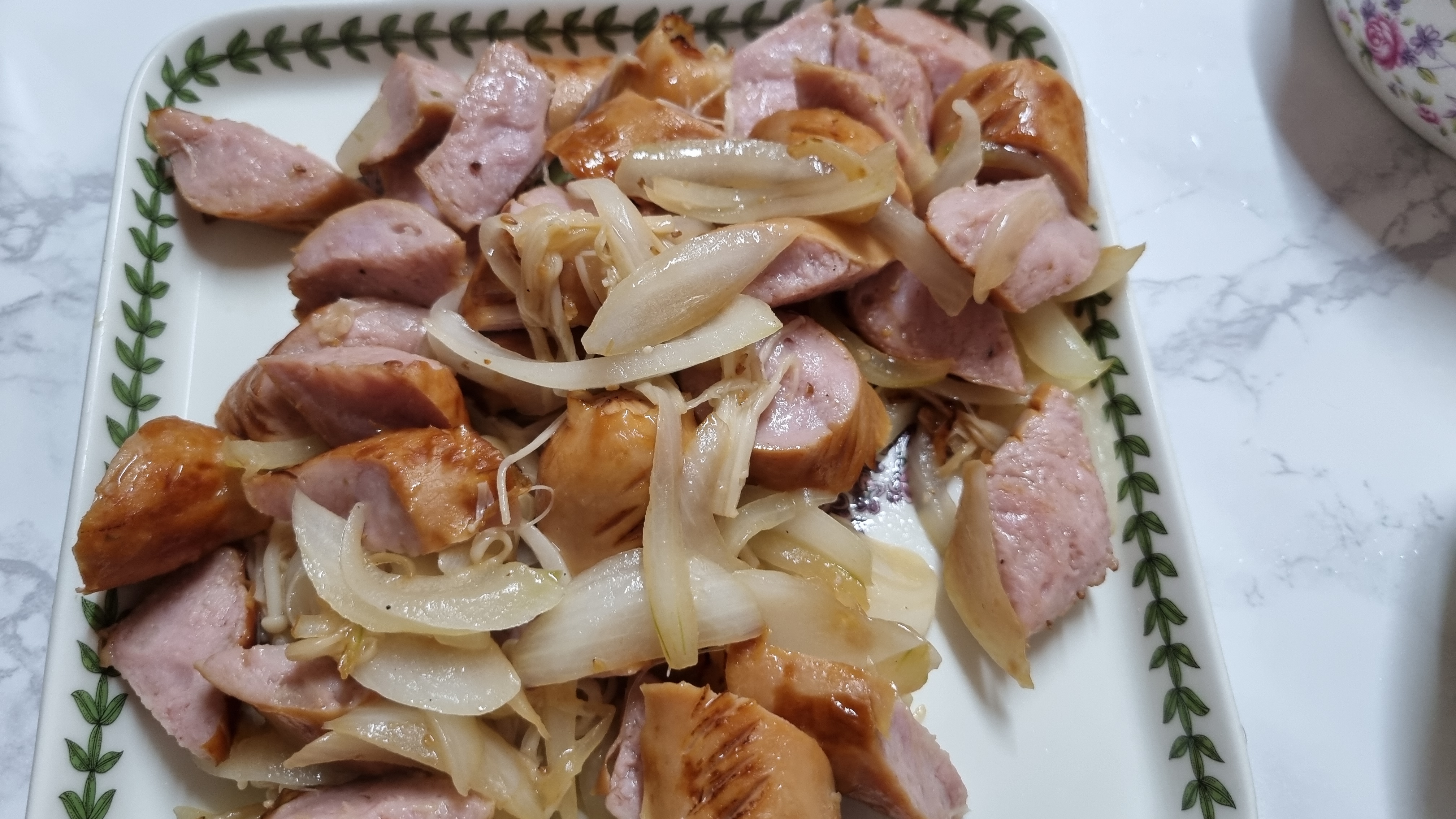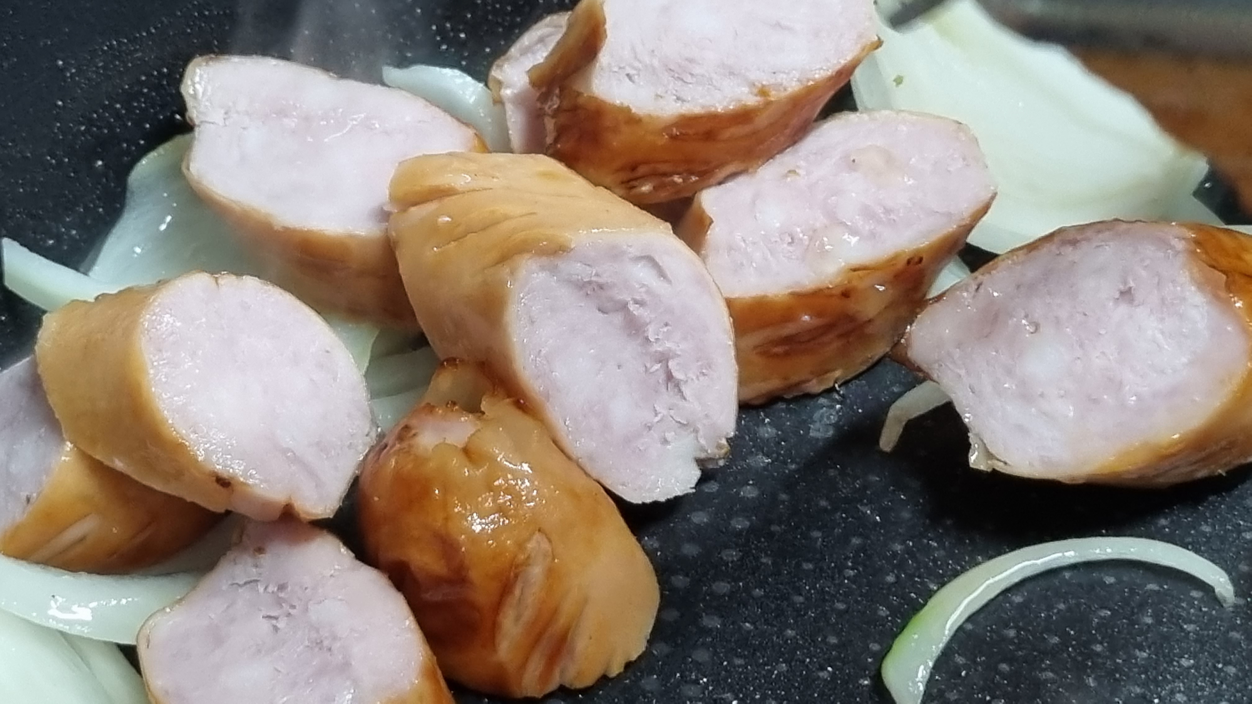 이렇게 간편하게 만들어 한 접시 만들었습니다. 양파와 소시지는 궁합이 엄청 좋으며 기름기를 양파가 제거하고 소시지의 안 좋은 부분을 보충해 준다고 합니다.
