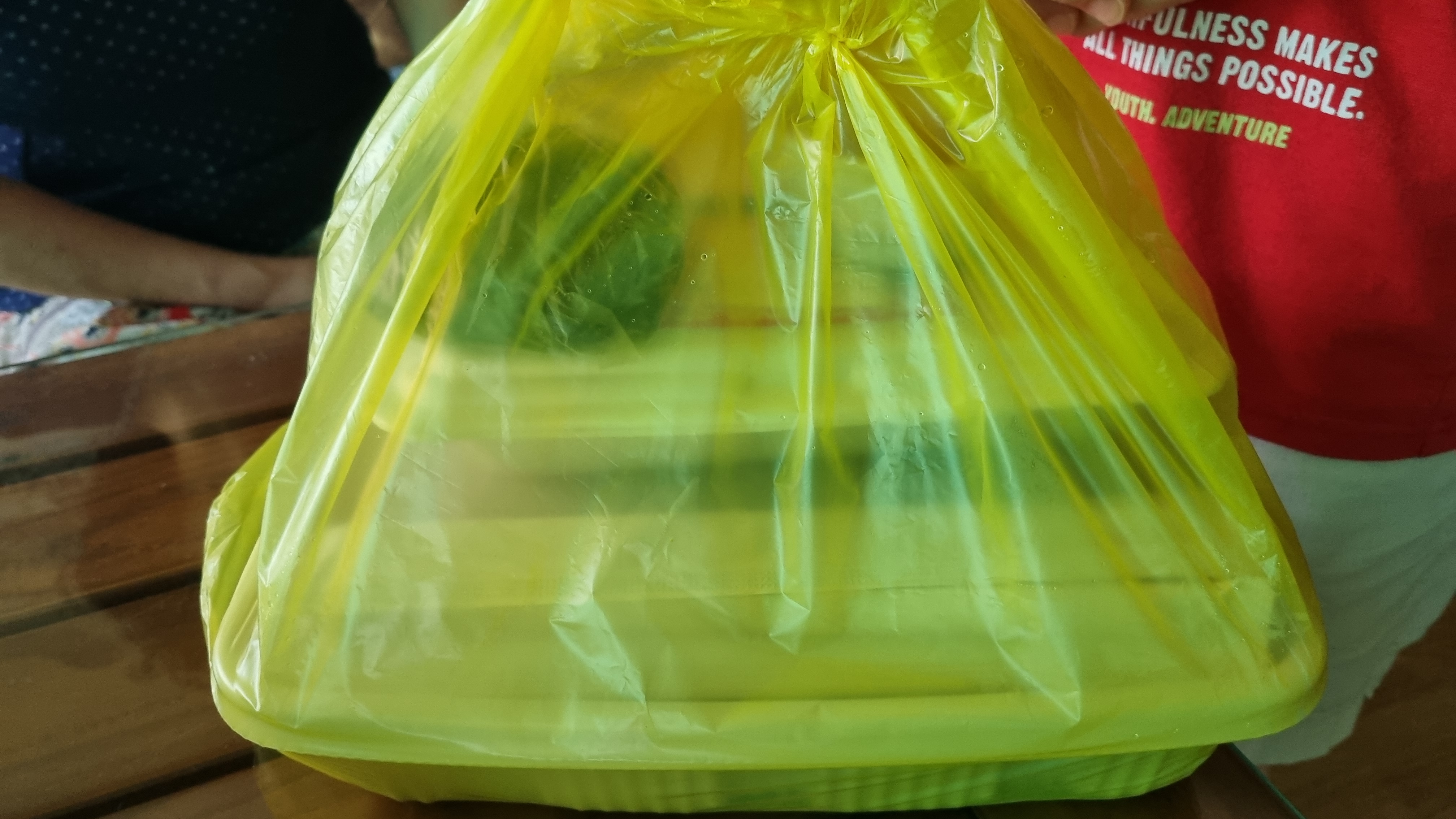 미리 메뉴와 크기를 주문하여 정해진 시간에 가면 가져 가실 수 있는데 필자는 시간이 되어 배달료를 아끼기 위해 직접찾으러 갔는데 위의 사진처럼 봉지에 음식이 담아져 포장되어 있습니다.
