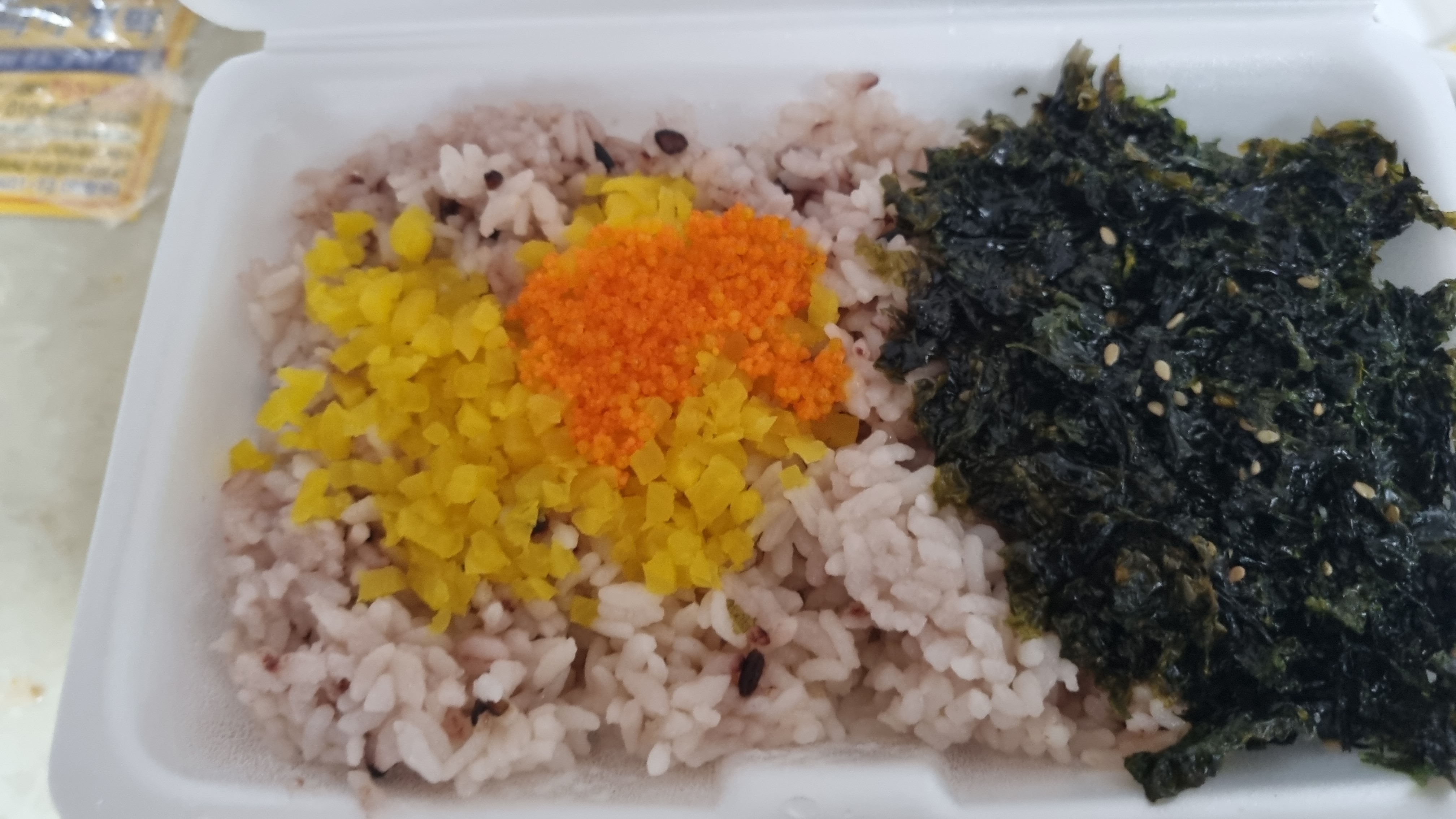 먼저 아귀찜과, 주먹밥재료, 초장, 김가루 이렇게 구성되어 있습니다. 위의 왼쪽사진이 주먹밥을 만들대 사용가능한 김가루이고 오른쪽은 초장으로 아구찜 드실때 입맛에 따라 드시면 되겠습니다.