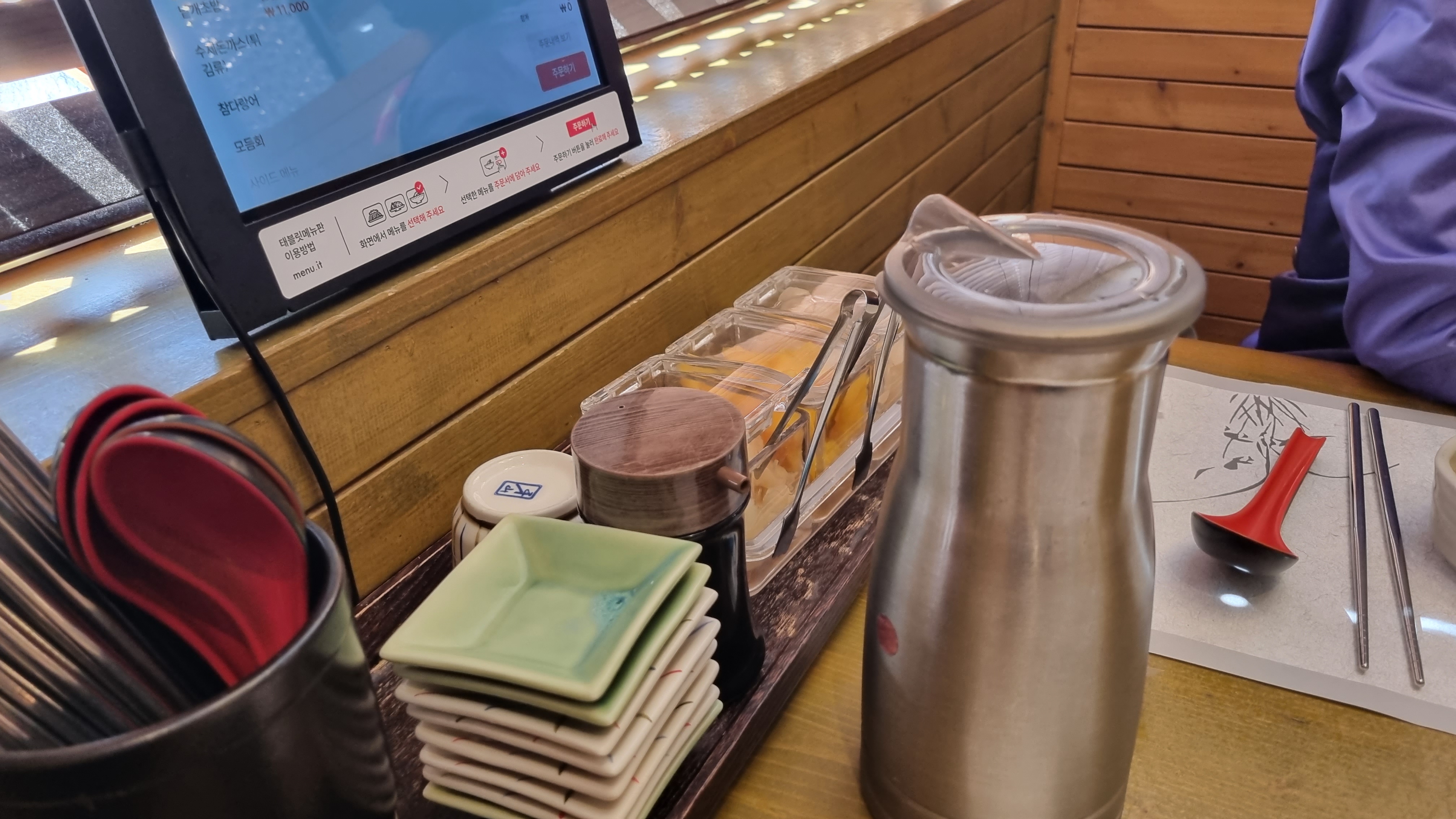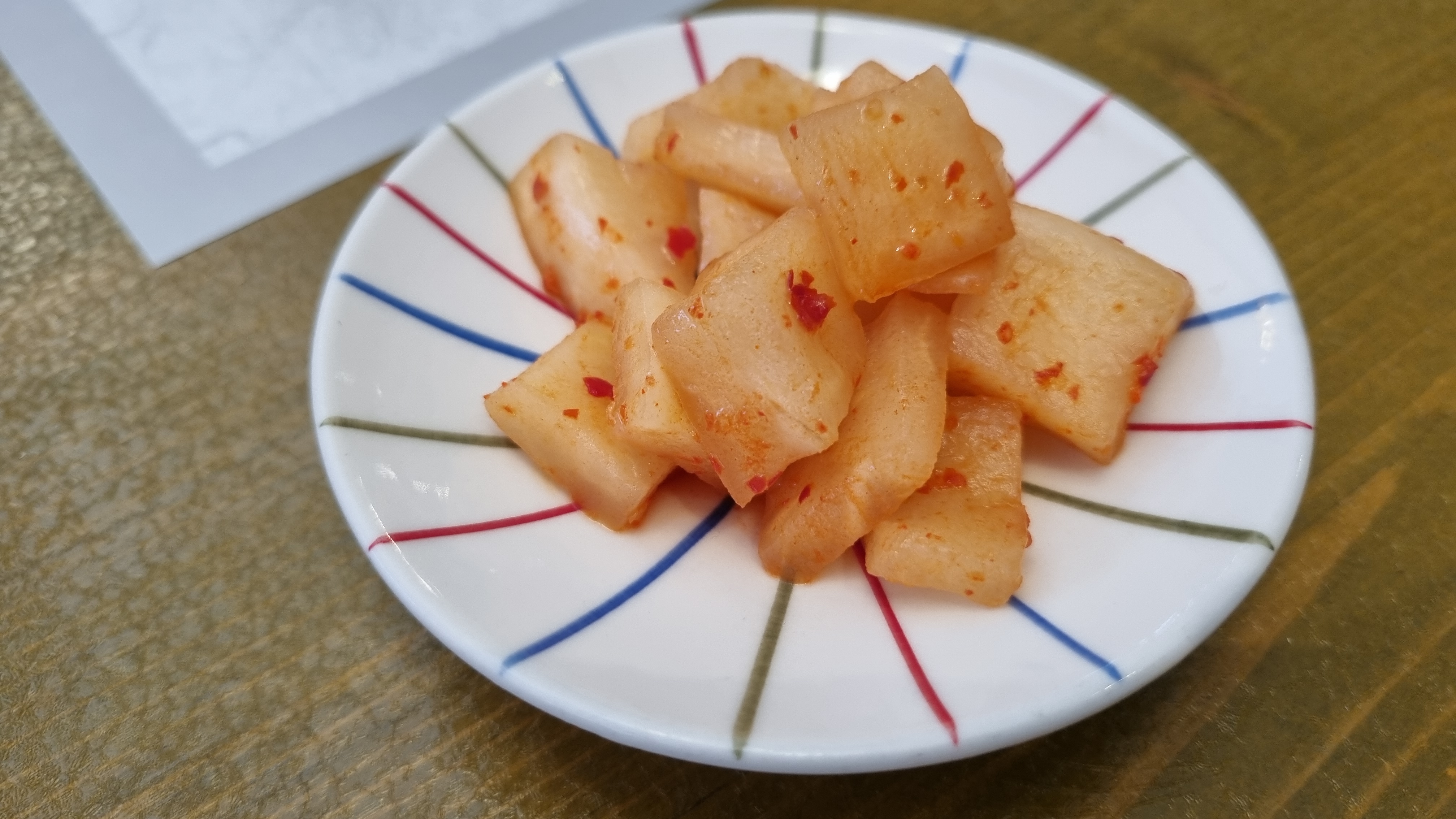 기본반찬은 깍뚜기 하나 나오고 바로 위 사진에 있는 3가지 반찬은 테이블에 기본으로 세팅되어 있어 본인들이 옆에 있는 조그마한 접시에 덜어 드시면 됩니다.