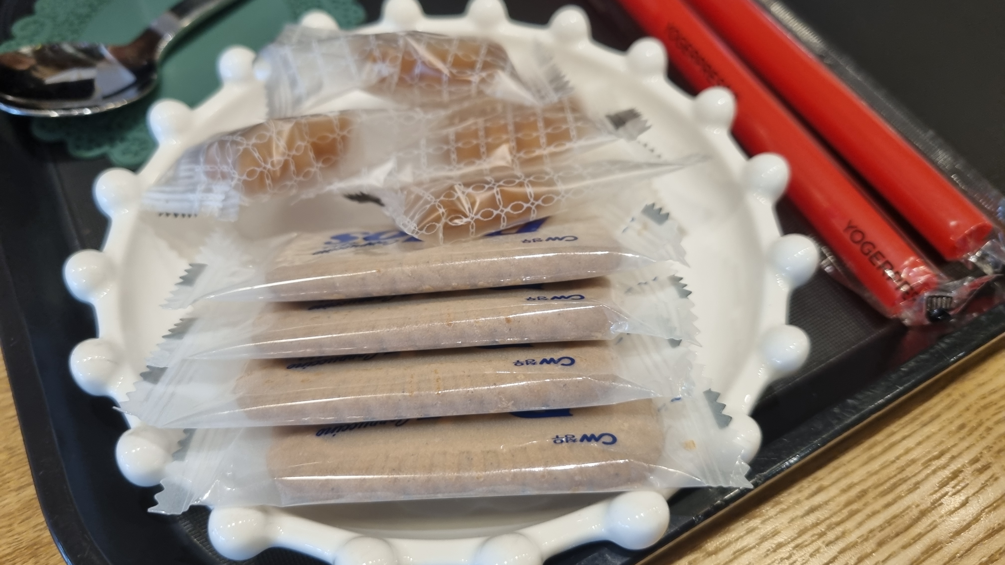평소에 과자를 잘 안 먹는데 여기서는 아주 맛있어 계속 입으로 들어갑니다.