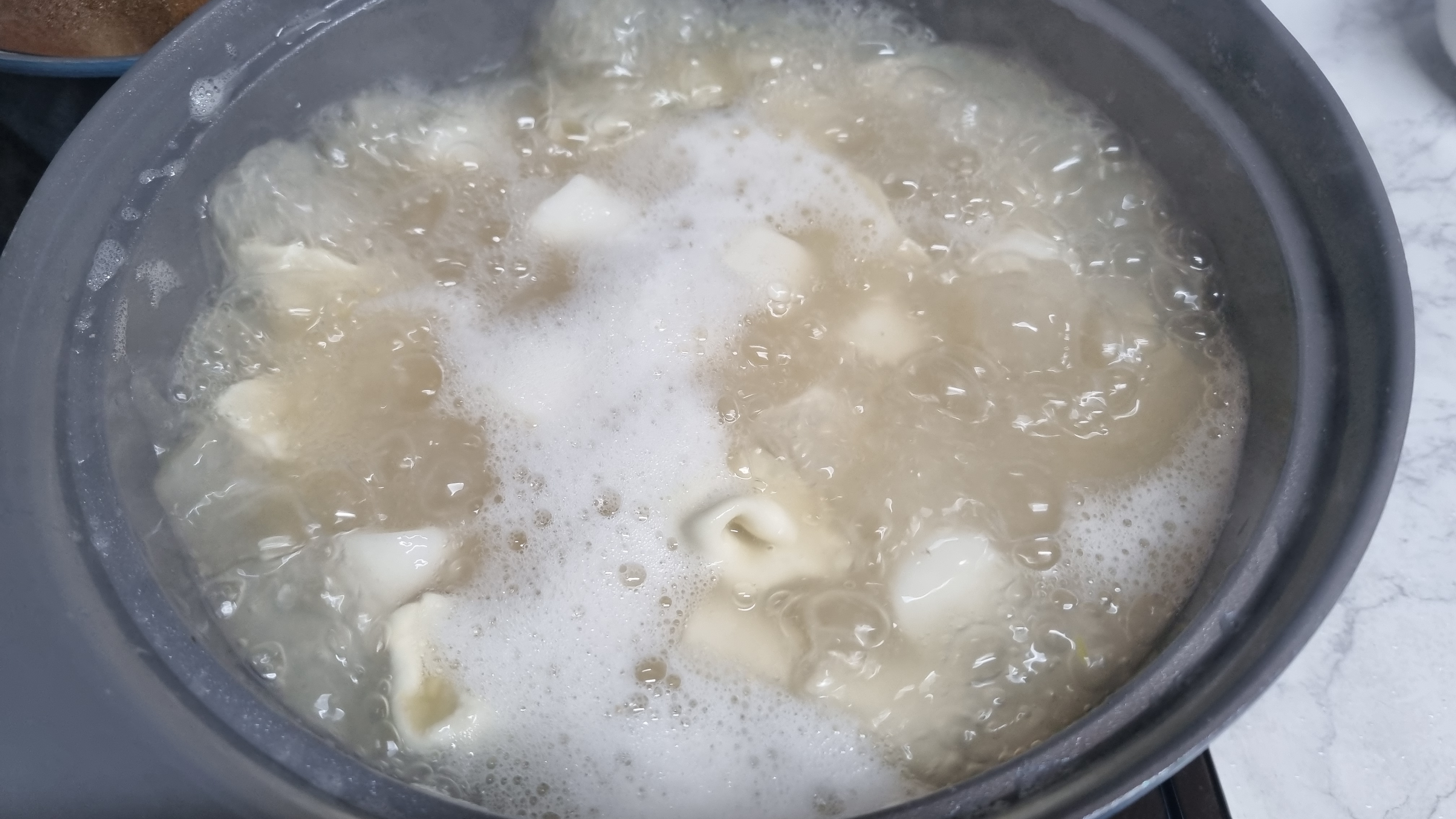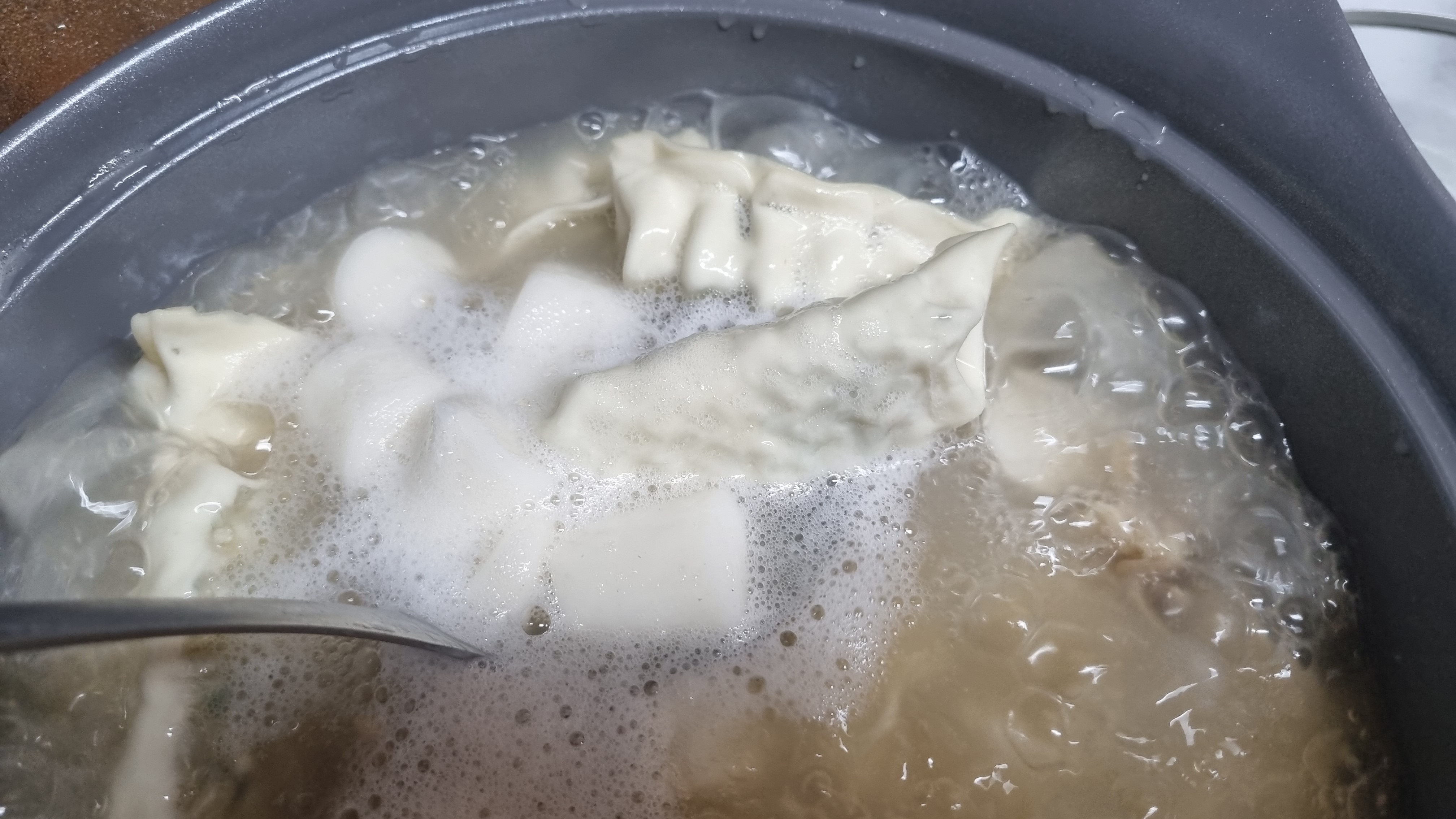 끓이는 동안 떡이 물렁하고 부드럽게 되면 여기서 만두를 넣으면 좋은 타이밍입니다. 반드시 떡이 먹기 좋게 물렁하게 될 때 만두를 넣어야 조화가 잘 이루어집니다.
