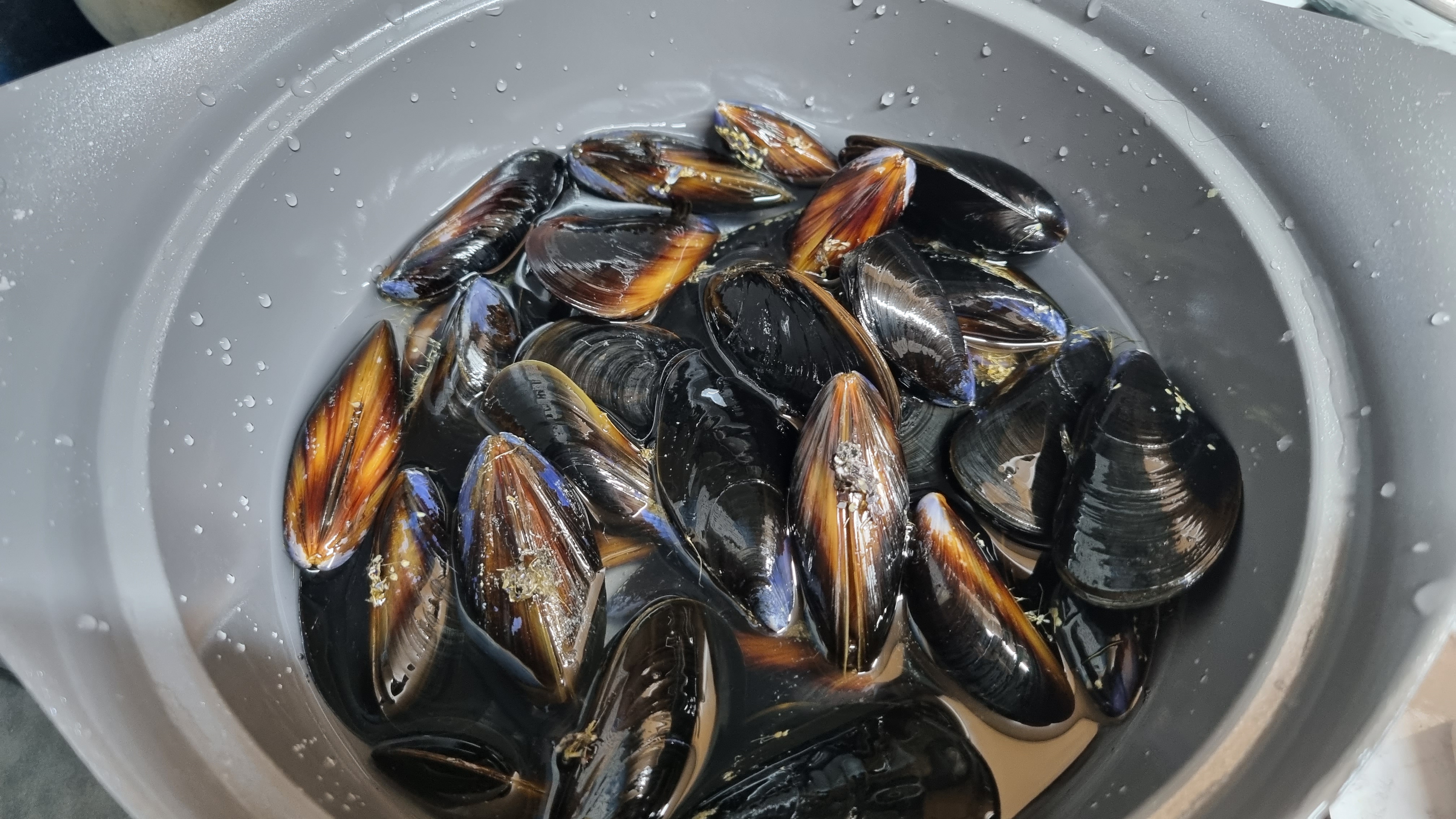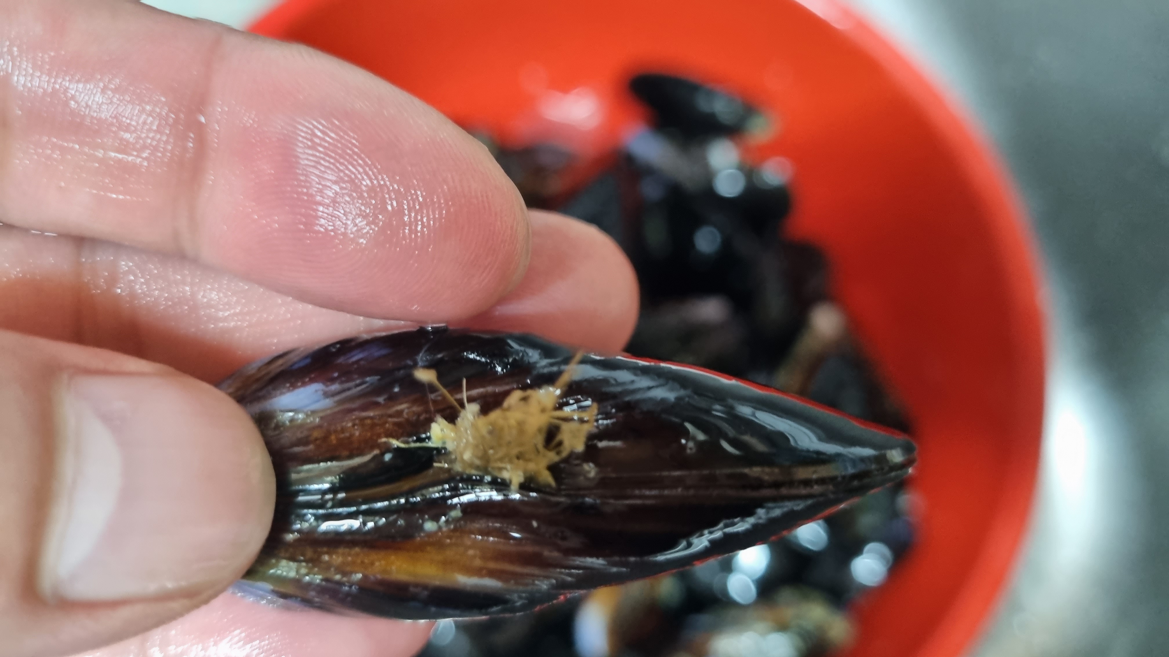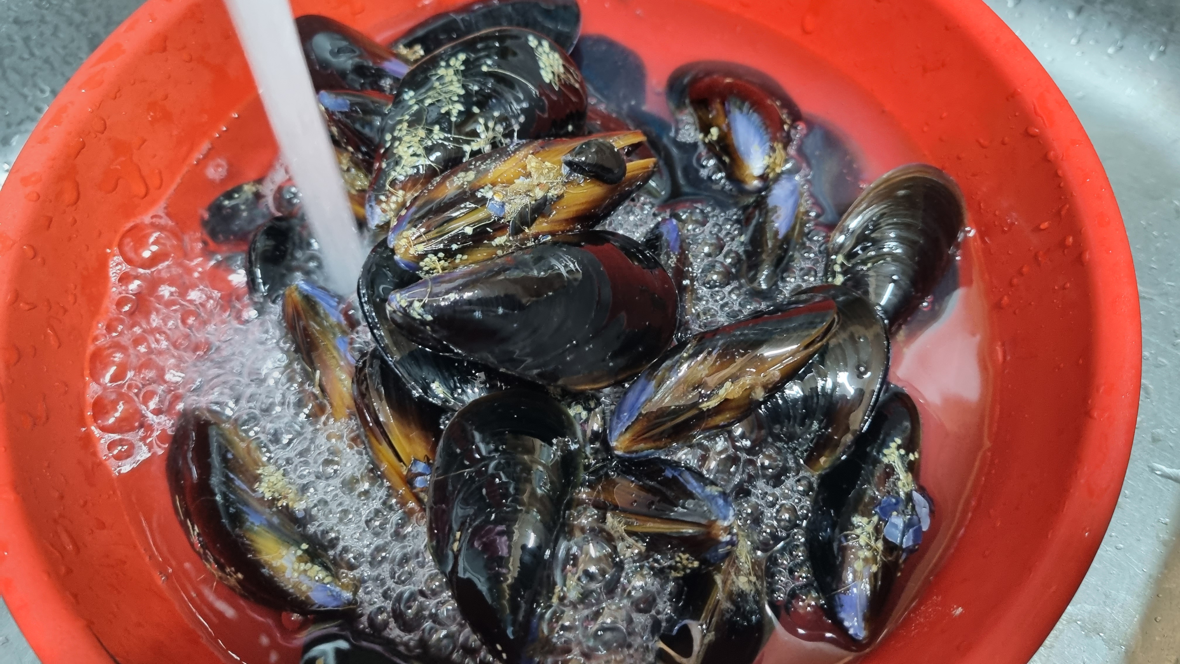 손질은 일단 구입후 물에 담가 2번 정도 가볍게 씻어주면서 시작하는데 홍합의 특성이 족사에 있고 표면에 여러 가지 물질이 붙어 있는 경우가 있습니다.