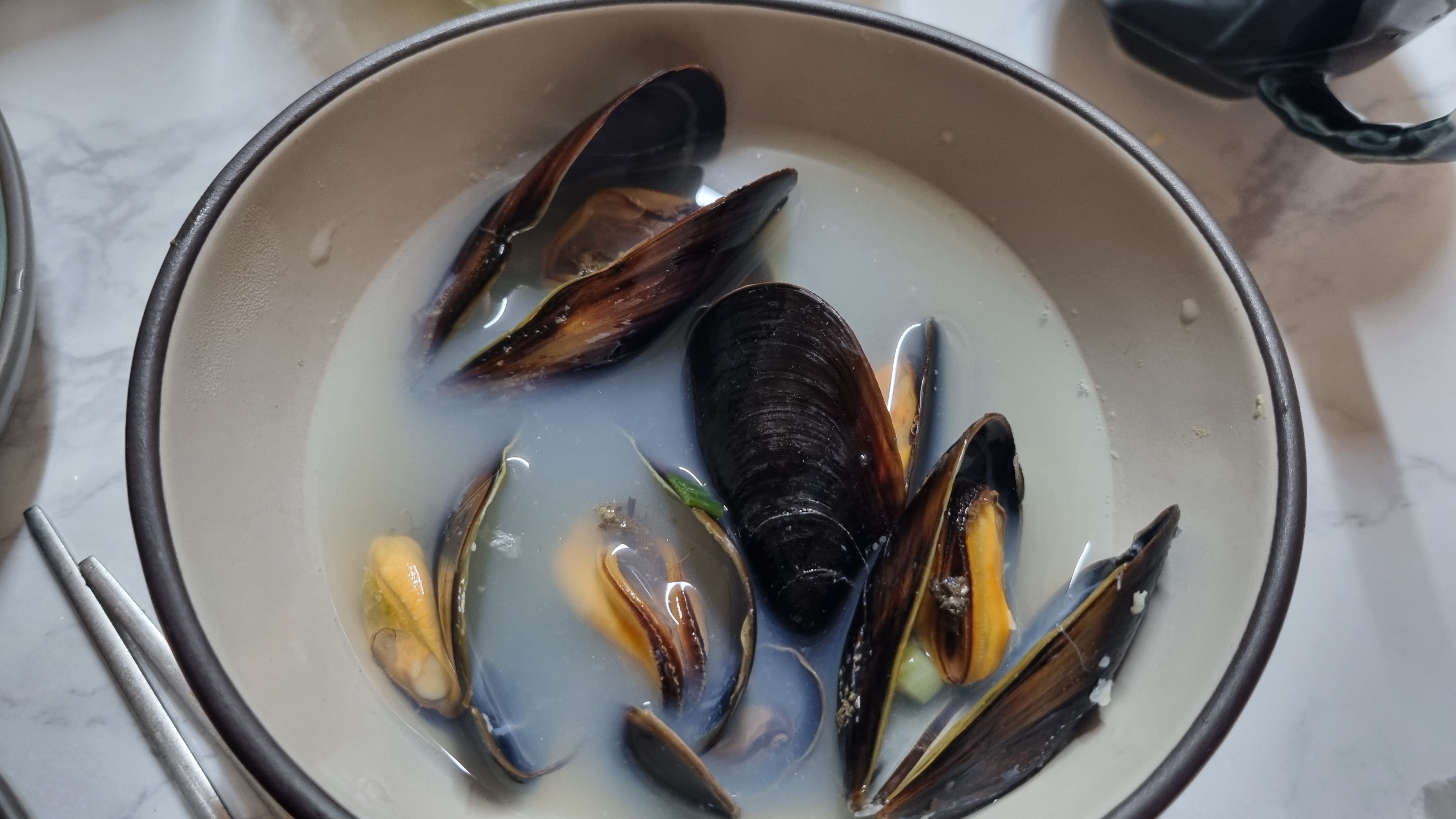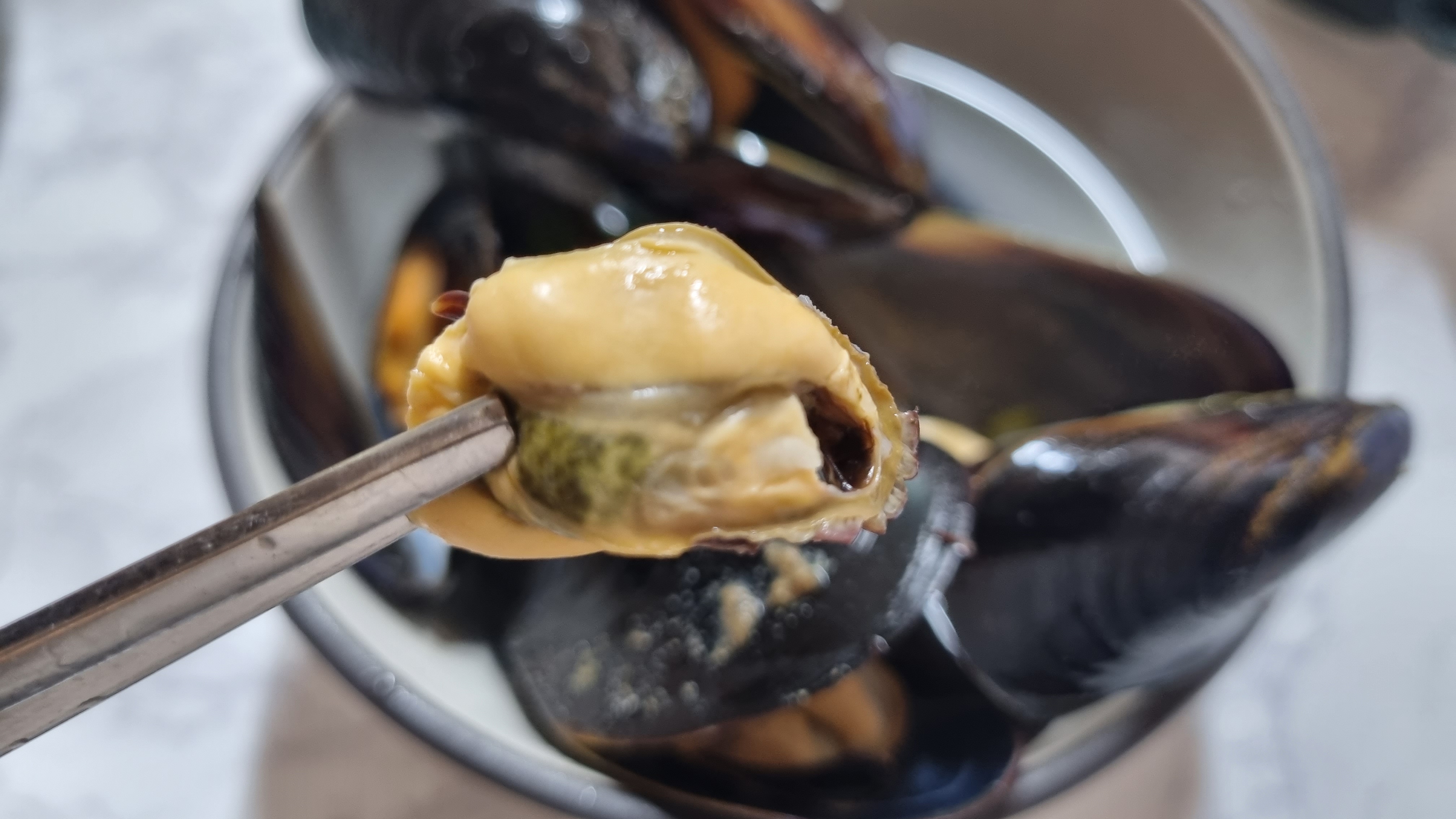 여기서 맛을 보지만 국물은 정말 시원하고 맛있고 홍합도 무조건 알맞게 잘 삶아져서 맛있을 것입니다.