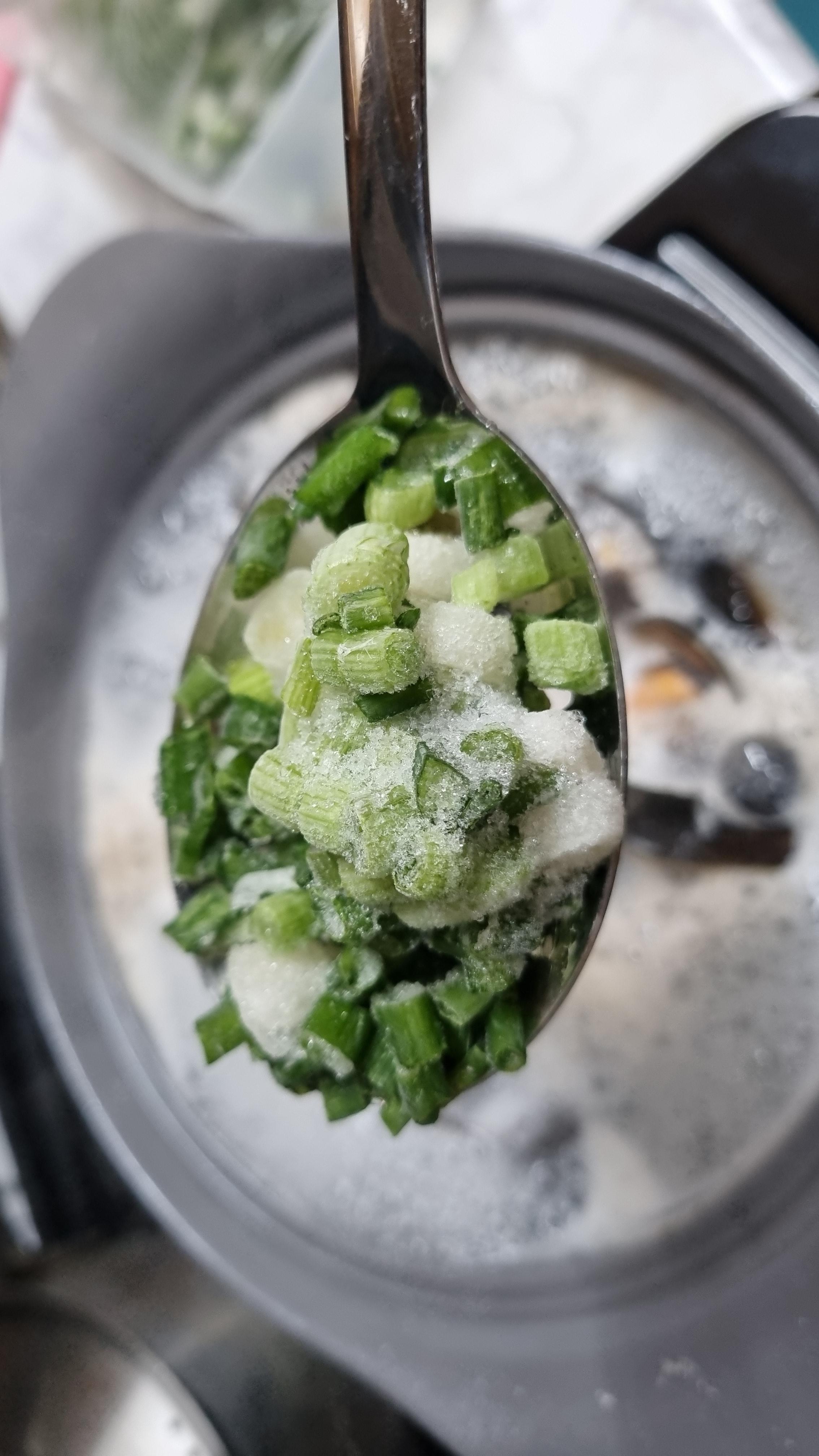 끓은지 3분 정도 지나면 대파를 넣는데 양은 수저로 1~2개 정도 넣으시면 적당하며 수저로 홍합을 잘 저어서 골고루 맛이 전달되도록 합니다.