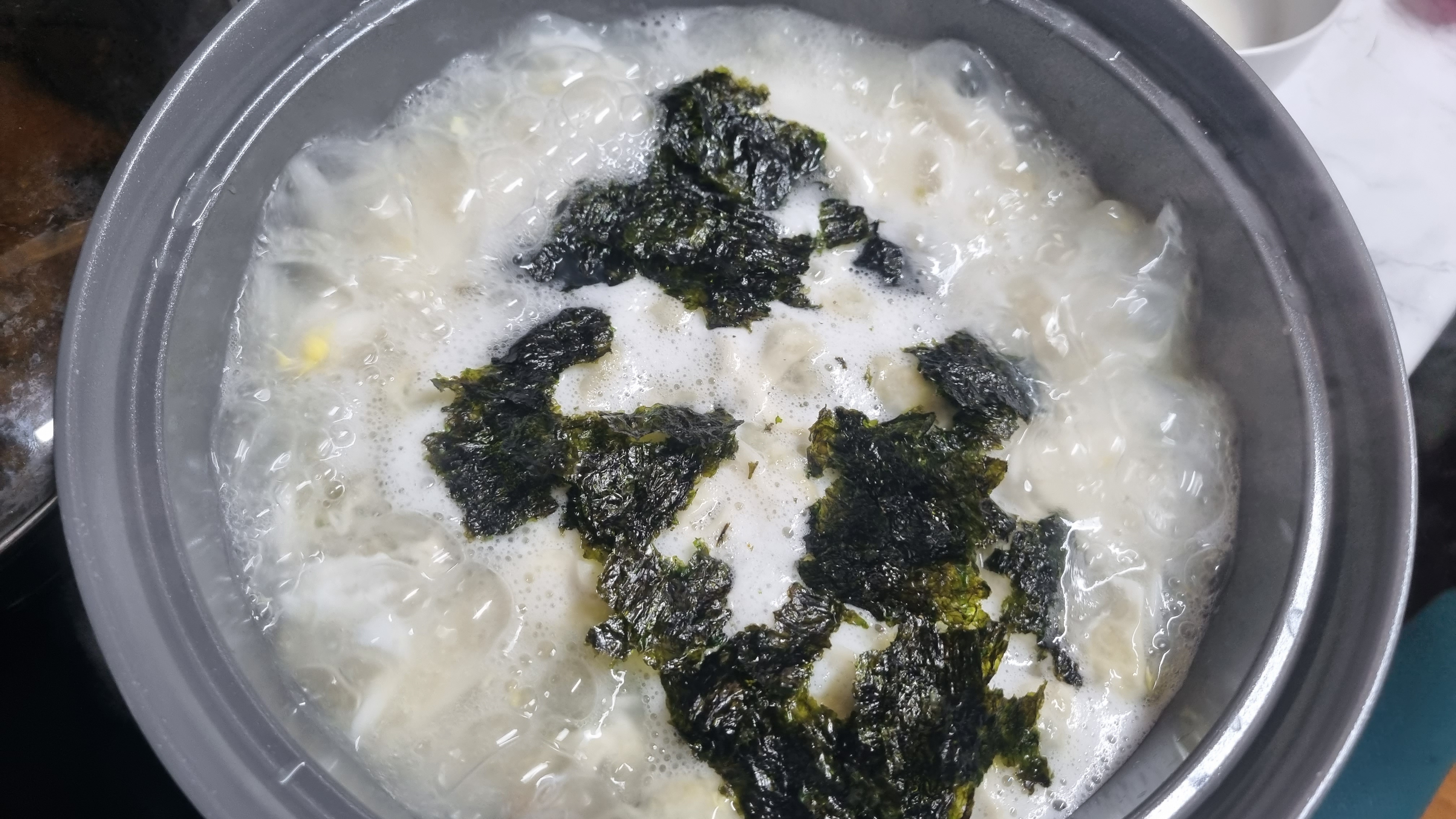 위 사진에서 보시는 것같이 물을 충분히 넣고 닭장도 넣었는데 닭장이 없으면 그냥 소금으로 맛을 맞추고 계란을 풀어 만들어도 맛있습니다.