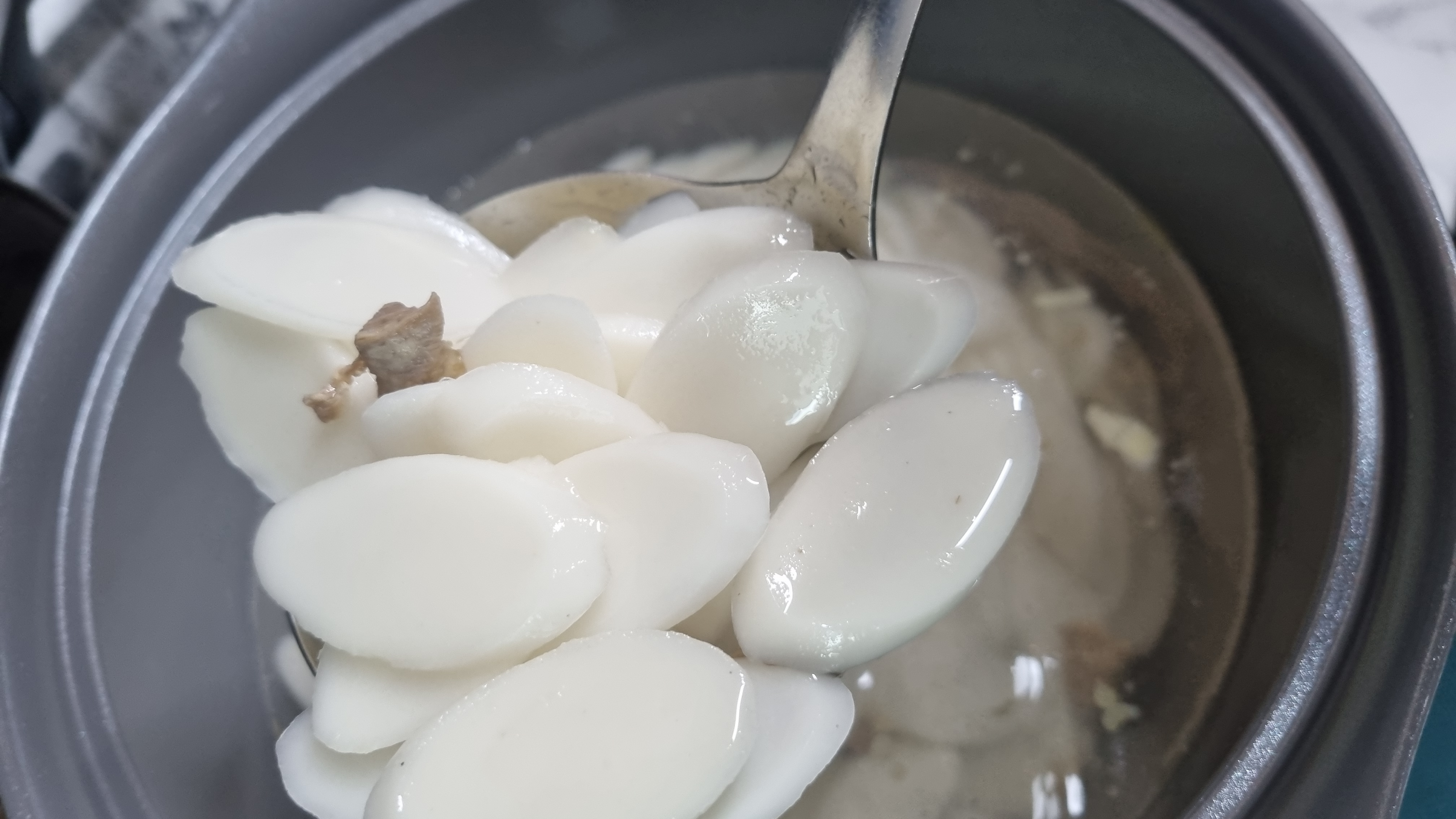 끓이는 시간은 5분 정도면 되는데 만약 떡이 오래되어 딱딱하다면 시간을 더 추가하여 끓여야 합니다.