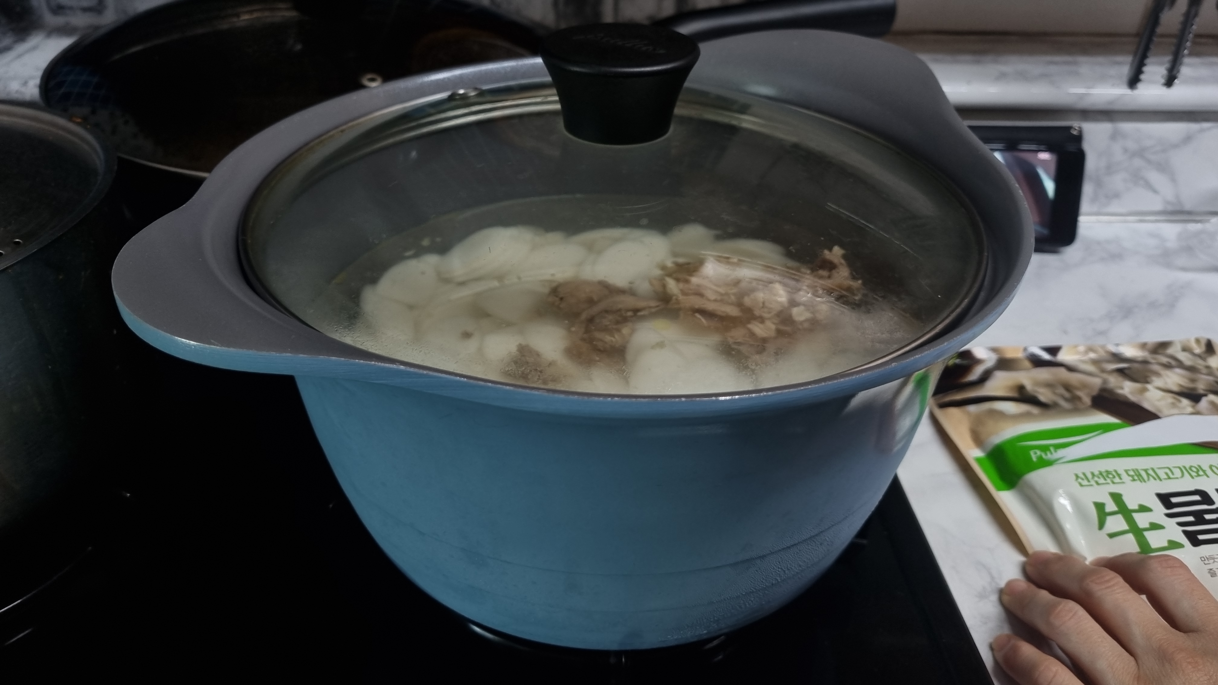 정말 간단하는것이 그대로 가스렌인지나 인덕션에 올려 끓이시면 됩니다. 처음 끓을 때까지는 불을 최고로 하고 이후 끓기 시작하면 중간으로 하여 계속 끓여주면 됩니다.