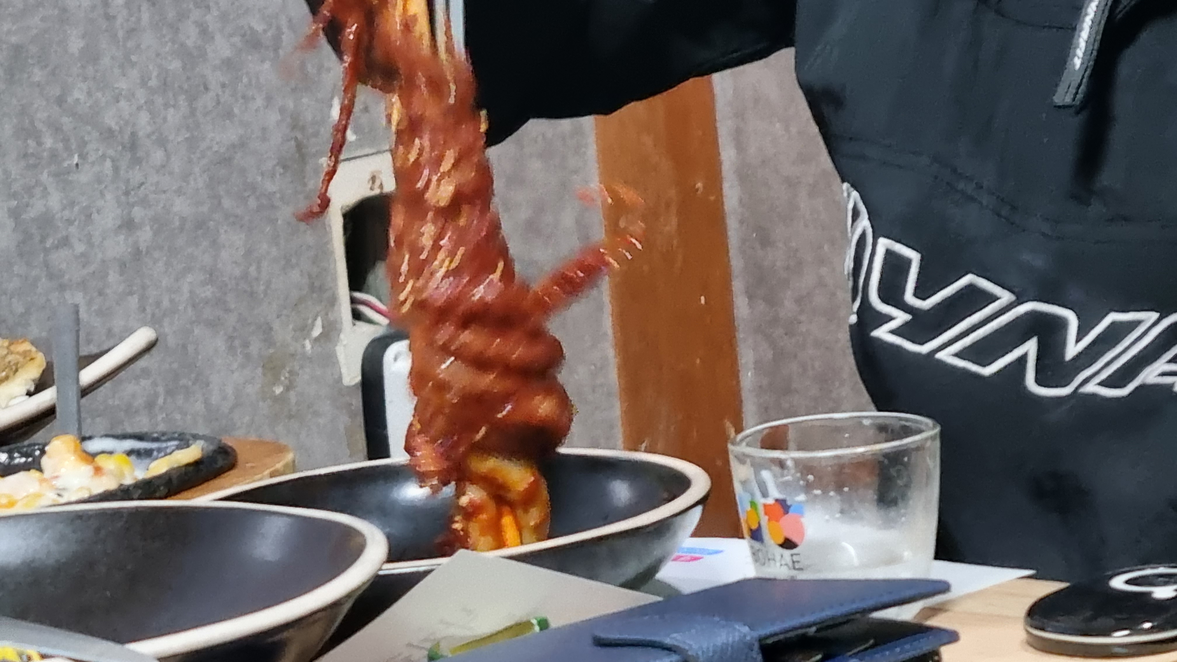 이곳은 낙지를 양념하여 막대에 감아 구워 나온 것으로 호롱구이라 하는데 구워 나온 특유의 맛이 좋은데 먹기가 약간 불편합니다.