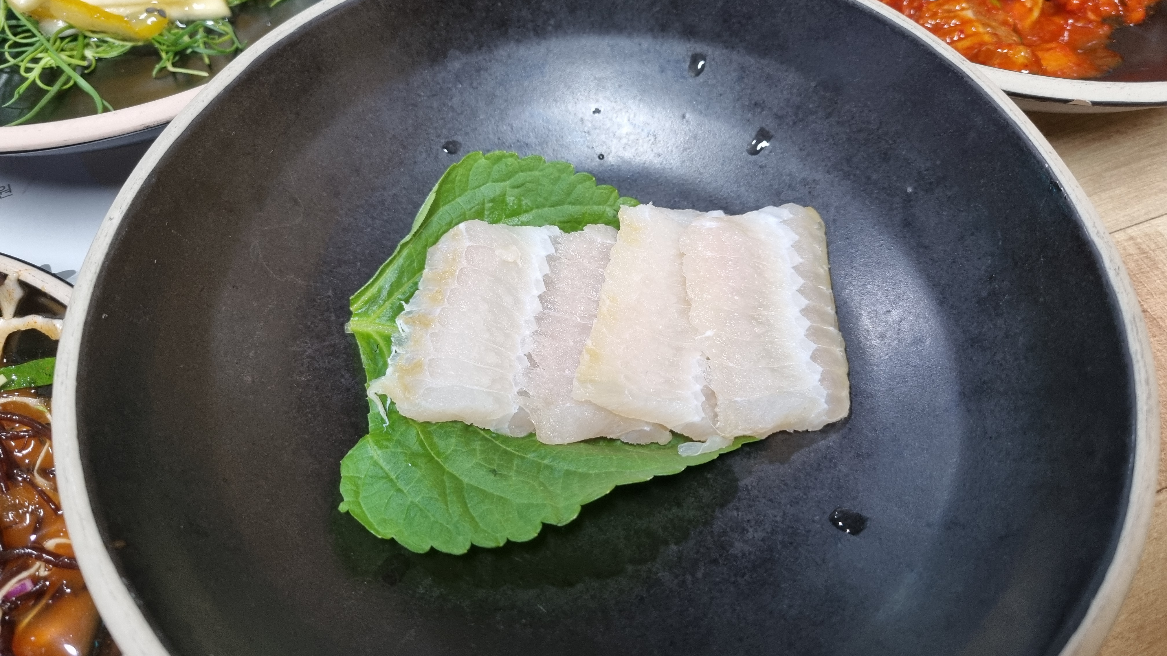 우리가 말하는 스끼다시(곁들인 반찬)가 일반 횟집과는 다르게 나오는데 가오리회 간장새우, 홍어등이 조금씩 나와 맛을 보며 안주감으로도 아주 좋습니다.