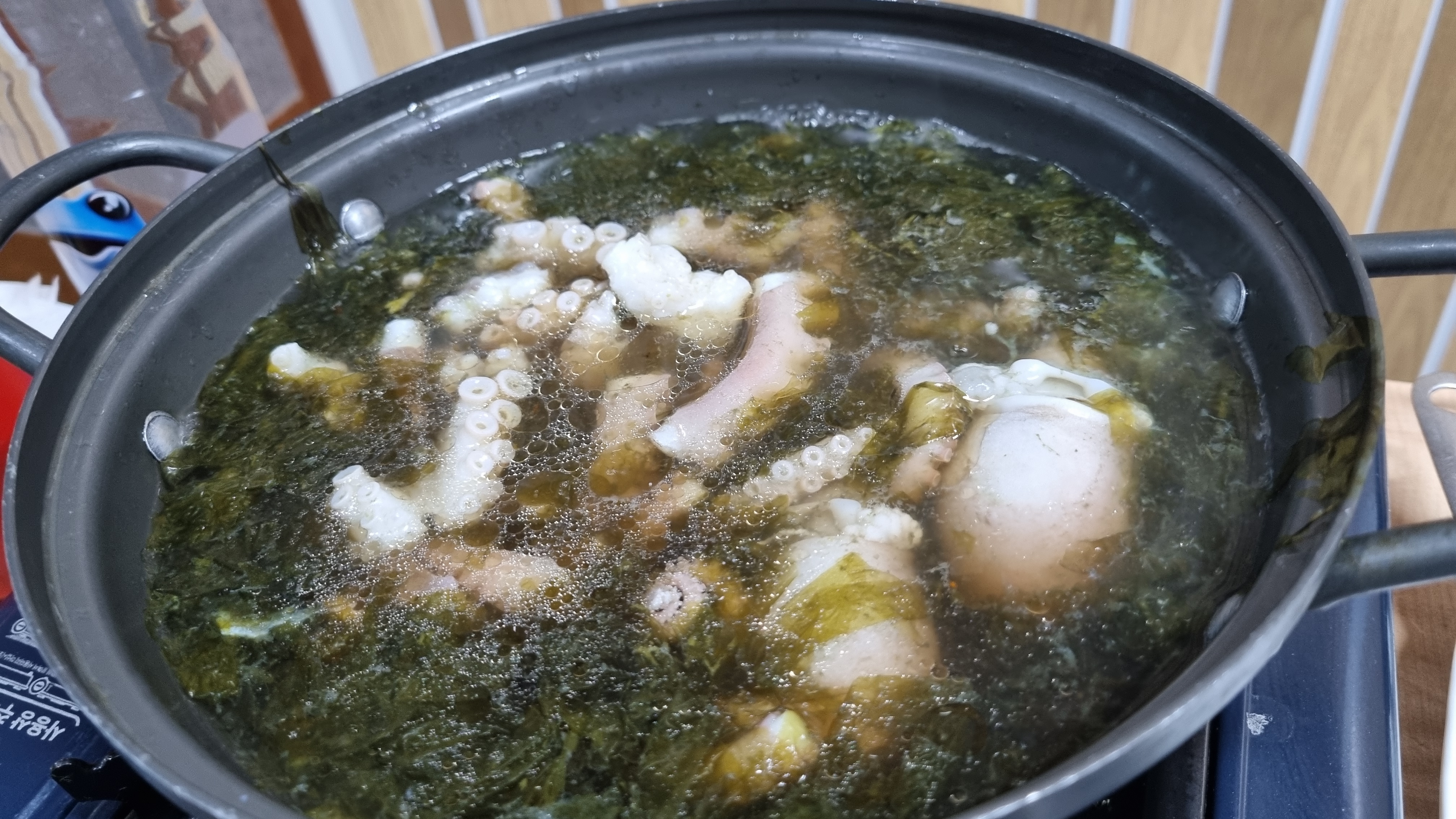 이렇게 한참동안 음식을 맛있게 먹어가고 있을 무렵 아마도 연포탕을 준비한 듯하는데 요리 이름은 정확히 모르겠는데 냄비에 뭔가를 끓이고 있습니다.