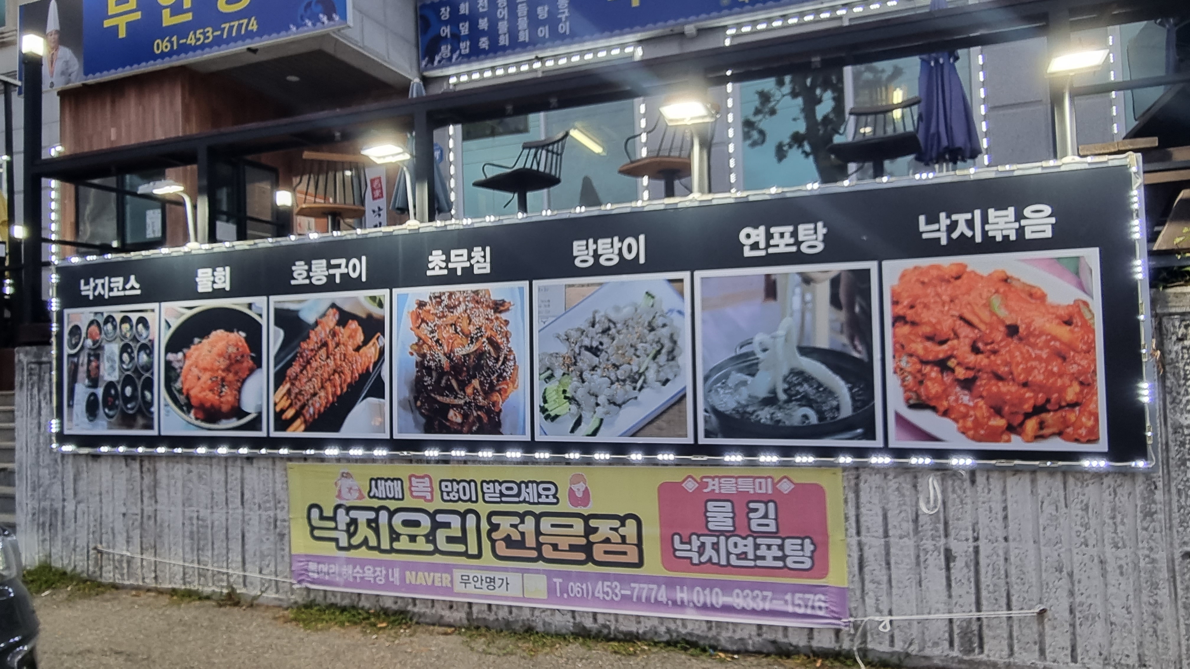낙지와 관련 여러 요리들이 있는데 물회,탕탕이,초무침,호롱구이,연포탕등 많은 요리들이 나오는 게 특징입니다.