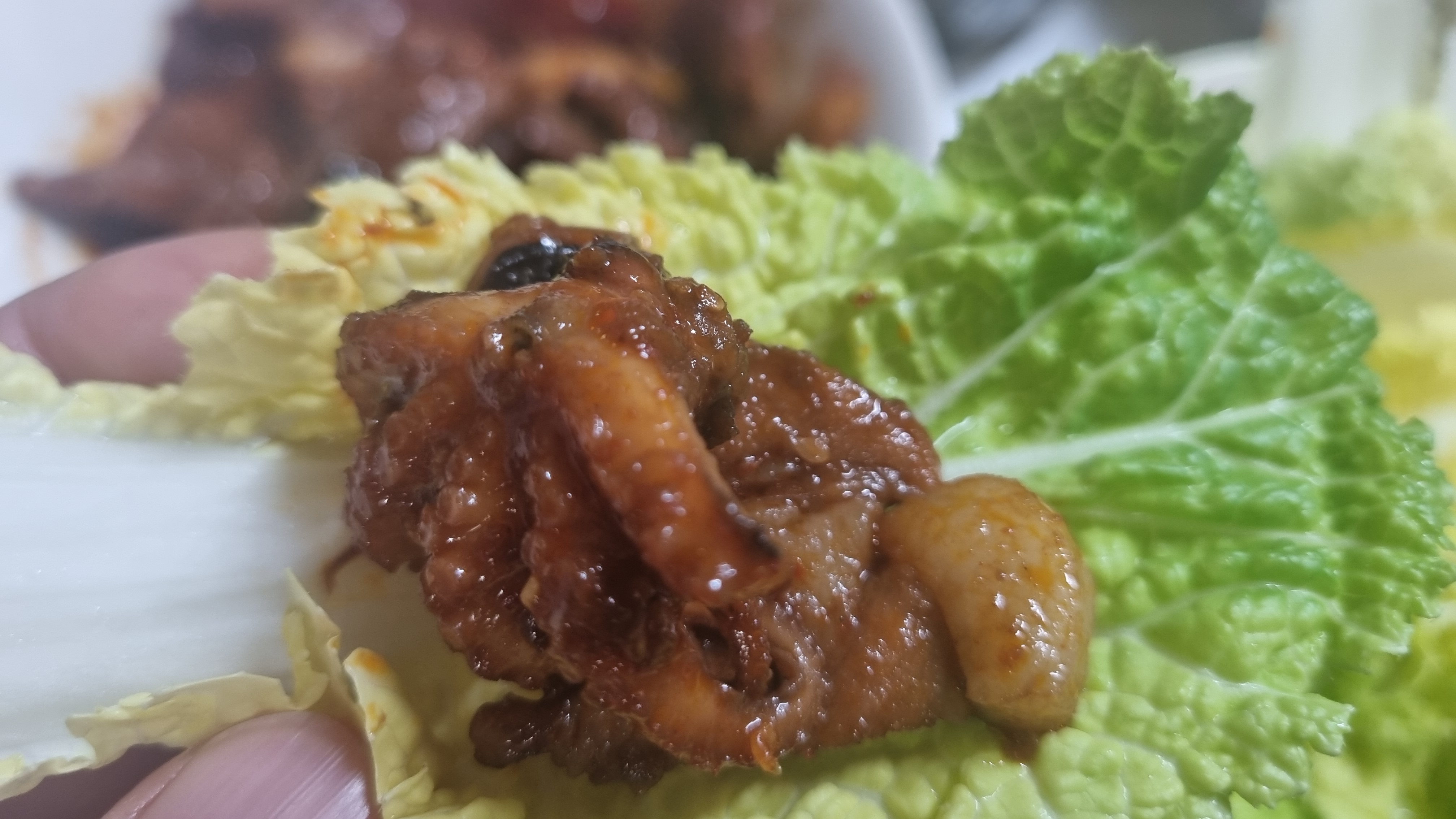 그냥 먹어도 맛있고 상추에 쌈으로 드셔도 정말 맛있습니다. 주꾸미와 삼겹살 한 점씩 쌈에 싸서 드시면 너무 환상적이고 어른들이나 애들도 모두 너무 많이 좋아하실 것입니다.