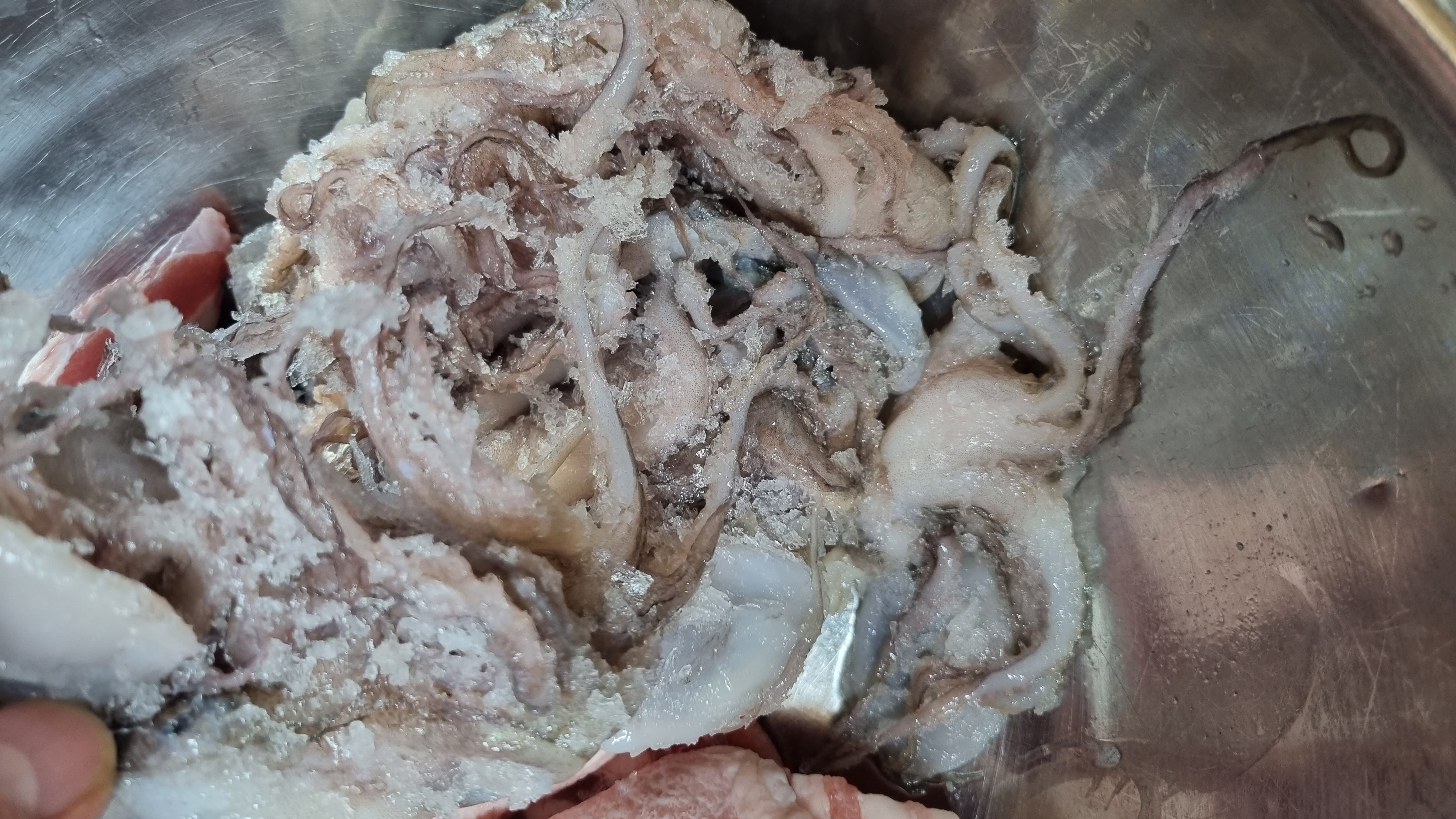 손질 후 바로 드실 수 도 있고 이렇게 냉동보관 후 드셔도 되는데 맛은 전혀 변화가 없었습니다. 주꾸미 전문점에서도 철이 아니면 대부분 냉동보관 후 조리하여 판매합니다.