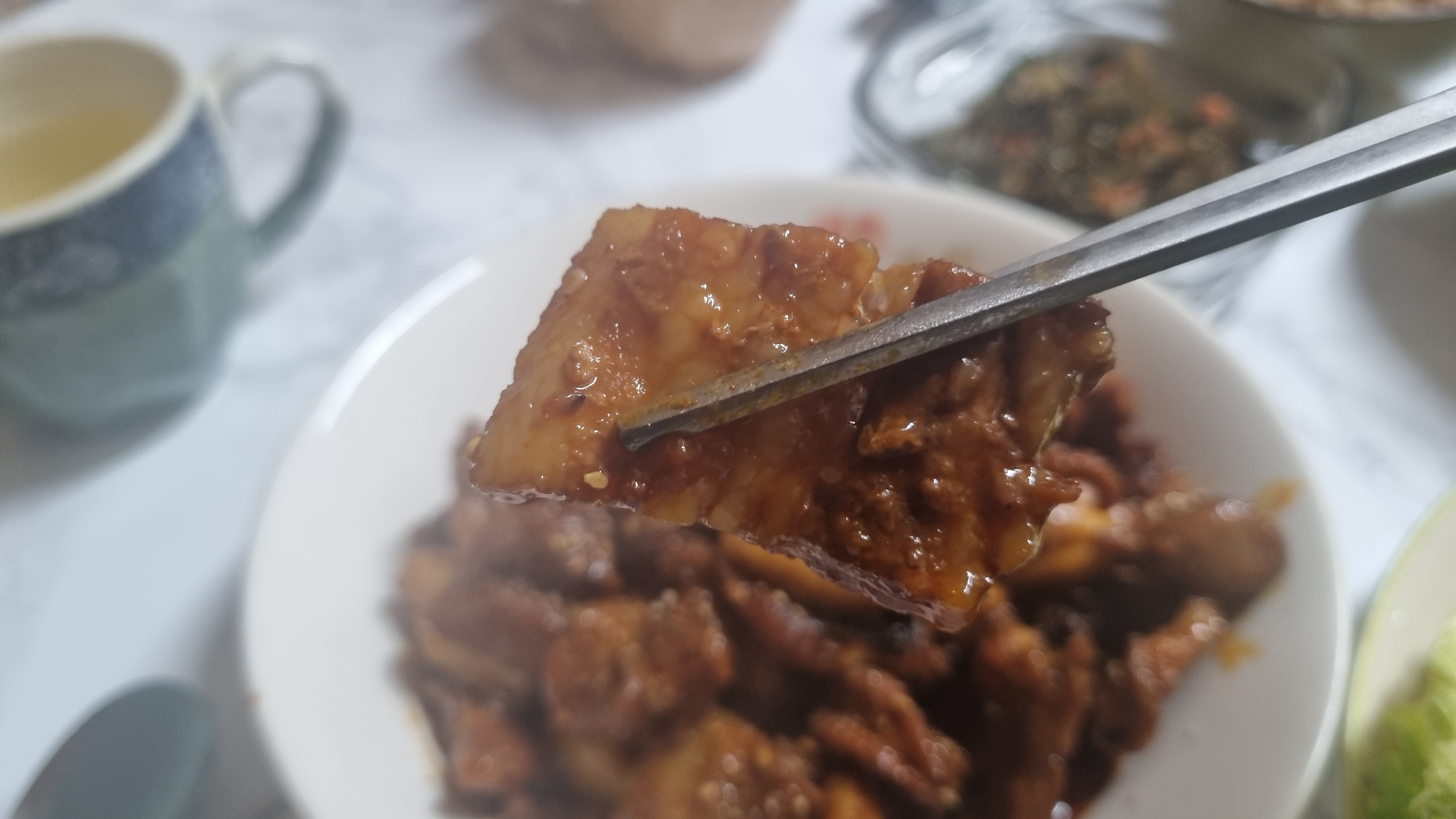 끓기 시작 이후 추가로 2~3분 정도 지나면 삼겹살이나 주꾸미를 먹기 좋은 크기로 집게와 가위를 이용하여 잘라주면서 계속 볶으면 되겠습니다.