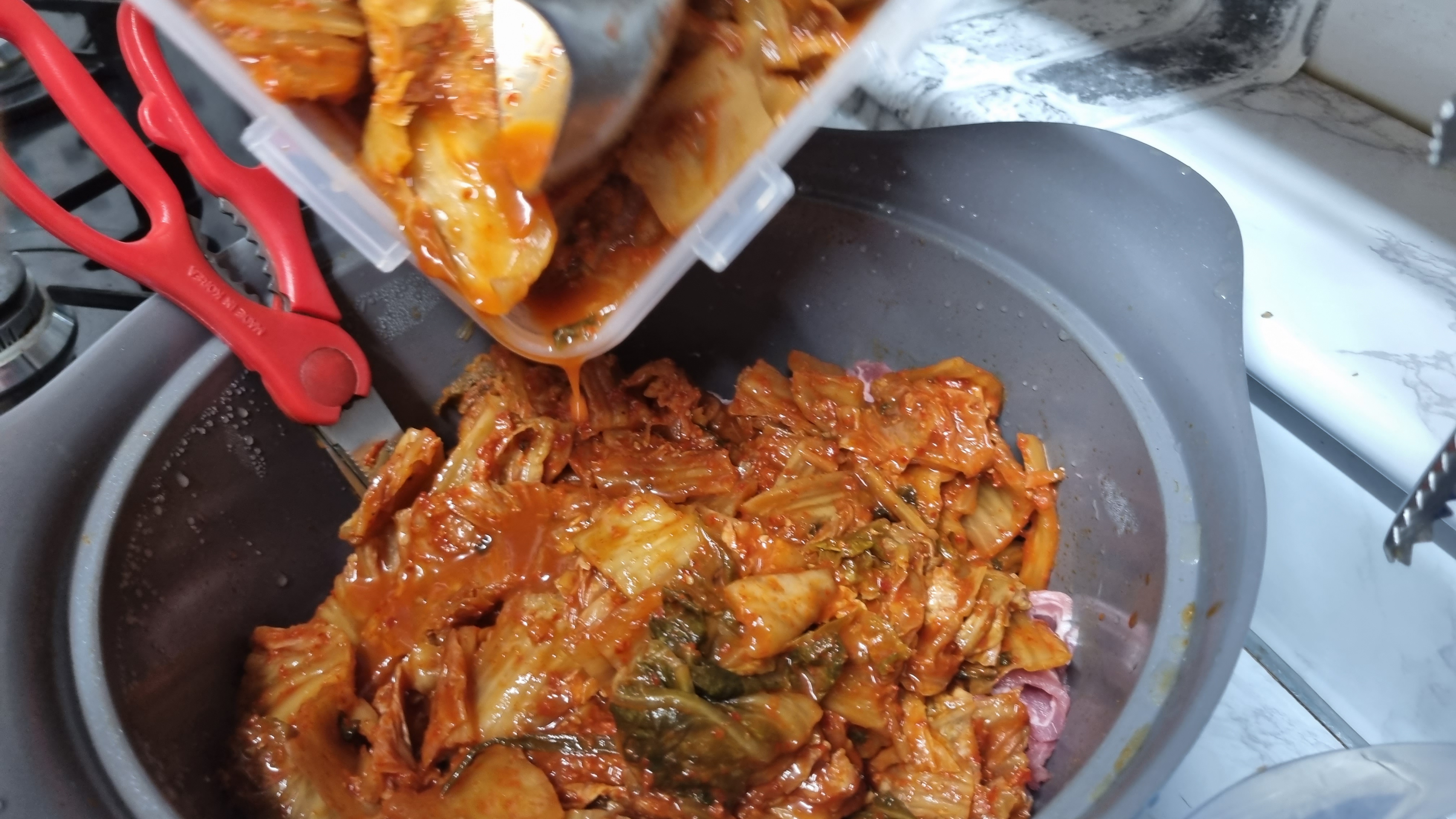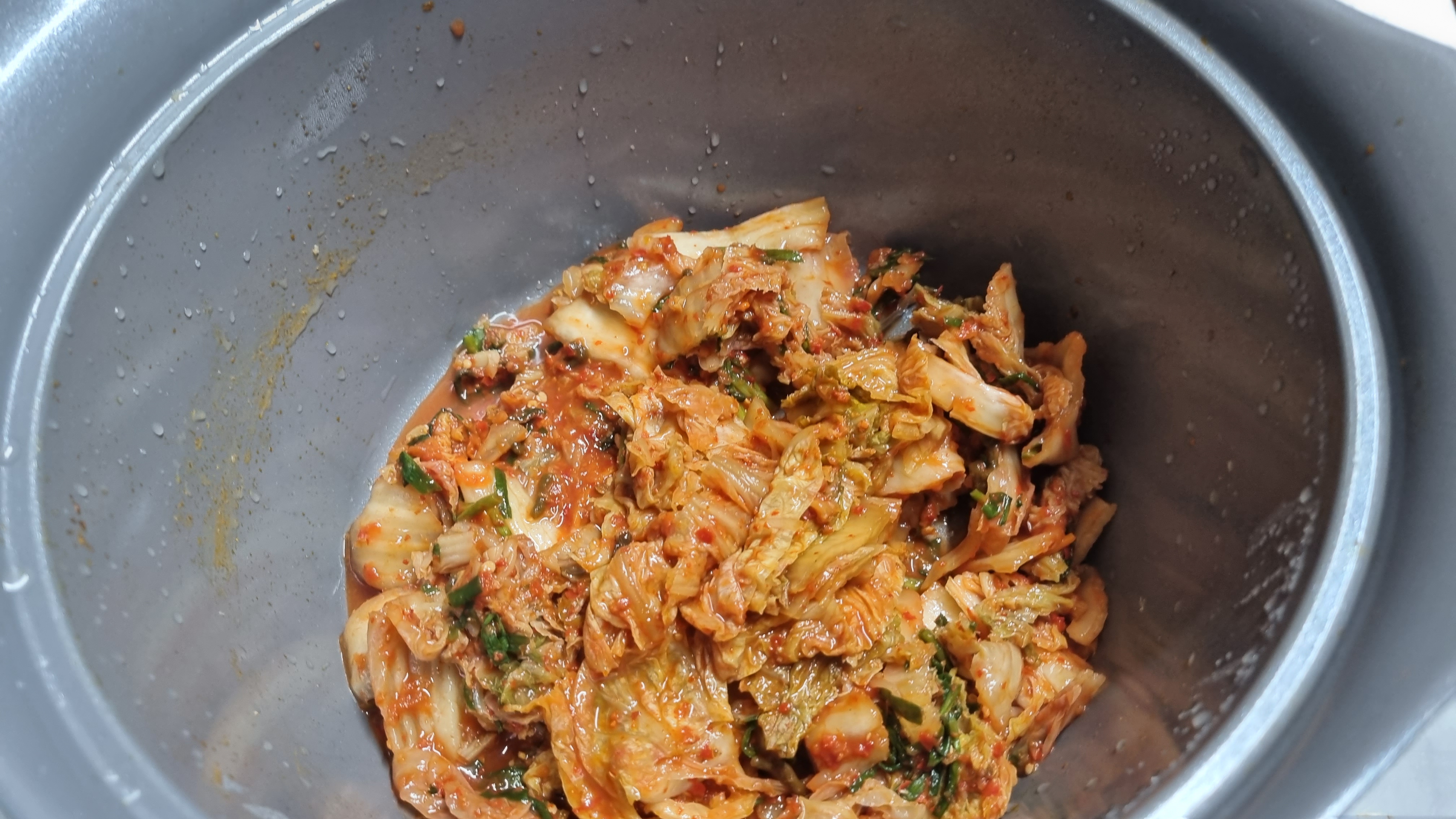 또한 여기서 반드시 맛을 위해 할 것이 김치국물이 있으면 많이 넣는 것이 맛을 올리고 다른 재료가 적게 들어가게 하는 방법입니다.
