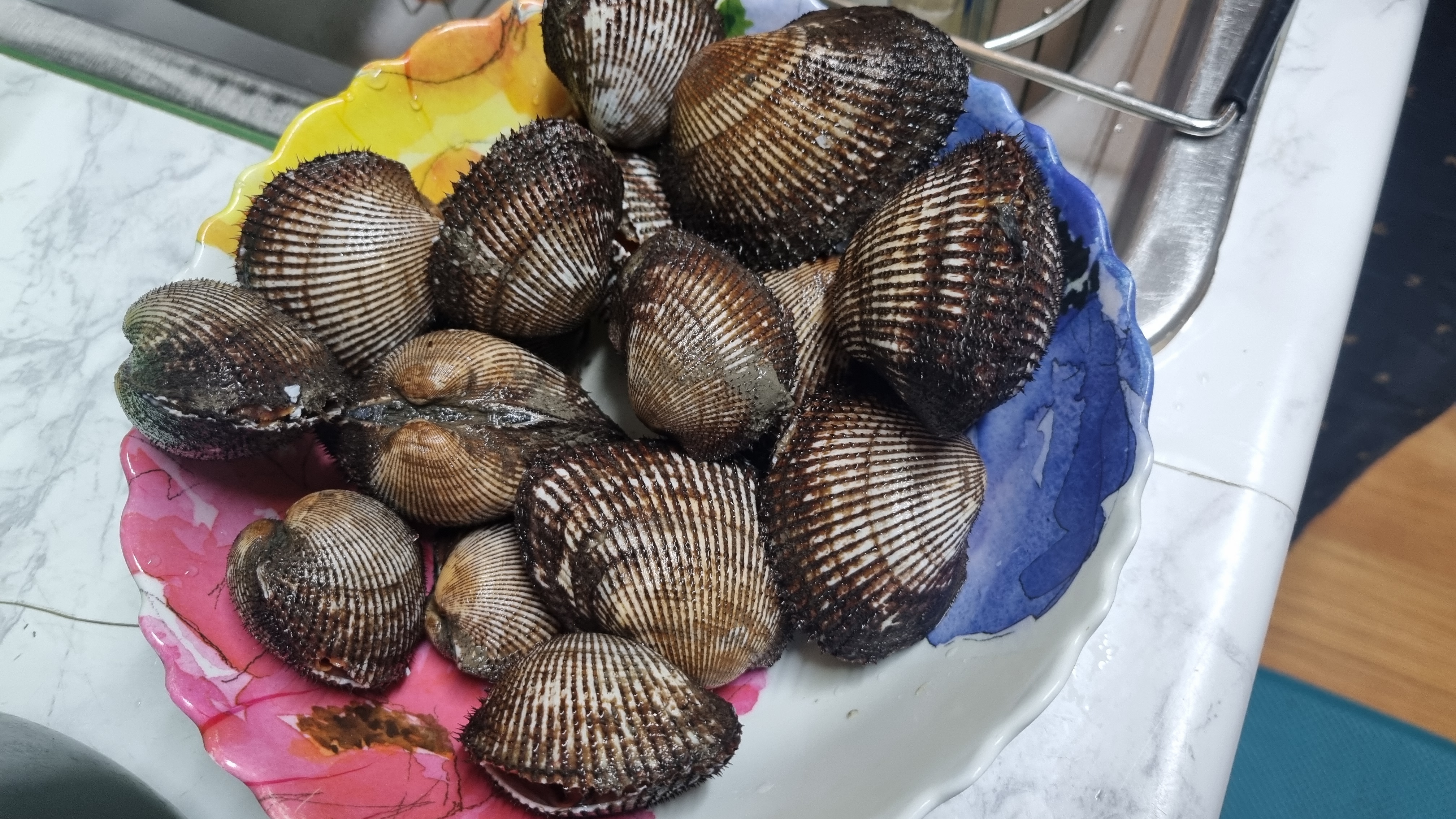 찌는 시간이 끝나고 가스렌인지 불을 끄고 이후 뚜껑을 열면 대부분의 피꼬막이 입을 벌리고 있을 텐데 이때 해감이 덜 되었거나 해감을 하지 않았으면 뻘들이 조금씩 남아 있는 것이 있는데 이때 전체적으로 찜기에 꺼내면서 수돗물로 한번 씻어주면 됩니다.