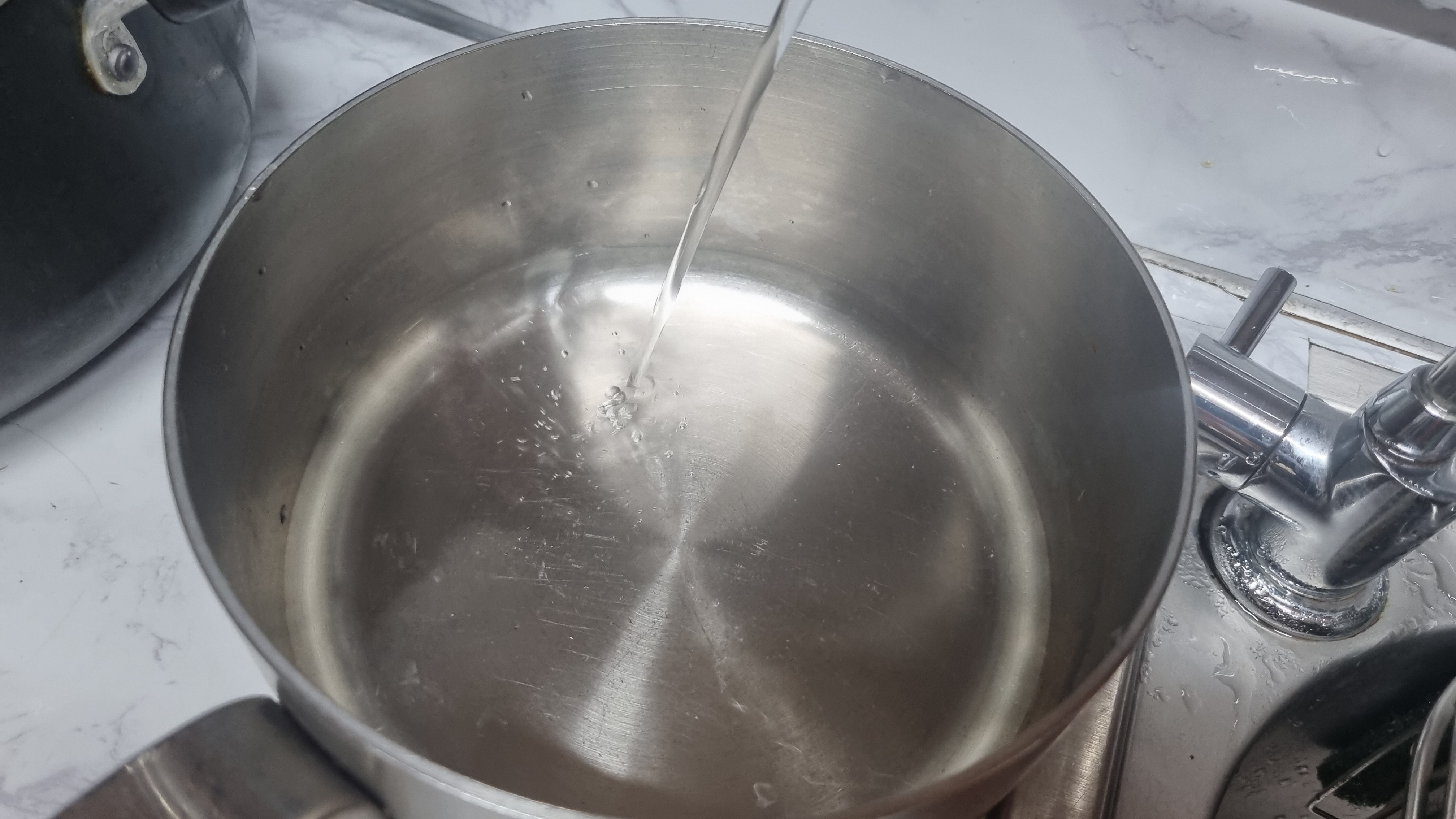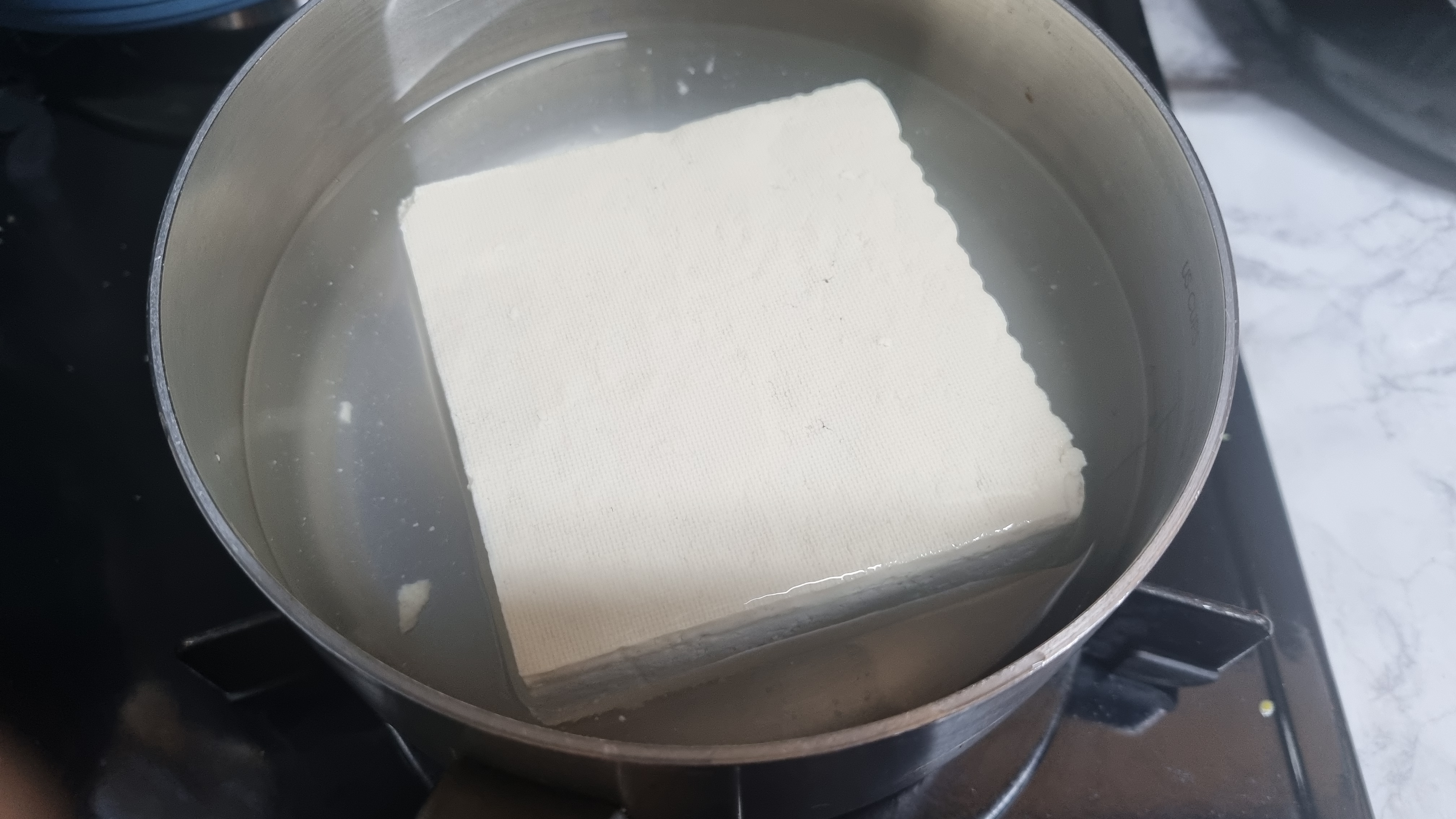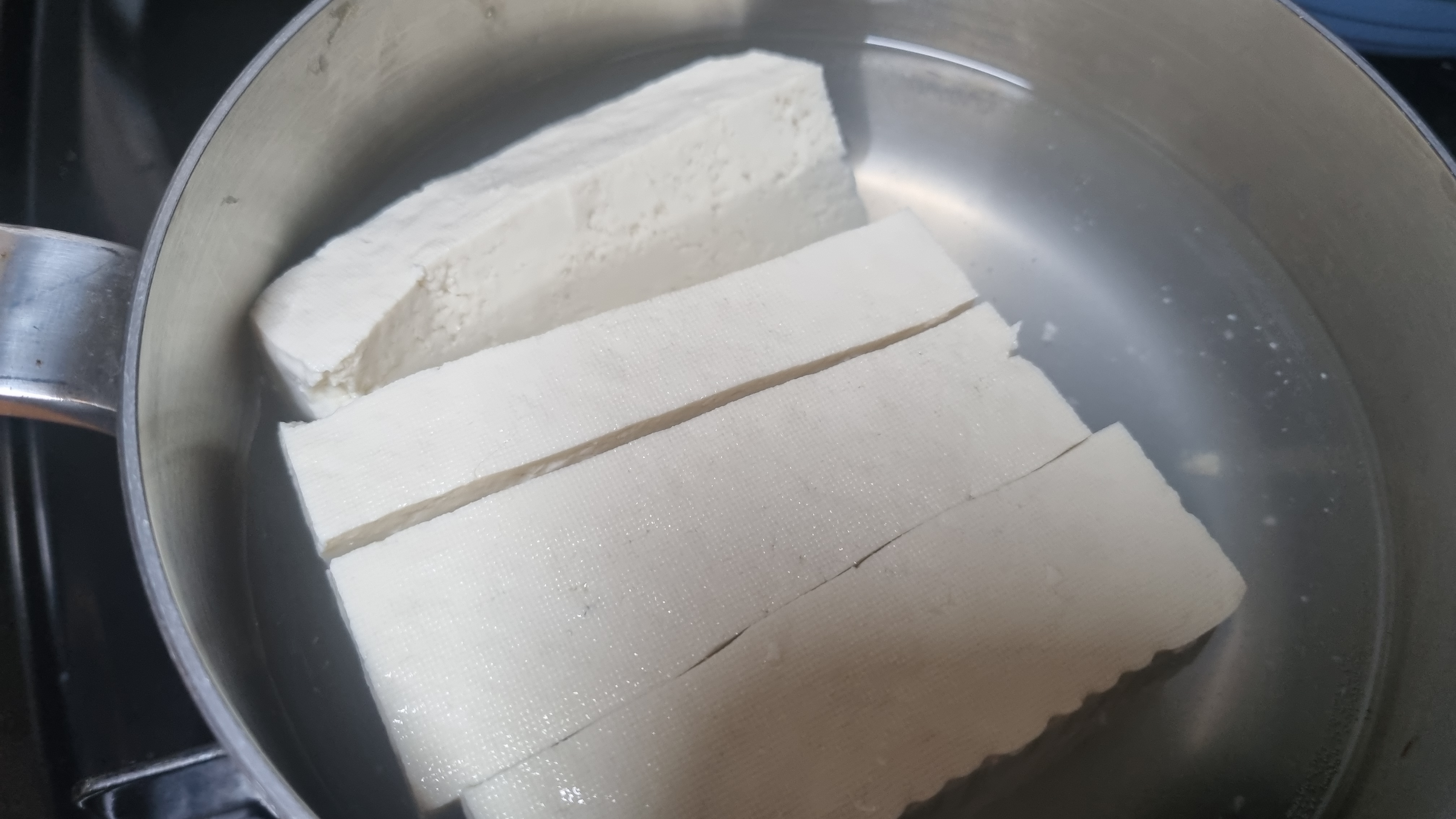 냄비에 물을 두부 높이까지 붓고 두부도 함께 넣고 가스렌인지나 인덕션 불을 최대로 하면서 끓이기 시작합니다.