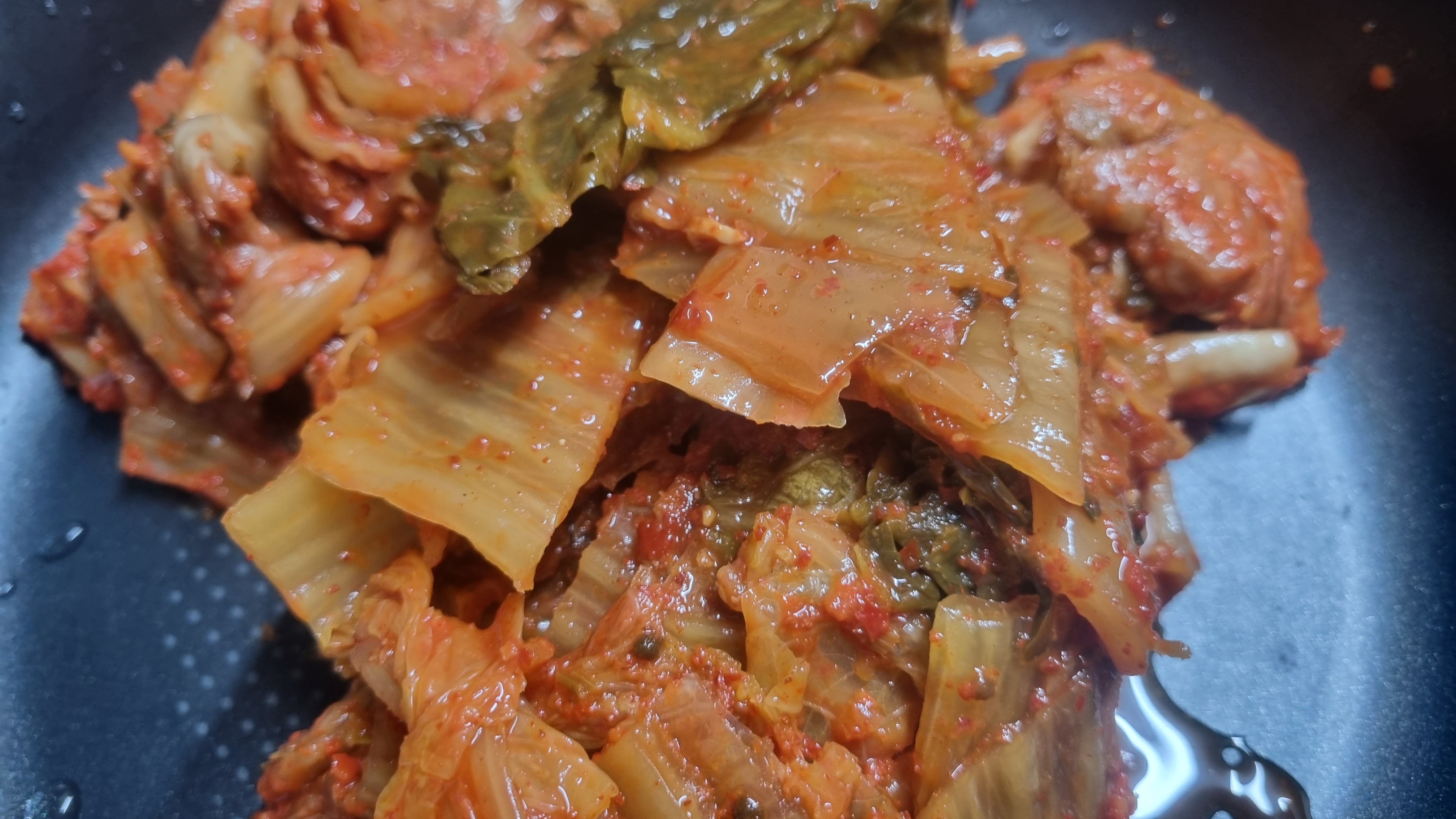 김치를 두부보다 약간 더 크기 썰어 두부와 함께 하면 오히로 김치를 볶을 때보다 더 싱싱함이 느껴져 맛있습니다.