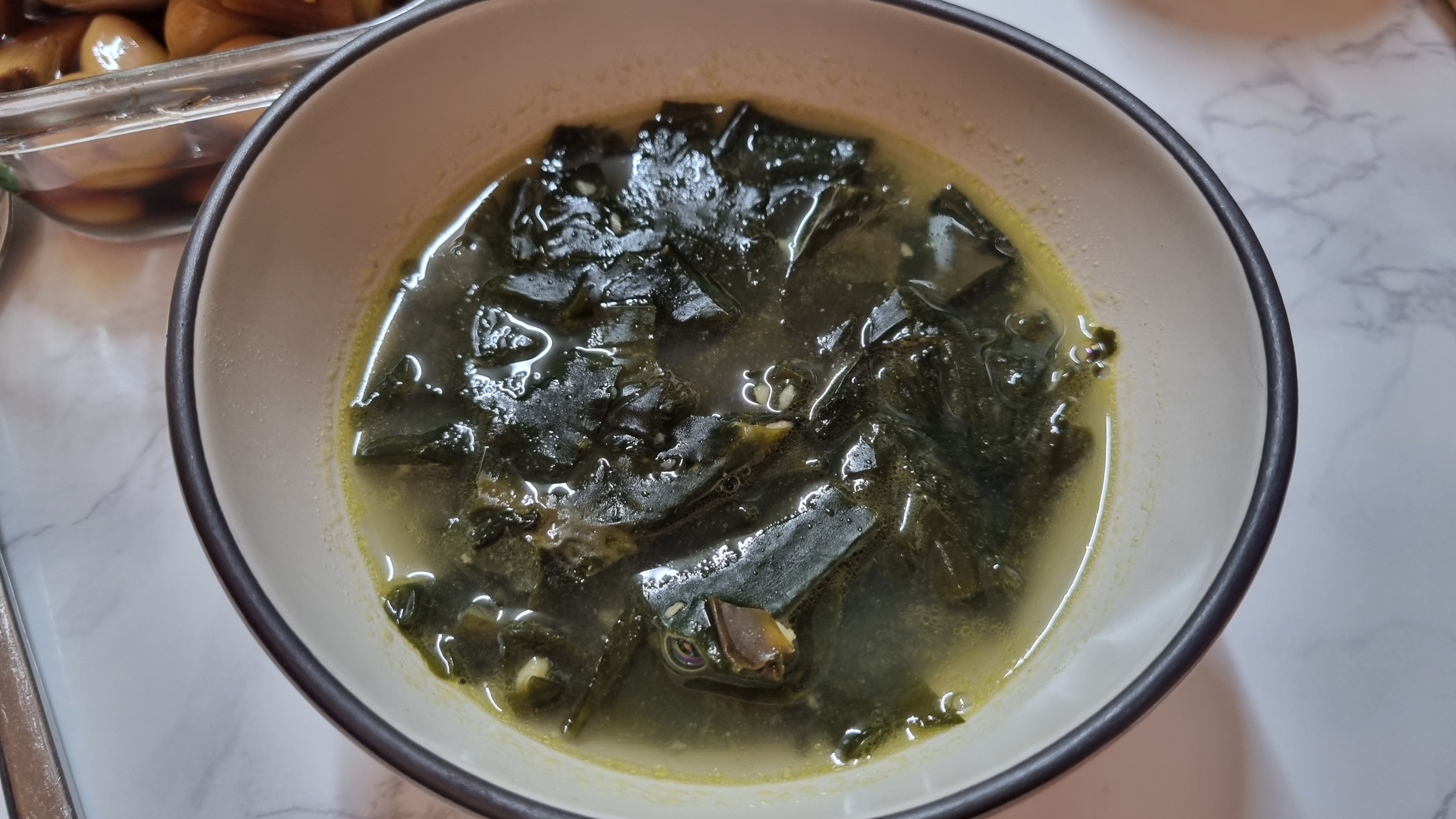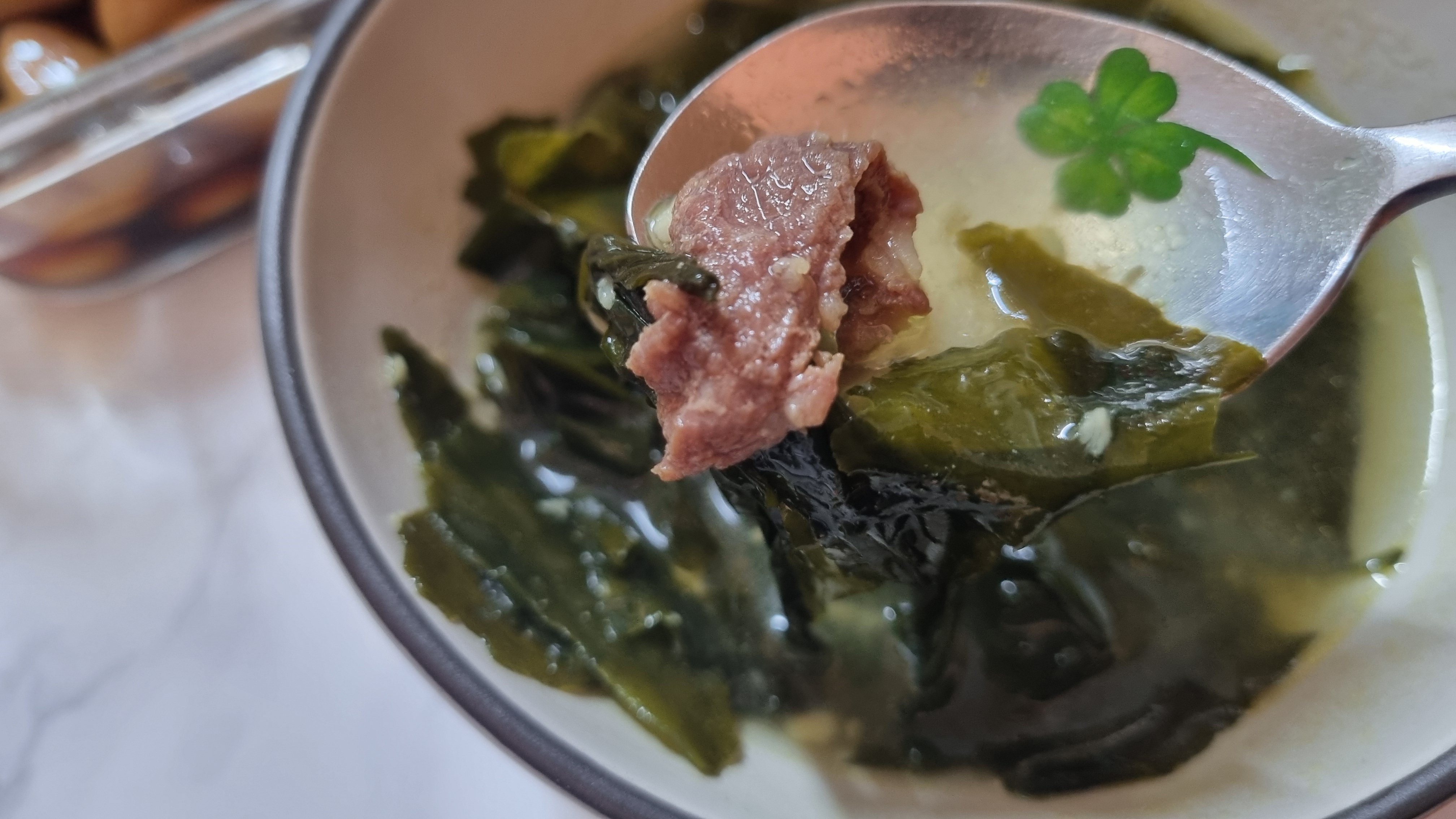 이렇게 하여 맛있는 미역국이 완성되었습니다. 국물도 시원하고 소고기 식감도 아주 좋고 미역도 정말 맛있게 만들어졌습니다.