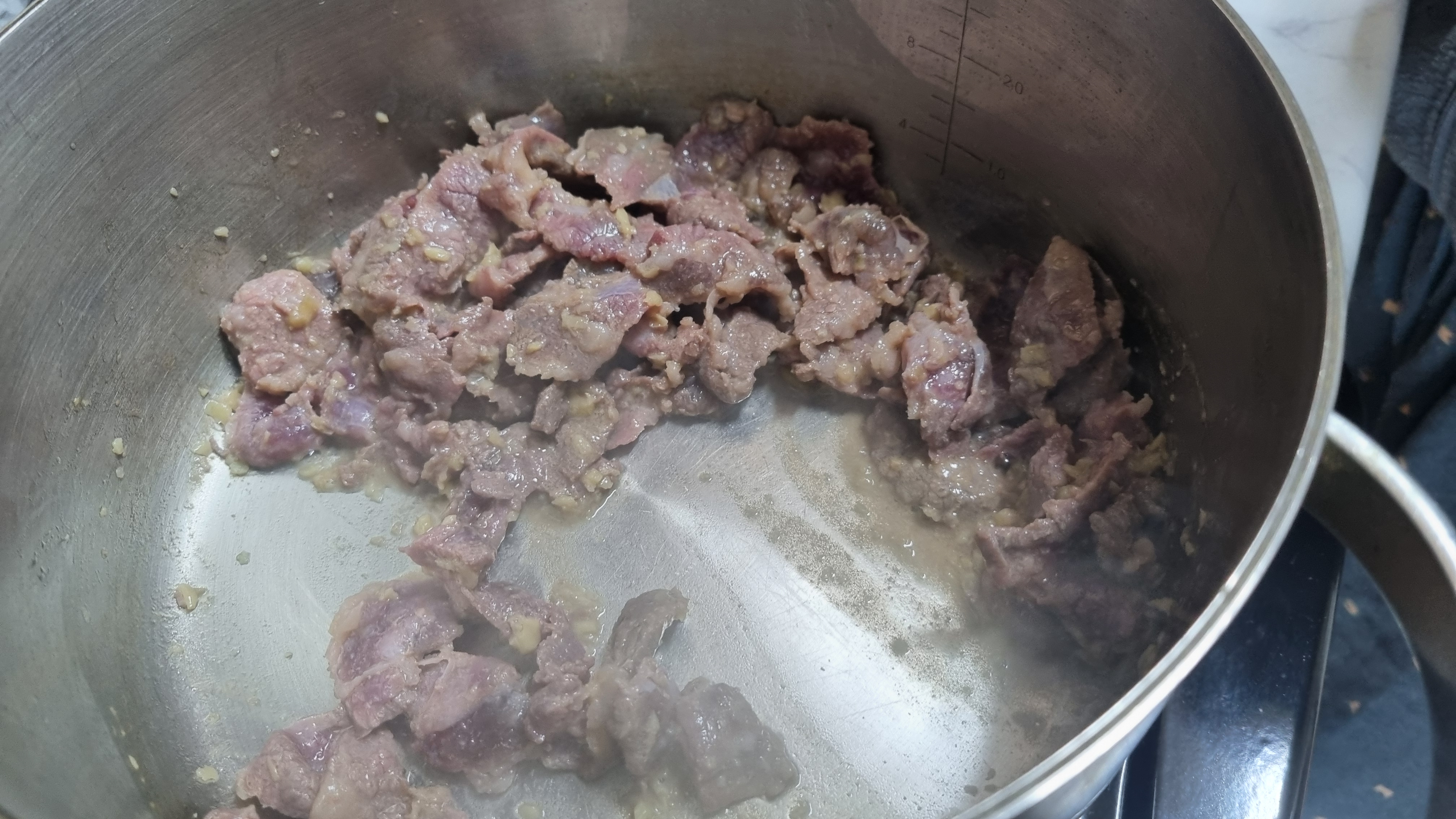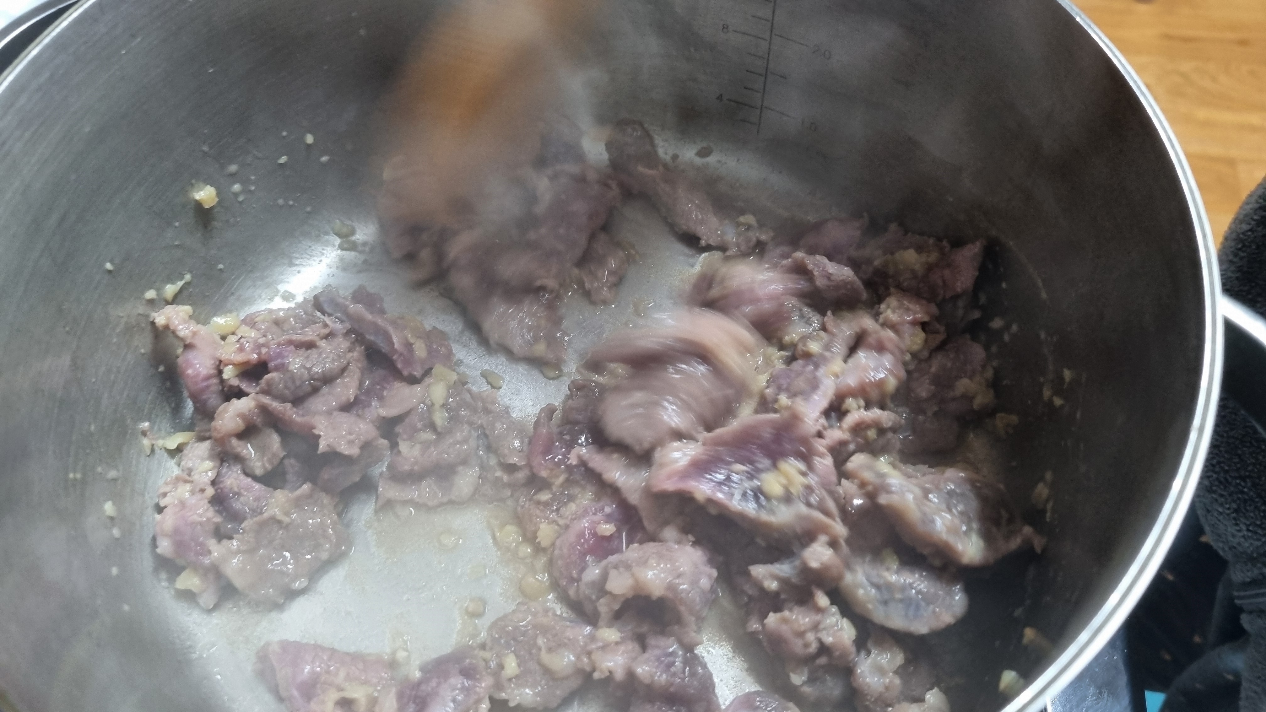 소고기는 완벽하게 볶을 필요없이 약 3~4분 정도 초벌구이한다는 생각으로 볶아주시면 되겠습니다.