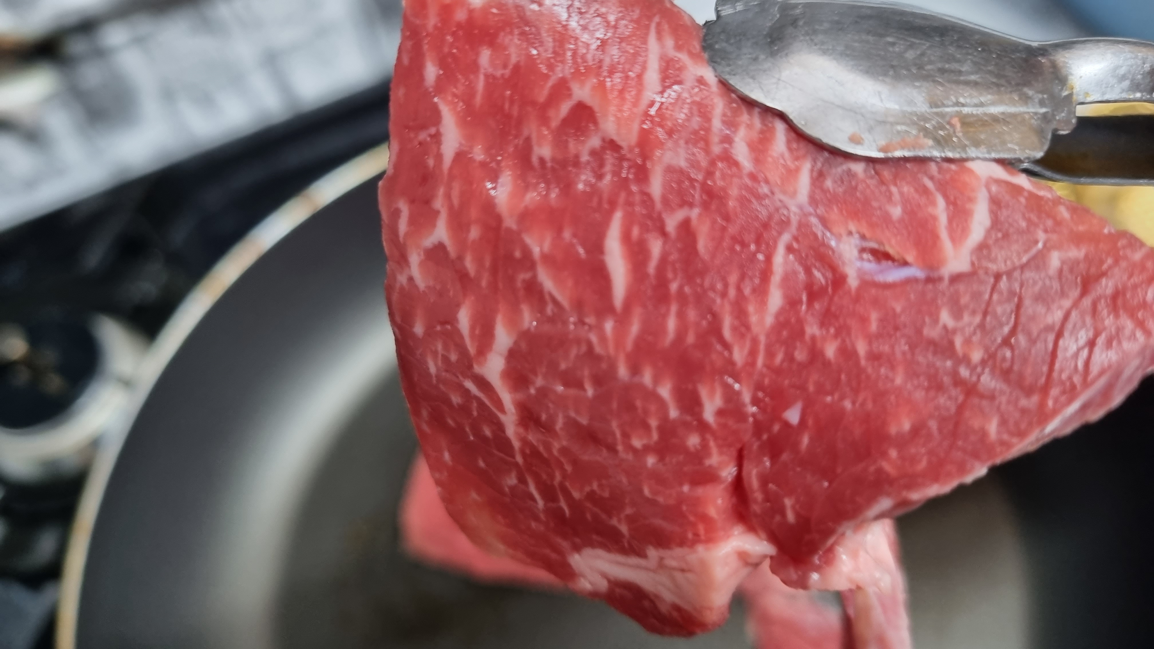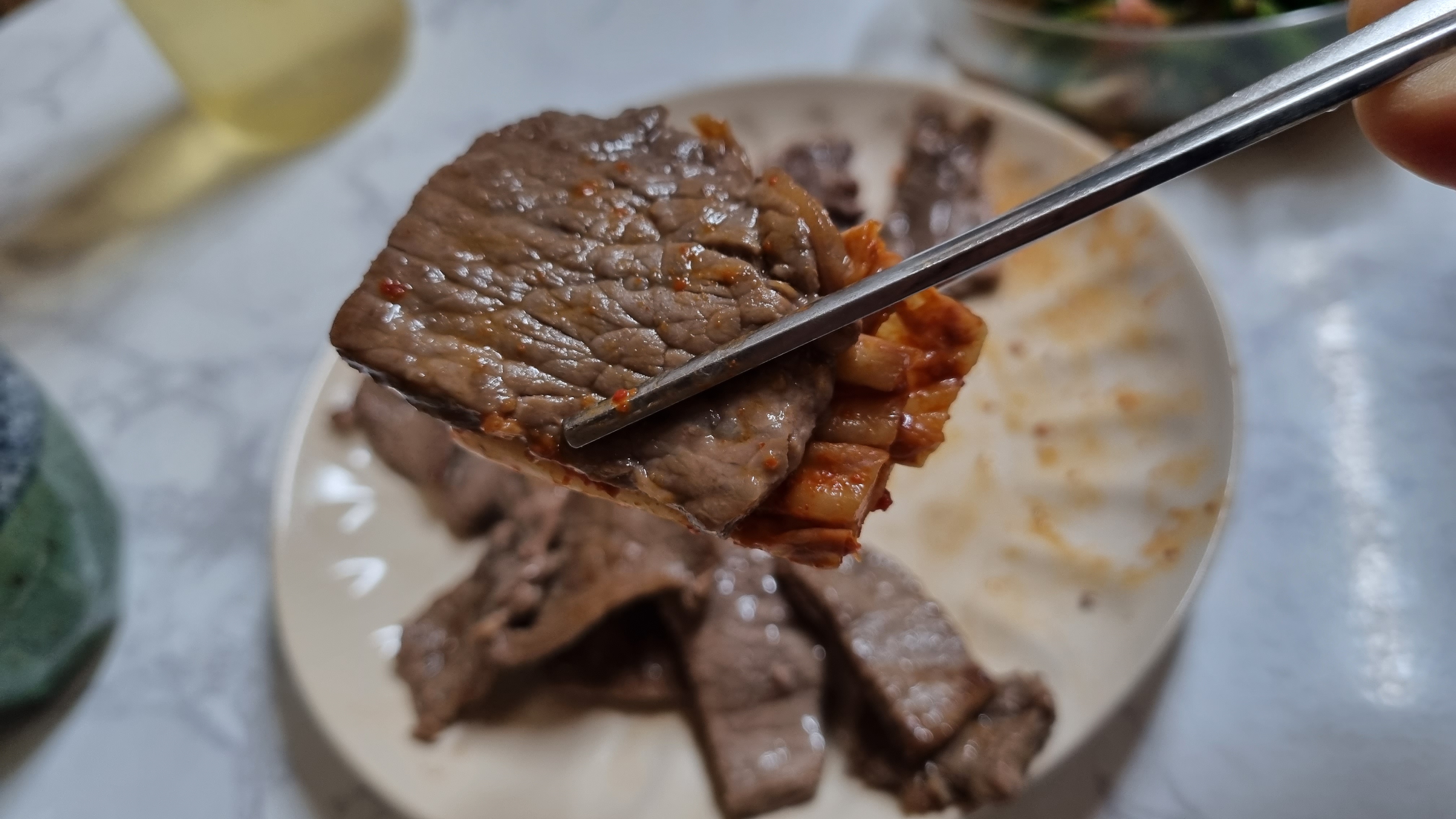 필자는 소고기가 약간 덜 구워져다는 느낌이 들게 구웠을때 제일 맛있었습니다. 겉면만 살짝 익혀 바로 먹으면 소고기의 참맛이 느껴지고 입안에서의 식감이 너무 좋습니다.