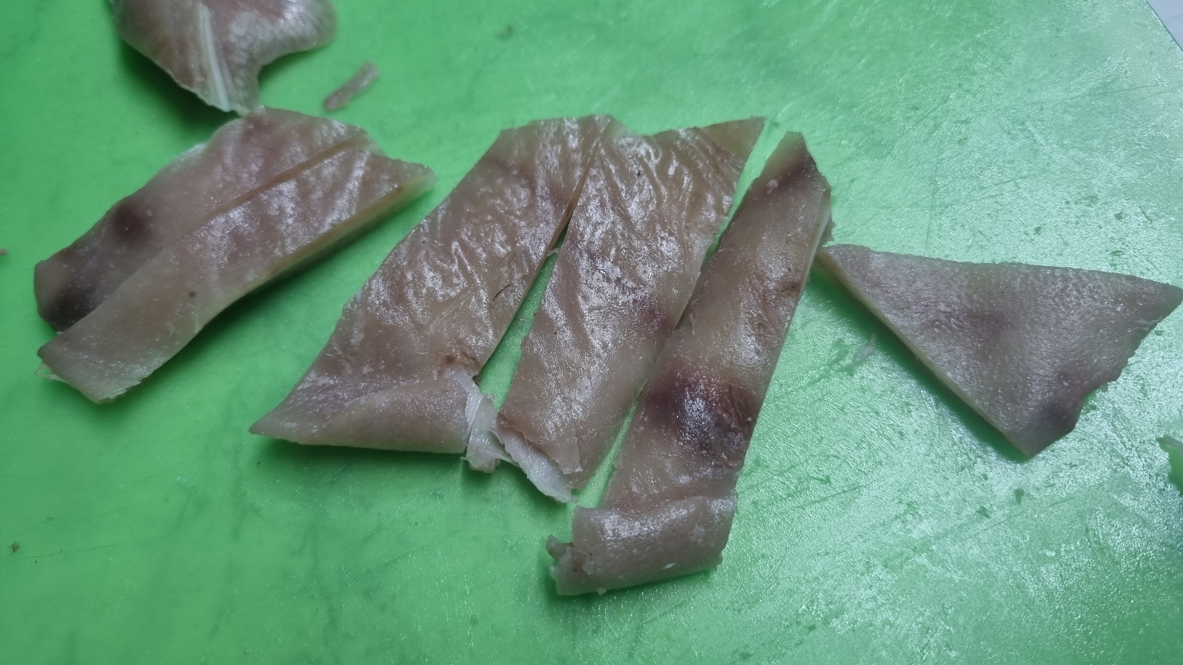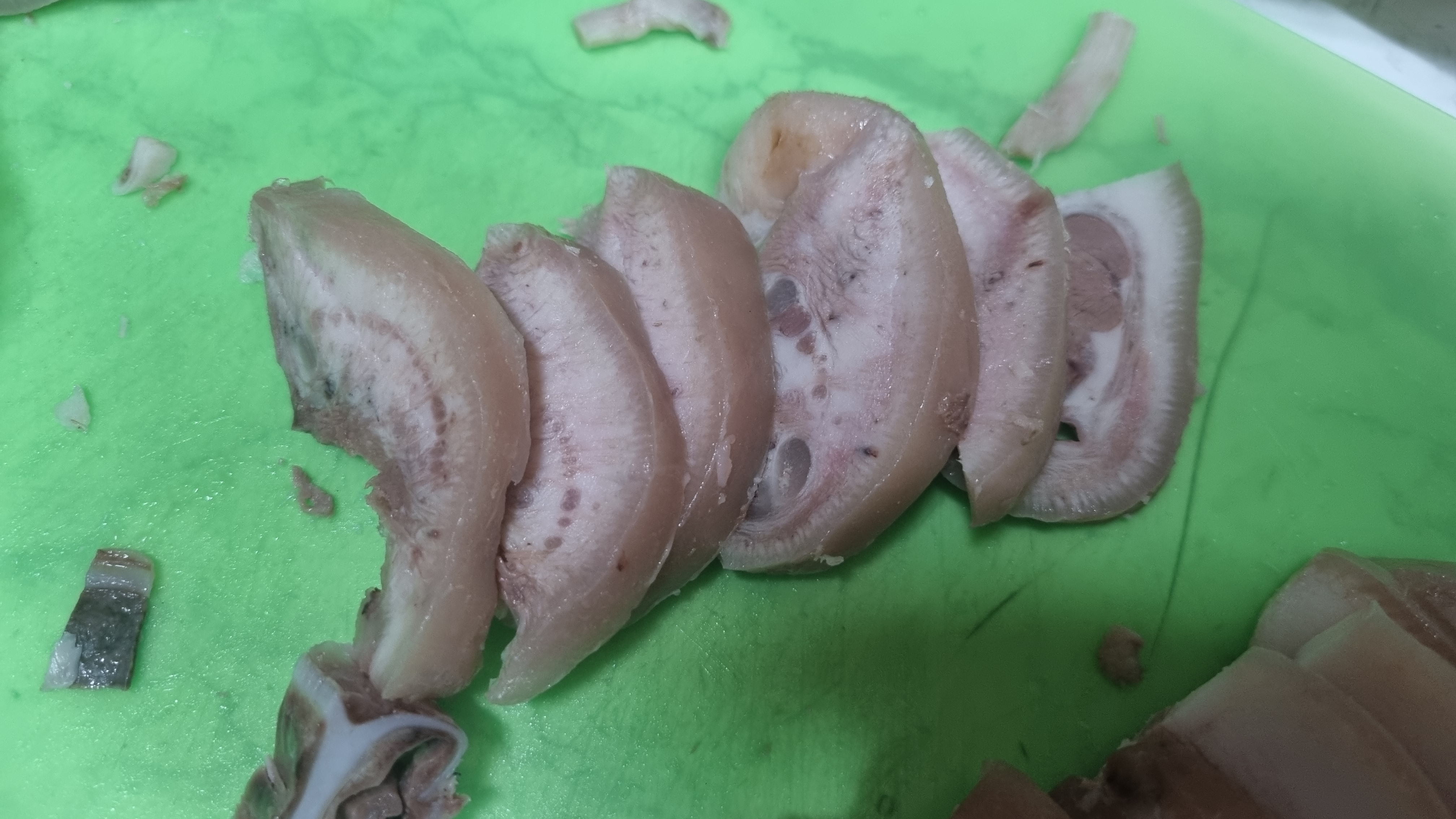 귀때기 부분인데 이부위가 생각보다 엄청 맛있고 좋아하시는 분들이 많습니다. 필자도 길쭉하게 썰어 먹는데 살짝 오독오독 느낌도 있으면서 식감도 좋고 정말 맛이 좋습니다.