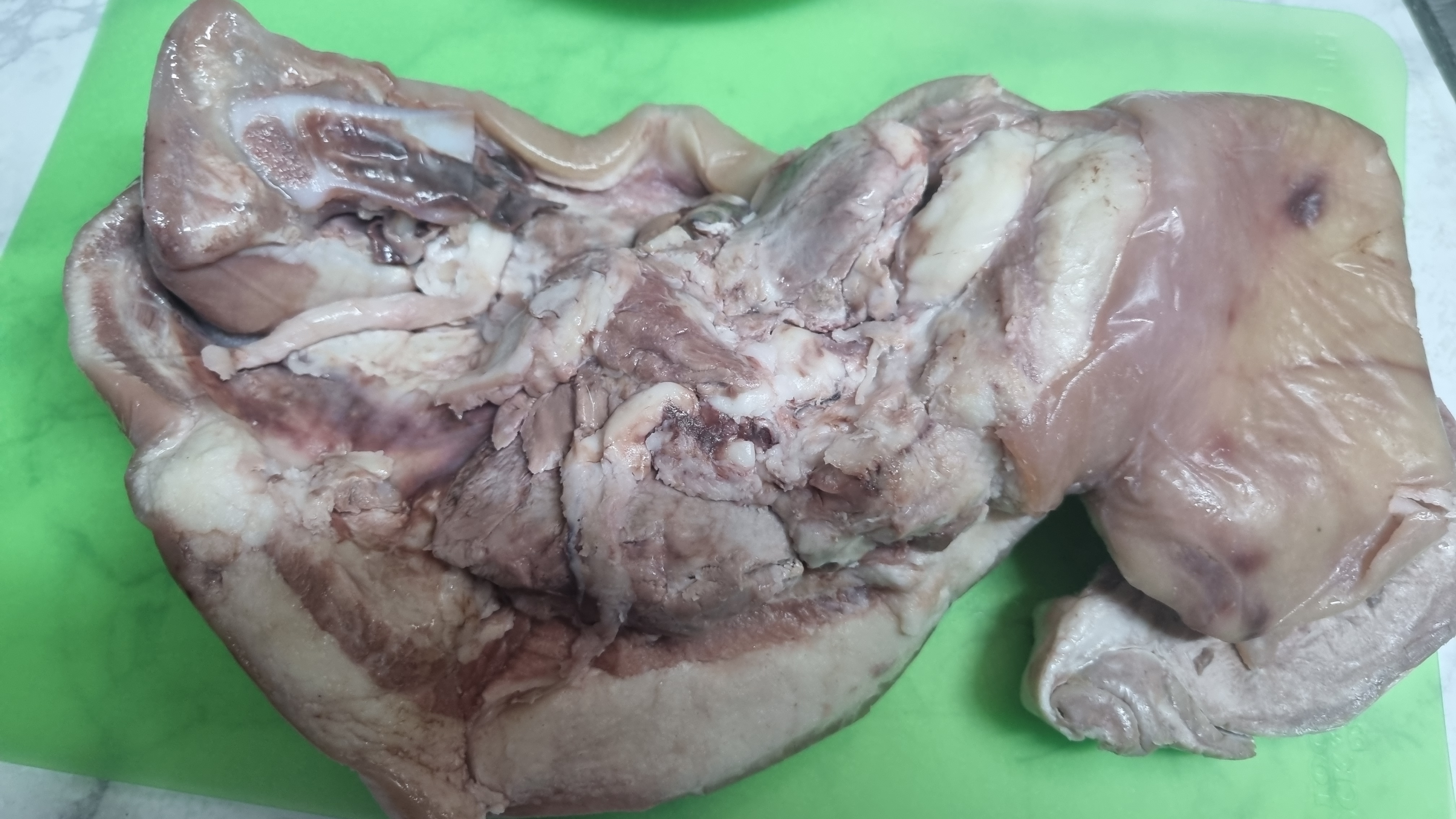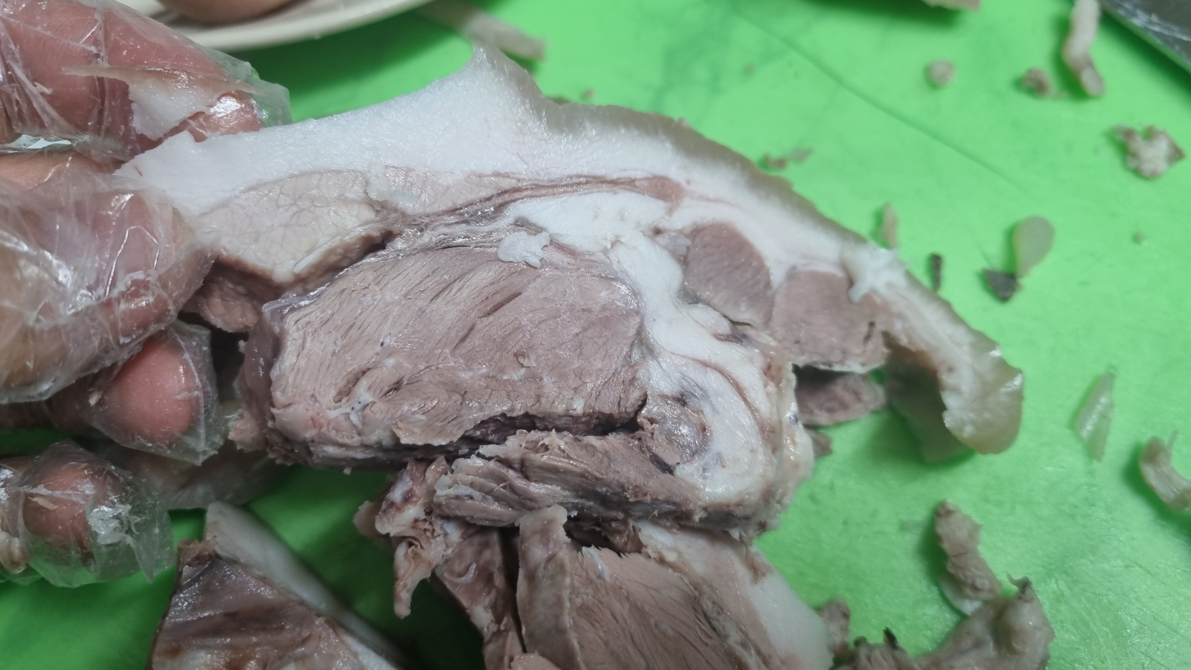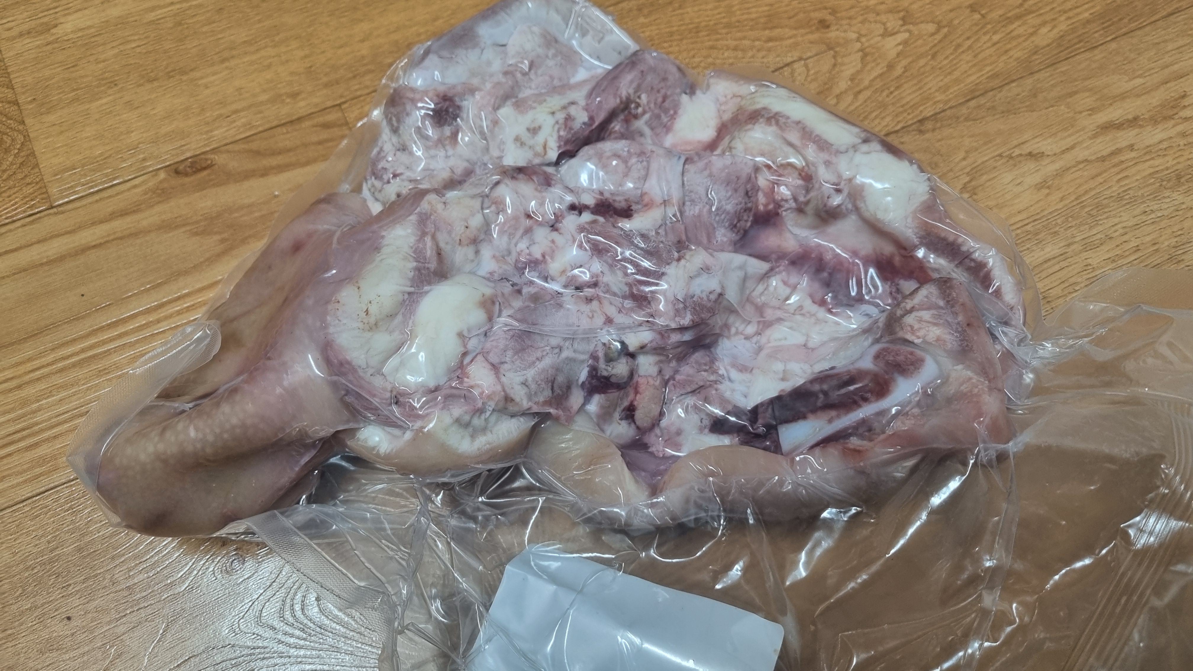 차갑게 식어 있는 상태이기 때문에 칼로 자르기 정말 쉽고 본인들이 먹기 좋은 크기로 자르시면 됩니다. 살고기 부위도 많고 비계살도 일부 있으며 살코기는 아니지만 쫀득한 부위도 많이 있습니다.