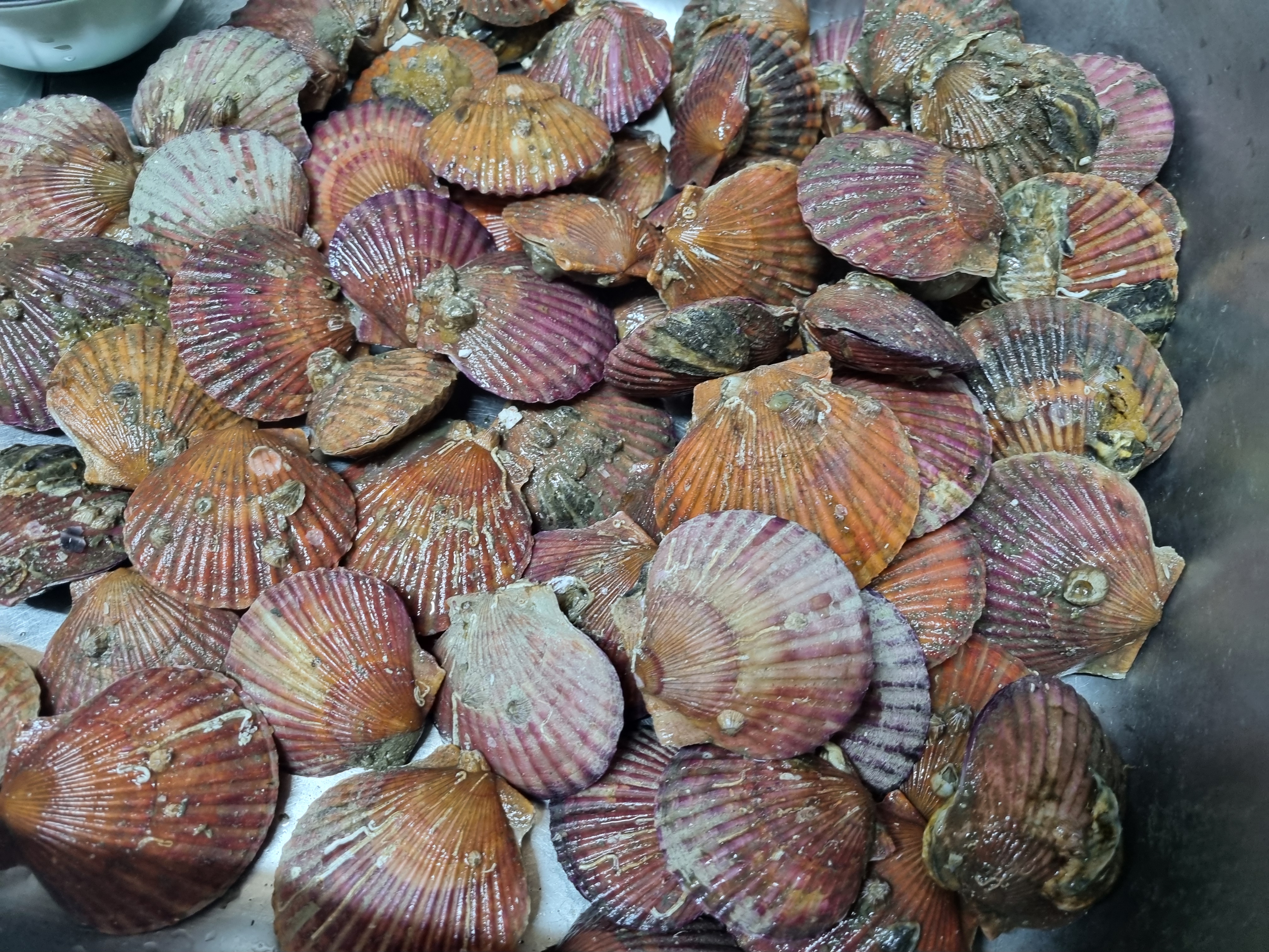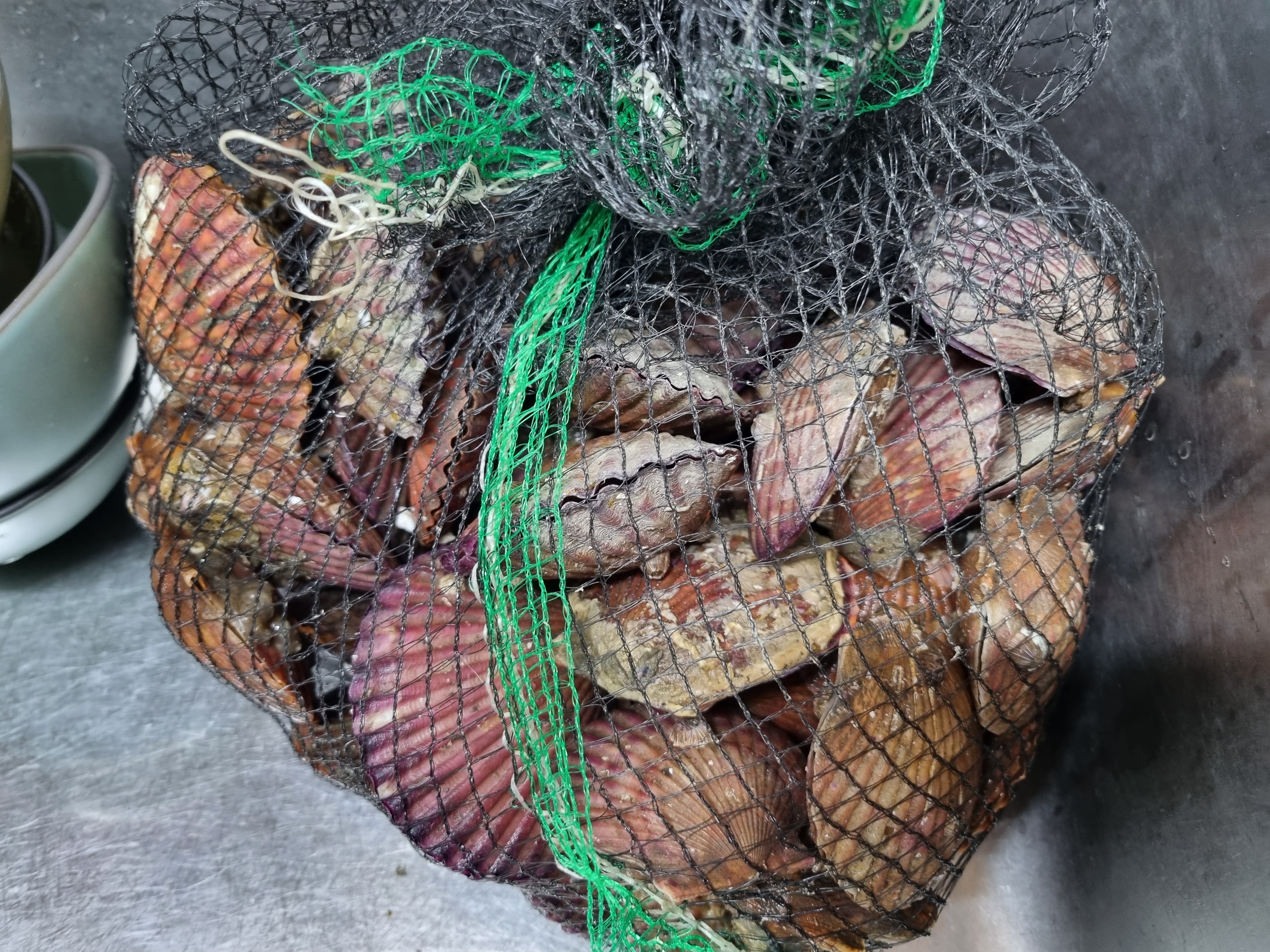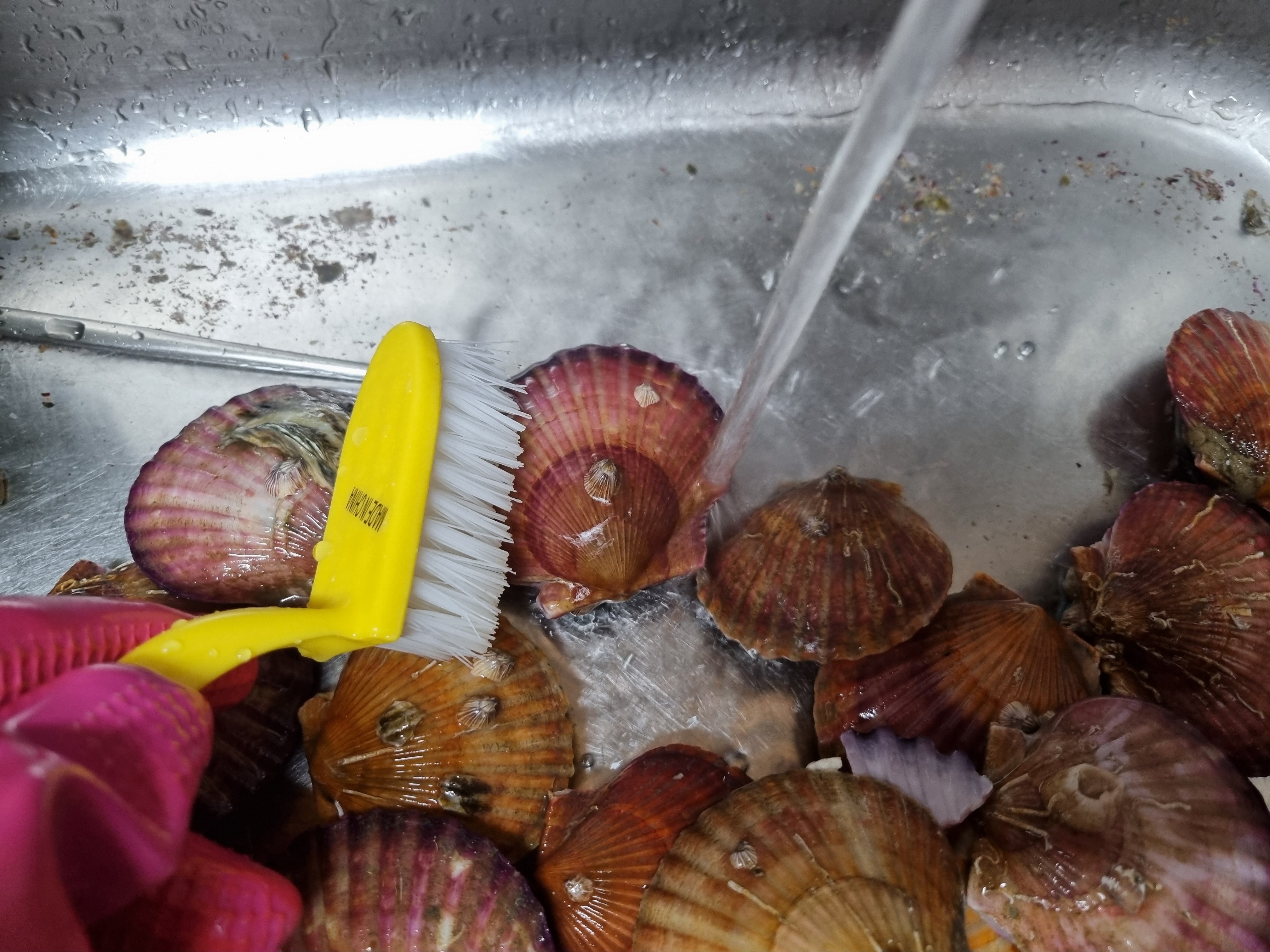 먼 구입하면 아주 깨끗이 씻어진 것이 있는데 그래도 집에서 다시 한번 씻는 것이 좋으며 씻는 방법은 물로 한번 가볍게 헹구어 주고 이어서 수돗물을 뿌리면서 솔을 이용하여 가리비 껍데기에 있는 오염물들을 제거합니다.