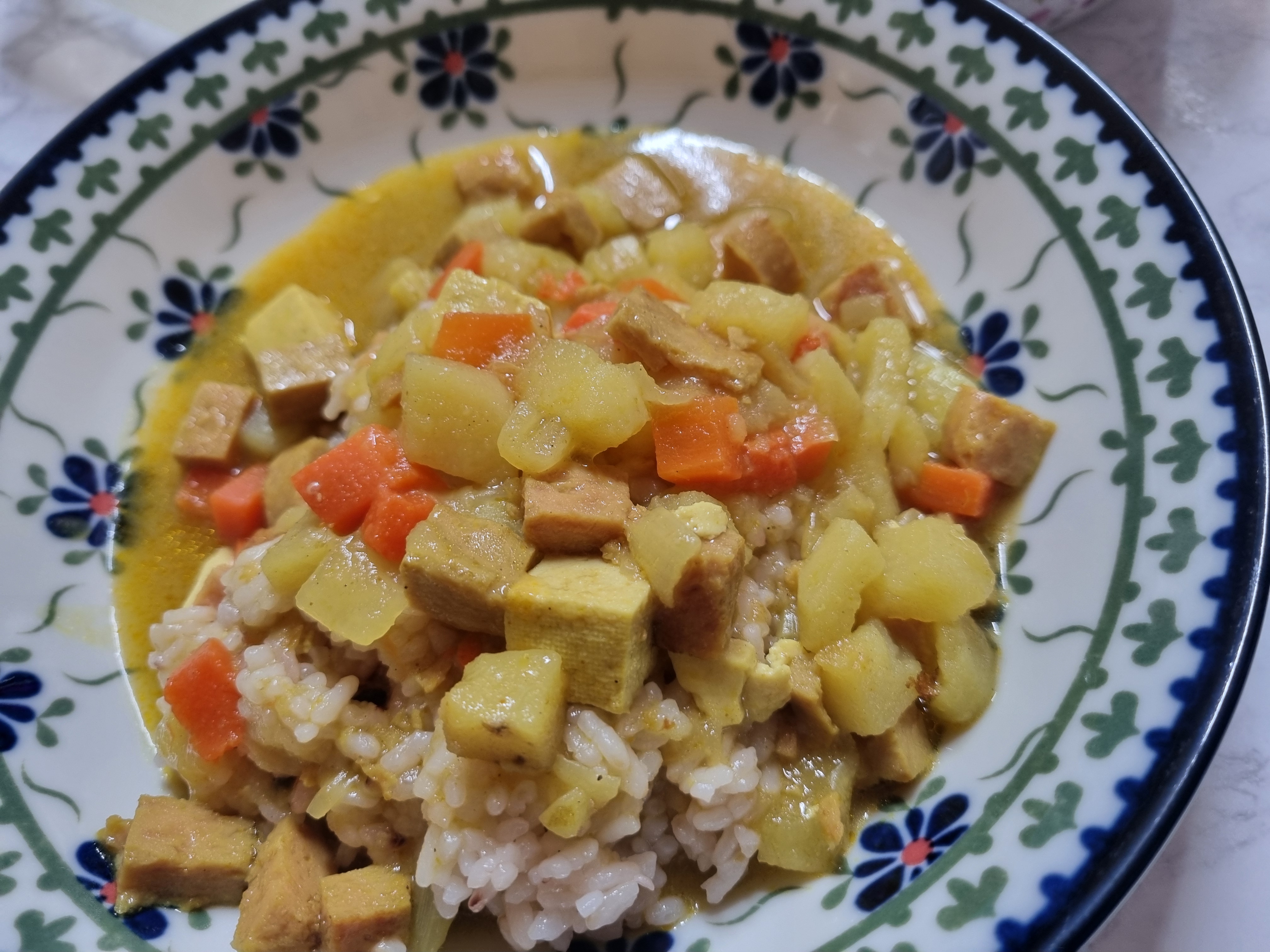 두부를 넣은 후 1~2분 끓이다가 가스렌인지 불을 끄면 맛있는 카레가 완성됩니다.