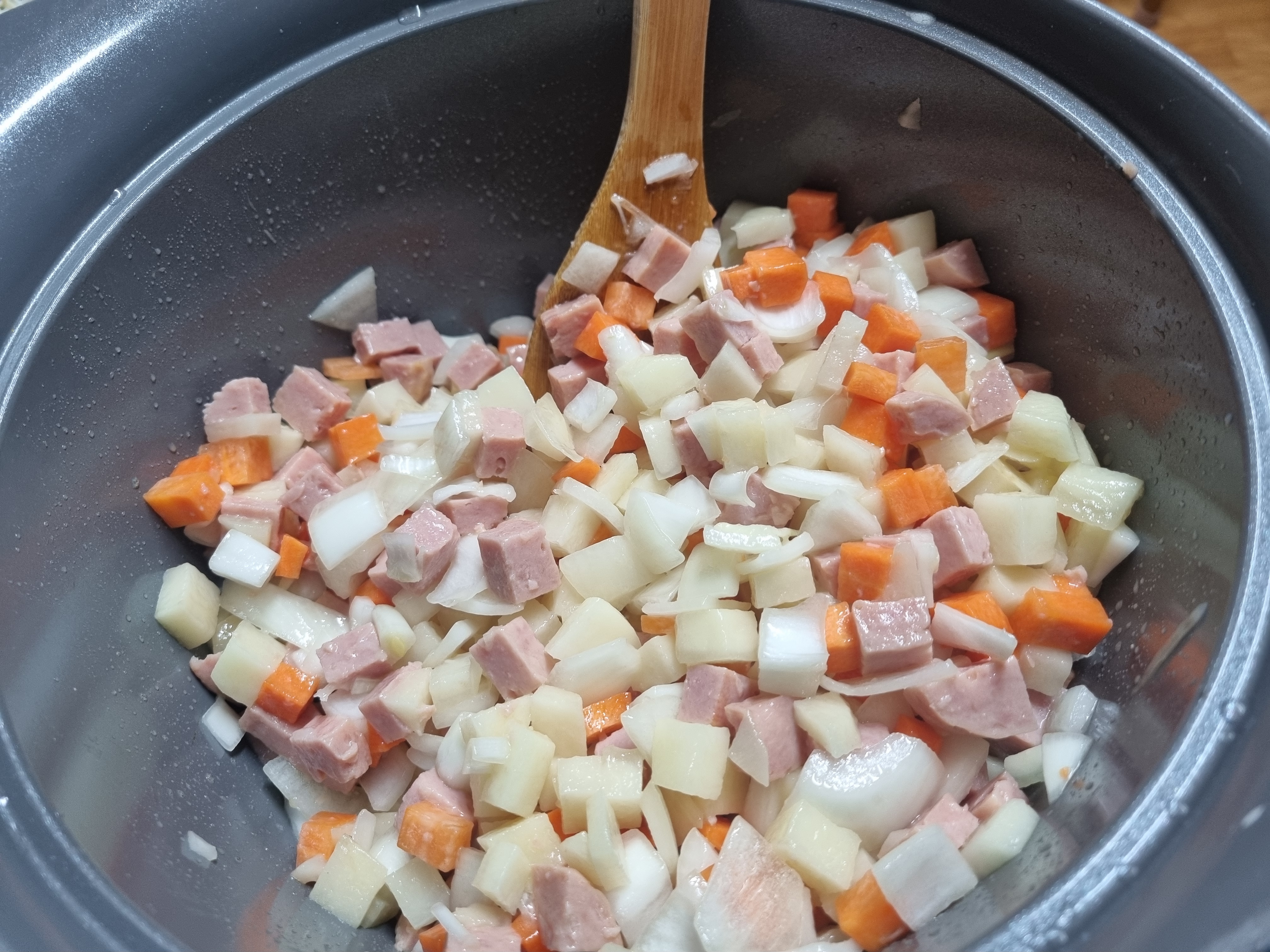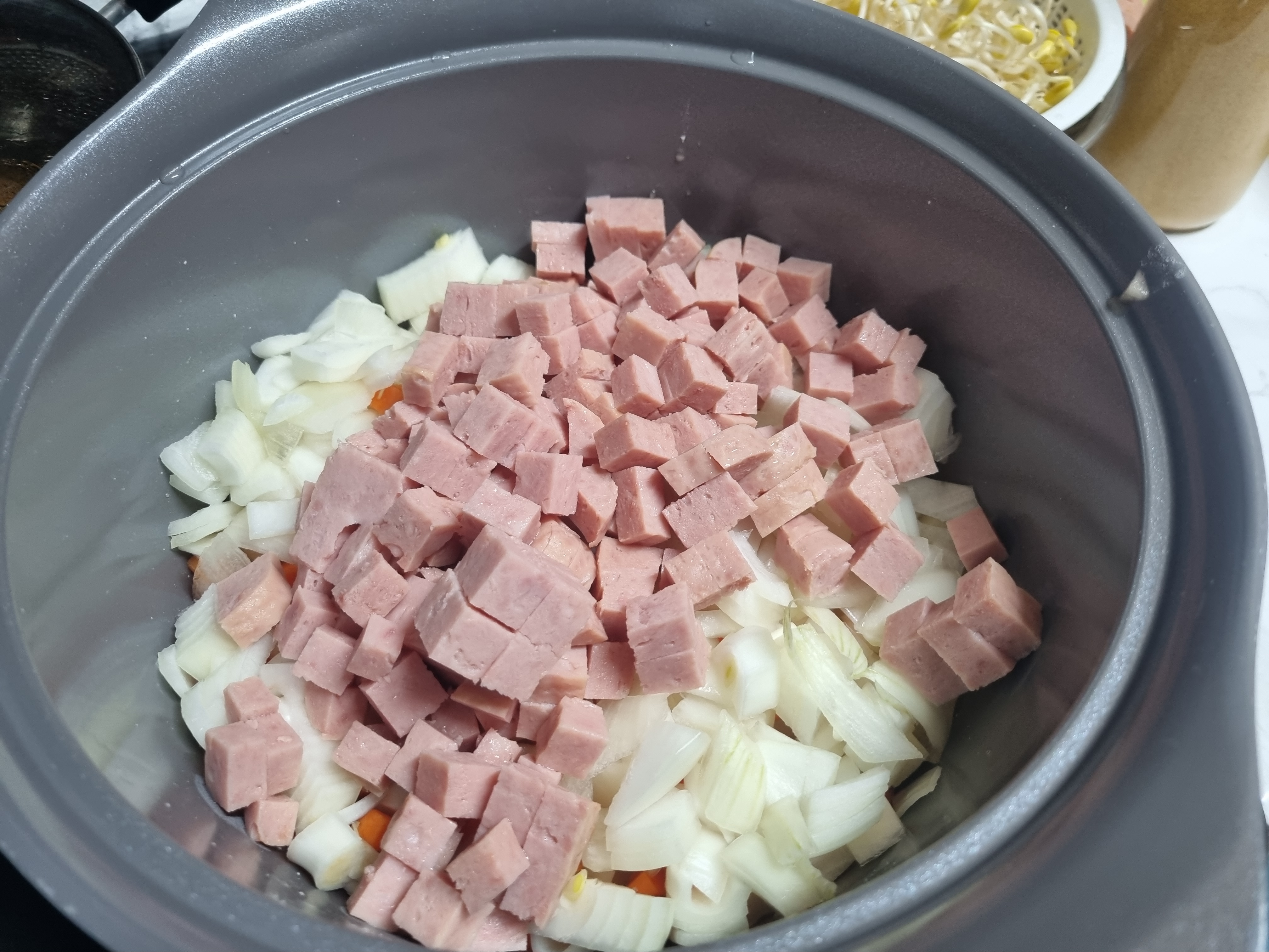 돼지고기를 넣어도 되는데 귀찮고 불편현새 스팸을 대체했습니다.