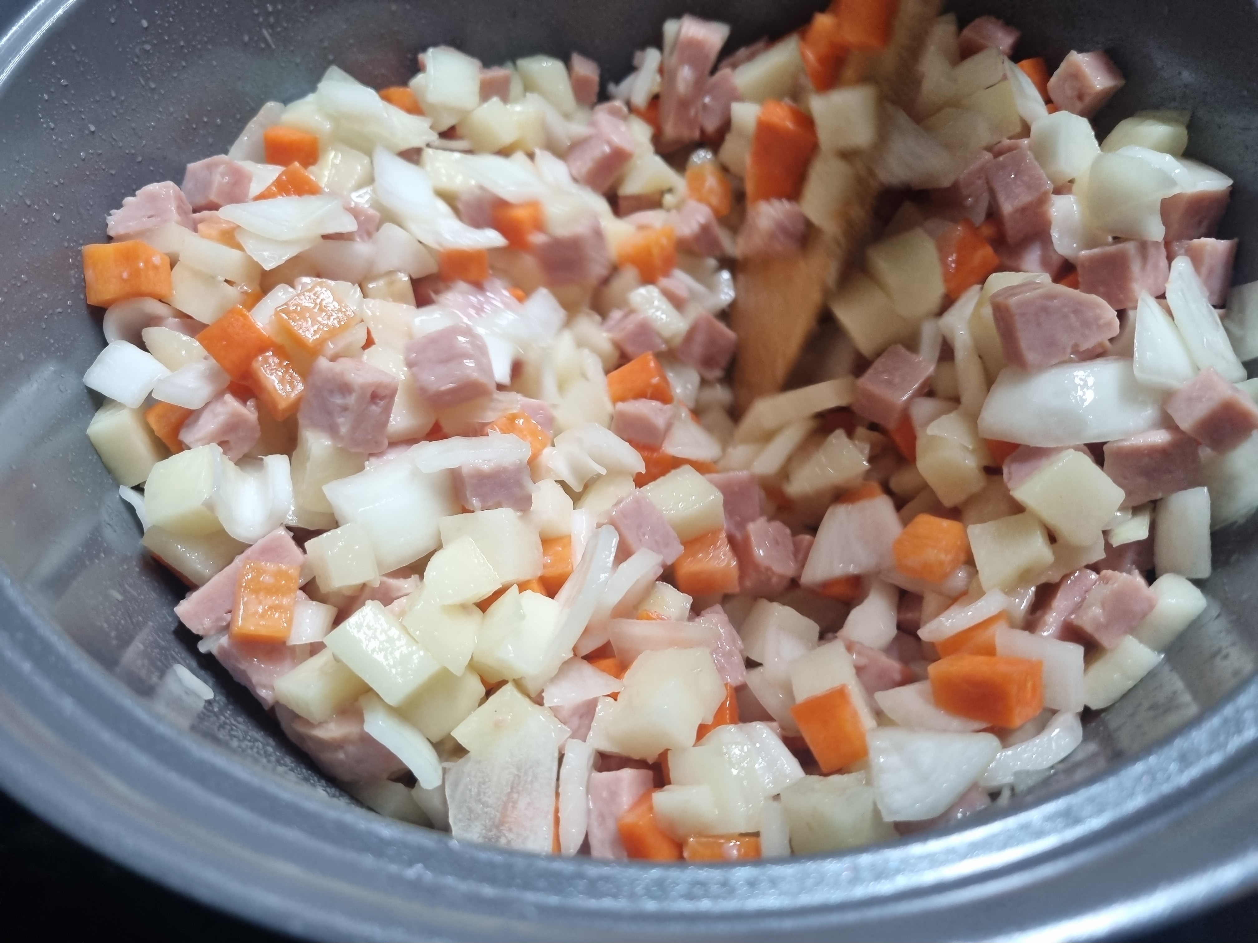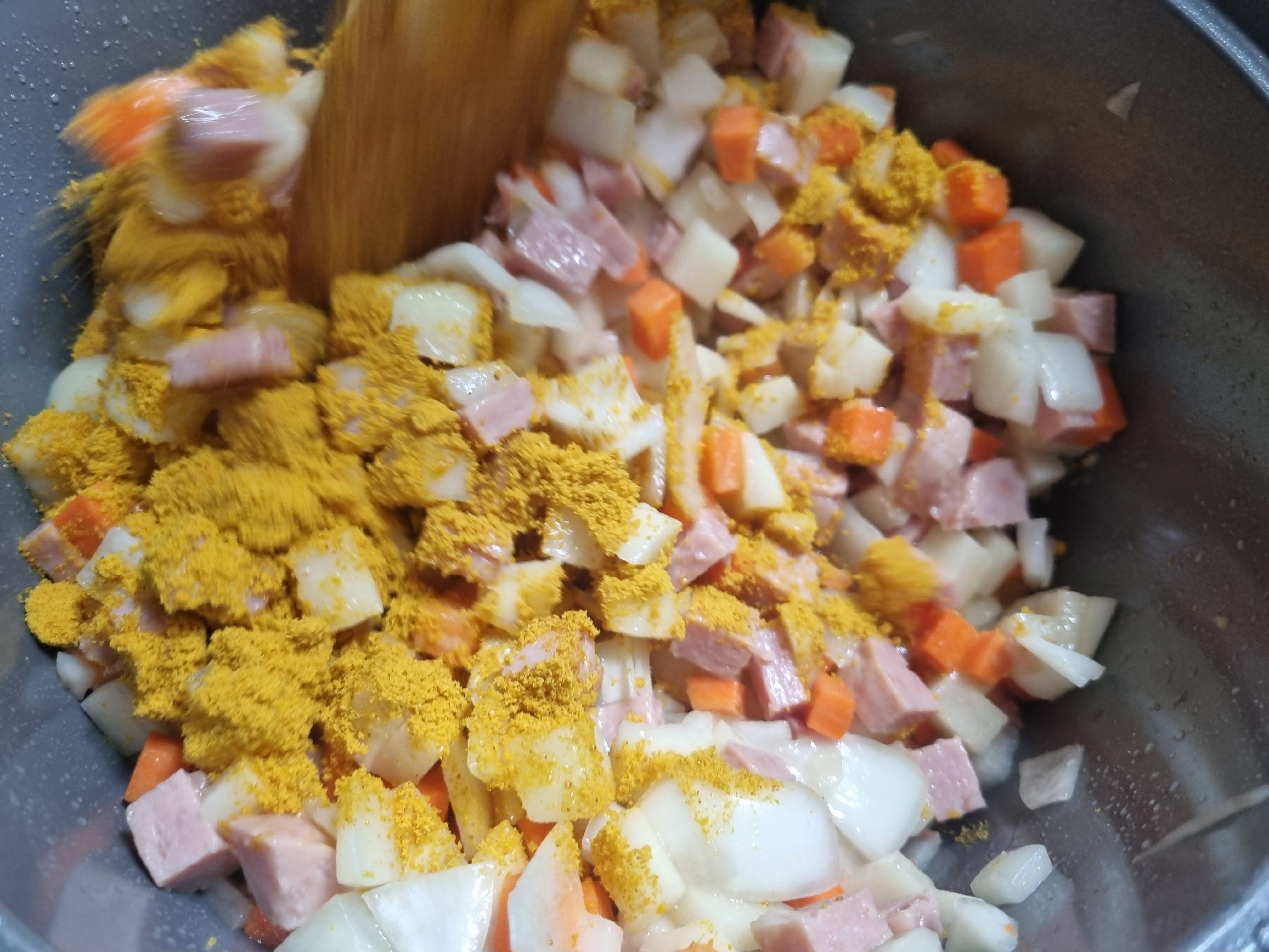 여기서 카레의 양도 본인의 입맛에 따라 약간 조절할 수 있으며 스팸은 소시지나 햄으로 대체가 가능하며 양은 꼭 500g을 맞출 필요없고 집에 있는 것으로 하면 되는데 애들 위주로 먹을 것이라 평소보다 조금 더 많이 넣었습니다.