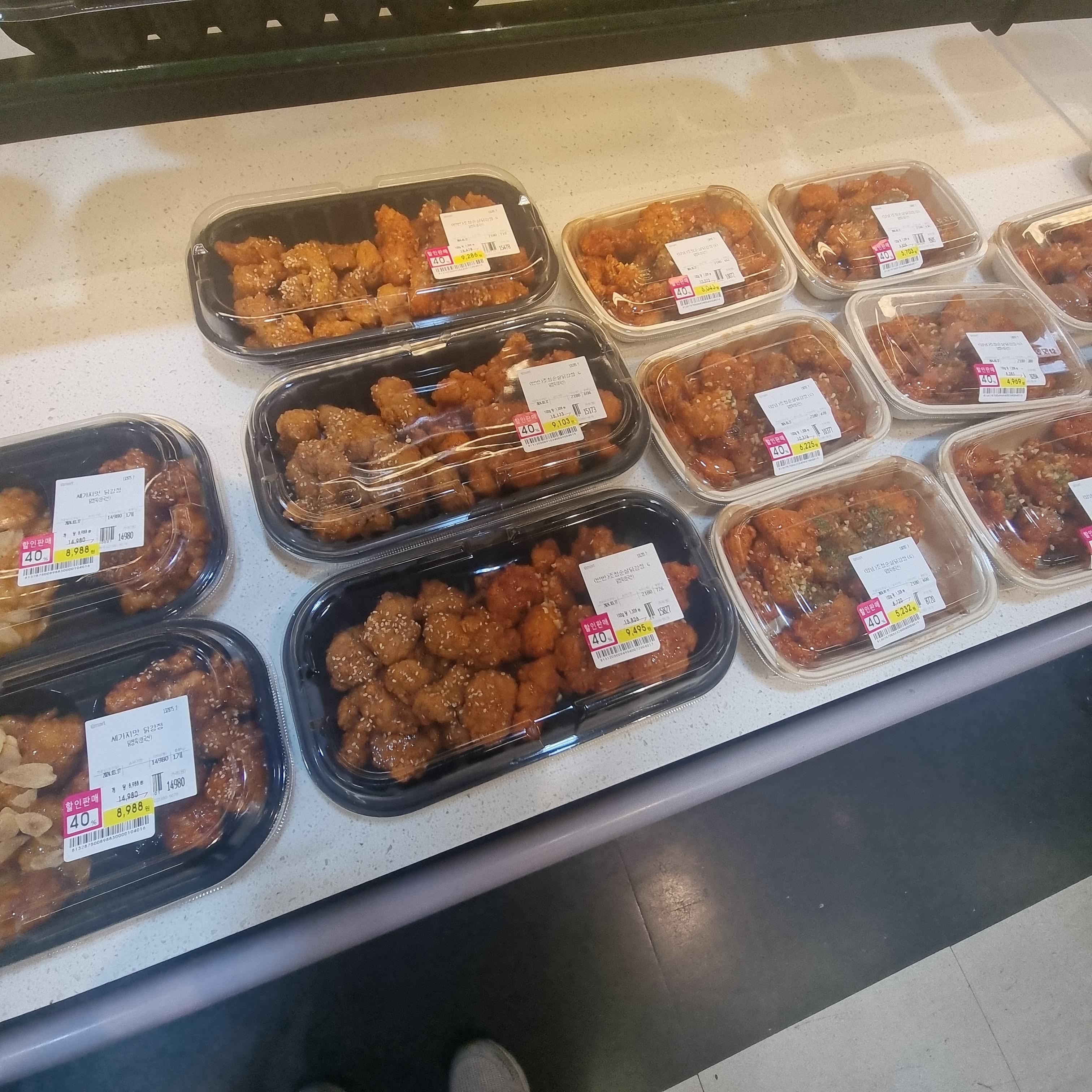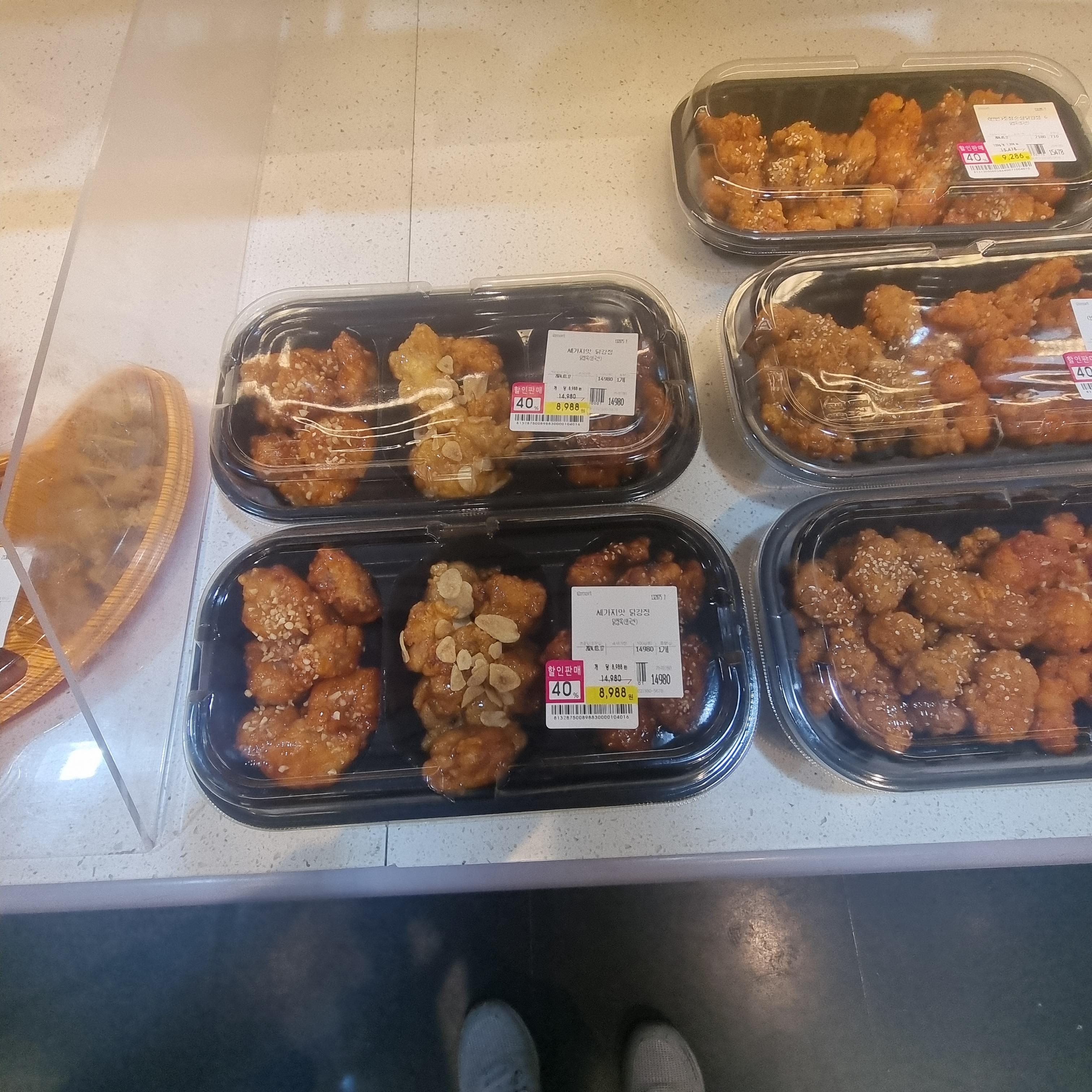 대형마트 치킨은 이미 많이 알려졌는데 치킨보다 더 가성비 좋고 인기있는것이 바로 닭강정입니다. 순살로 되어 있고 여러 가지 맛으로 구성되어 그 종류도 많아 선택의 폭이 넓습니다.