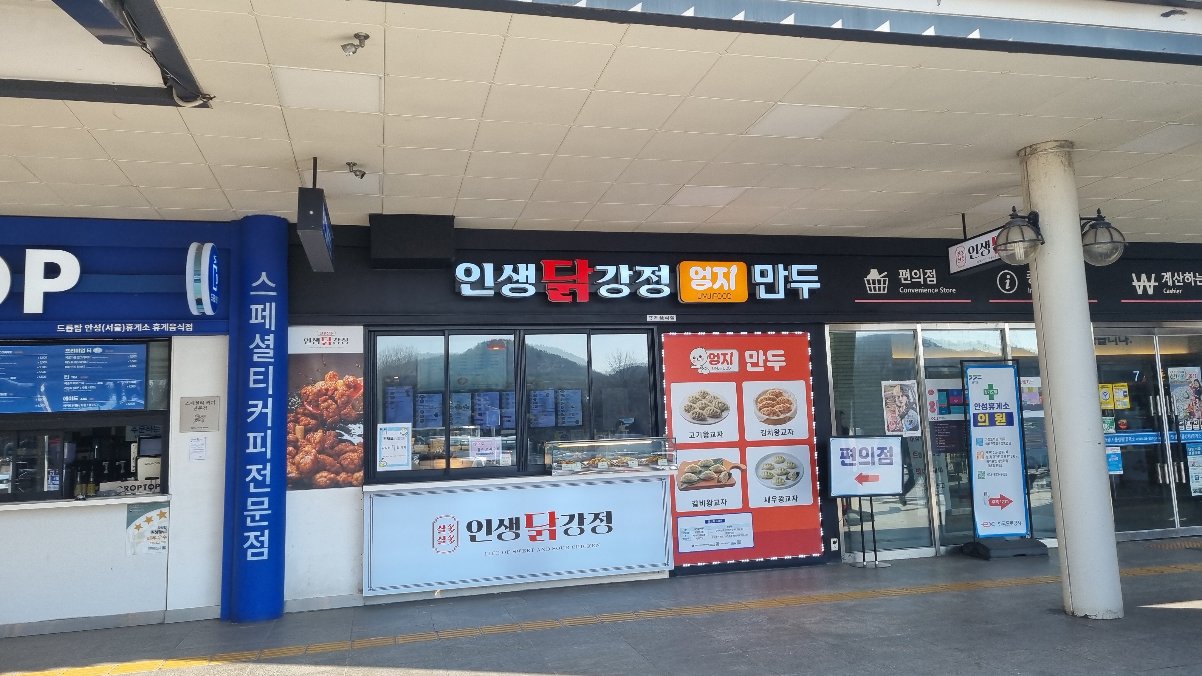 커피는 기본이고 닭강정이나 만두도 판매를 하는데 시간이 지날수록 휴게소에서 판매하는 메뉴나 종류가 계속 많아진 것 같습니다.