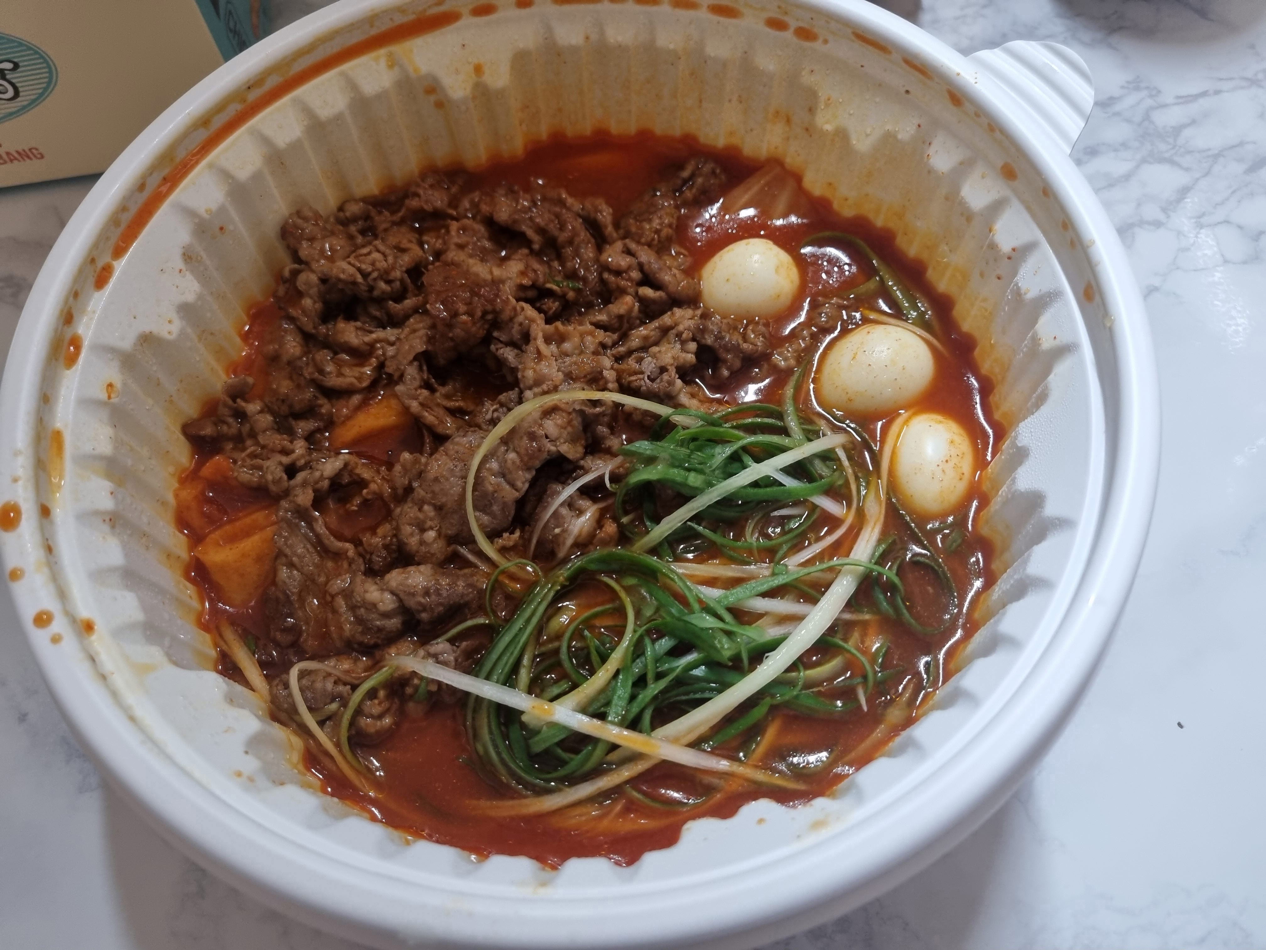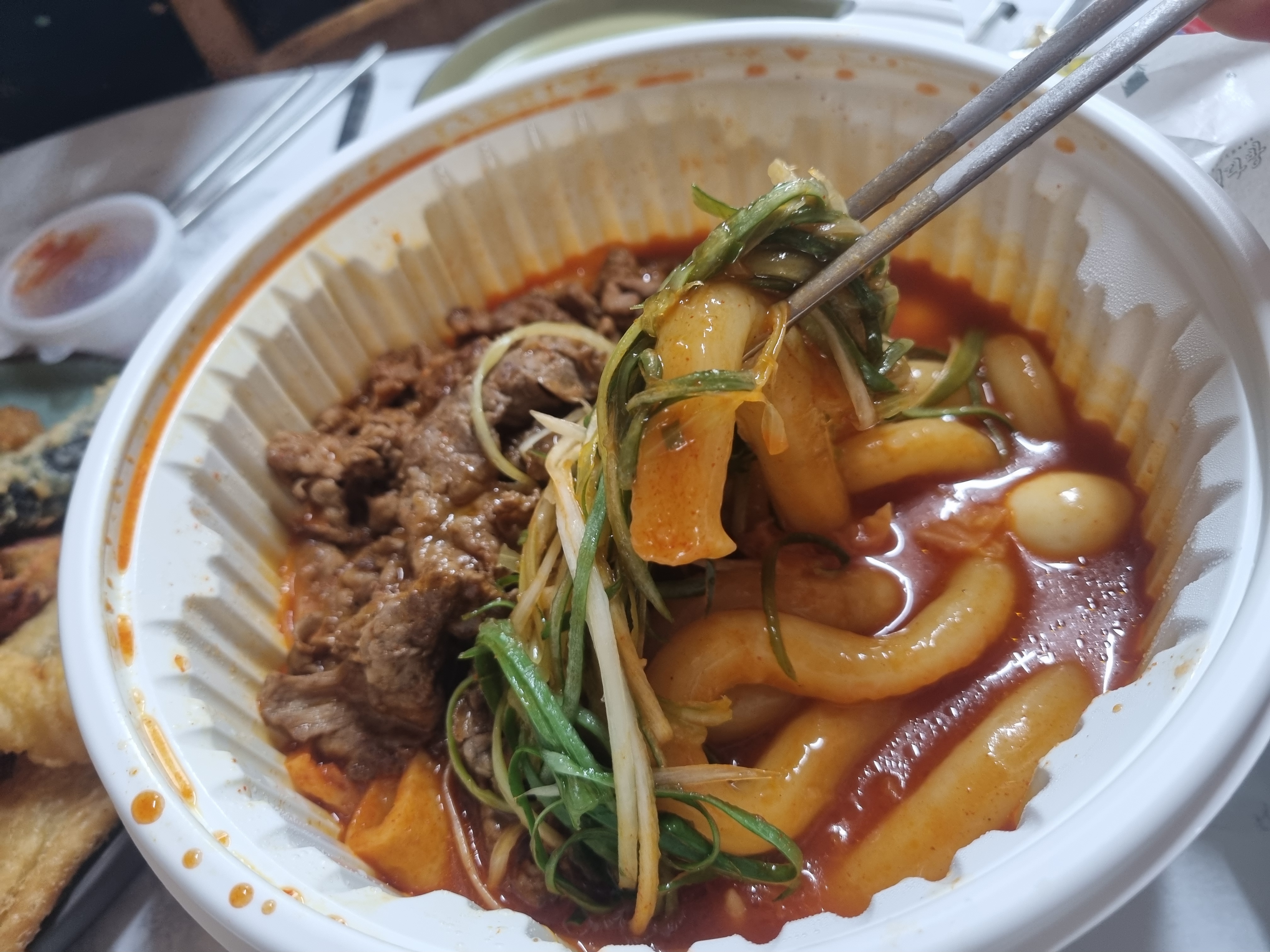 맛은 정말 좋습니다. 소고기와 누들떡이 들어 있는데 양념과 조화를 잘 이루어 기존 떡볶이와는 다른 색다른 맛을 느낄 수 있가 있습니다.