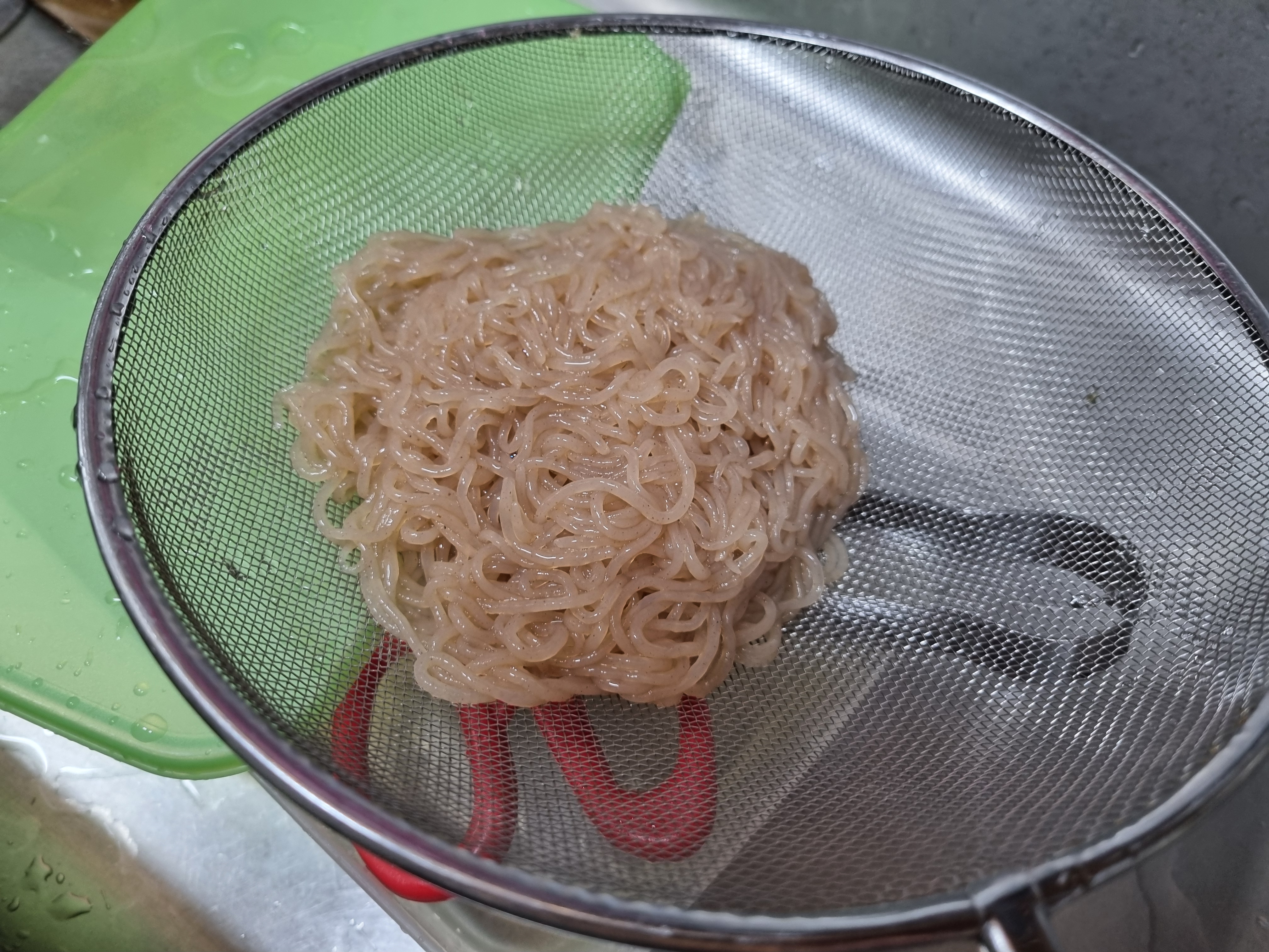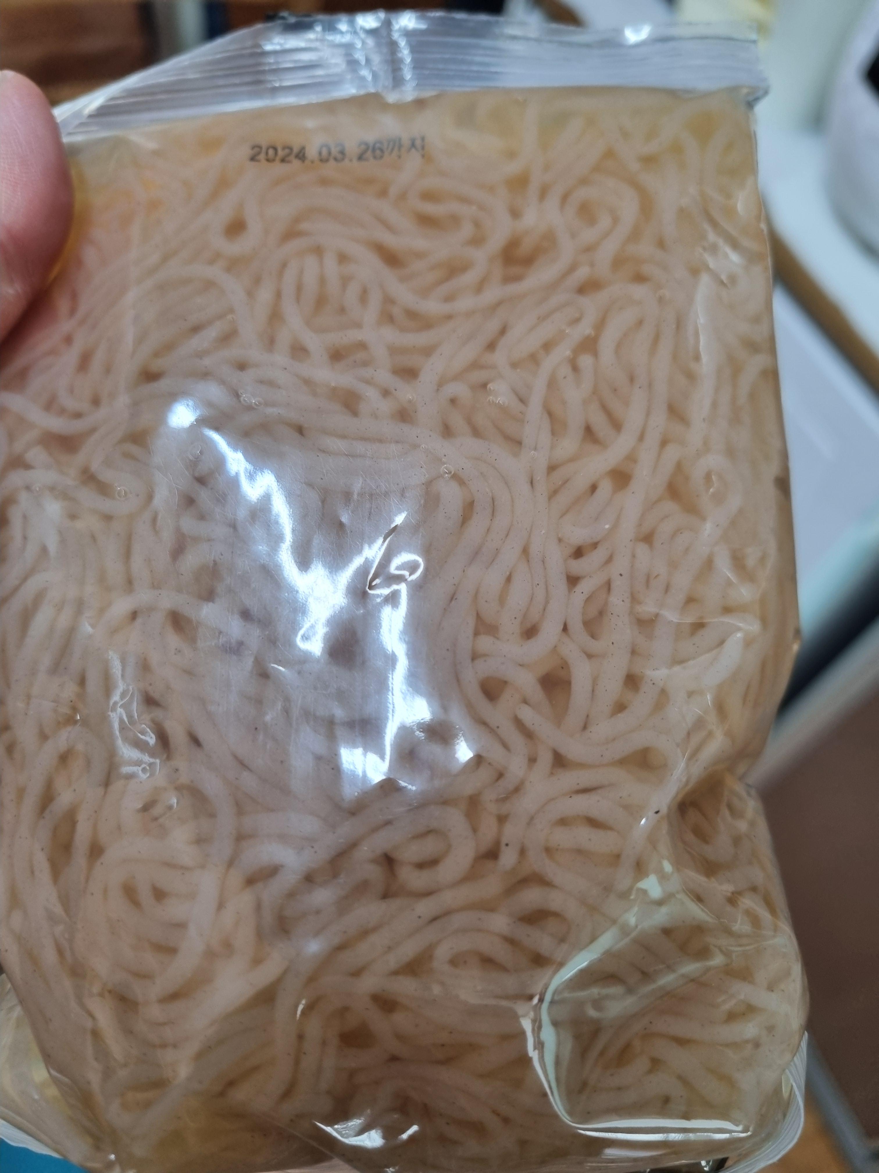 이렇게 잘 풀어주면 되며 여기에 면을 넣어 드시면 곤약메밀면이 되는 것입니다.