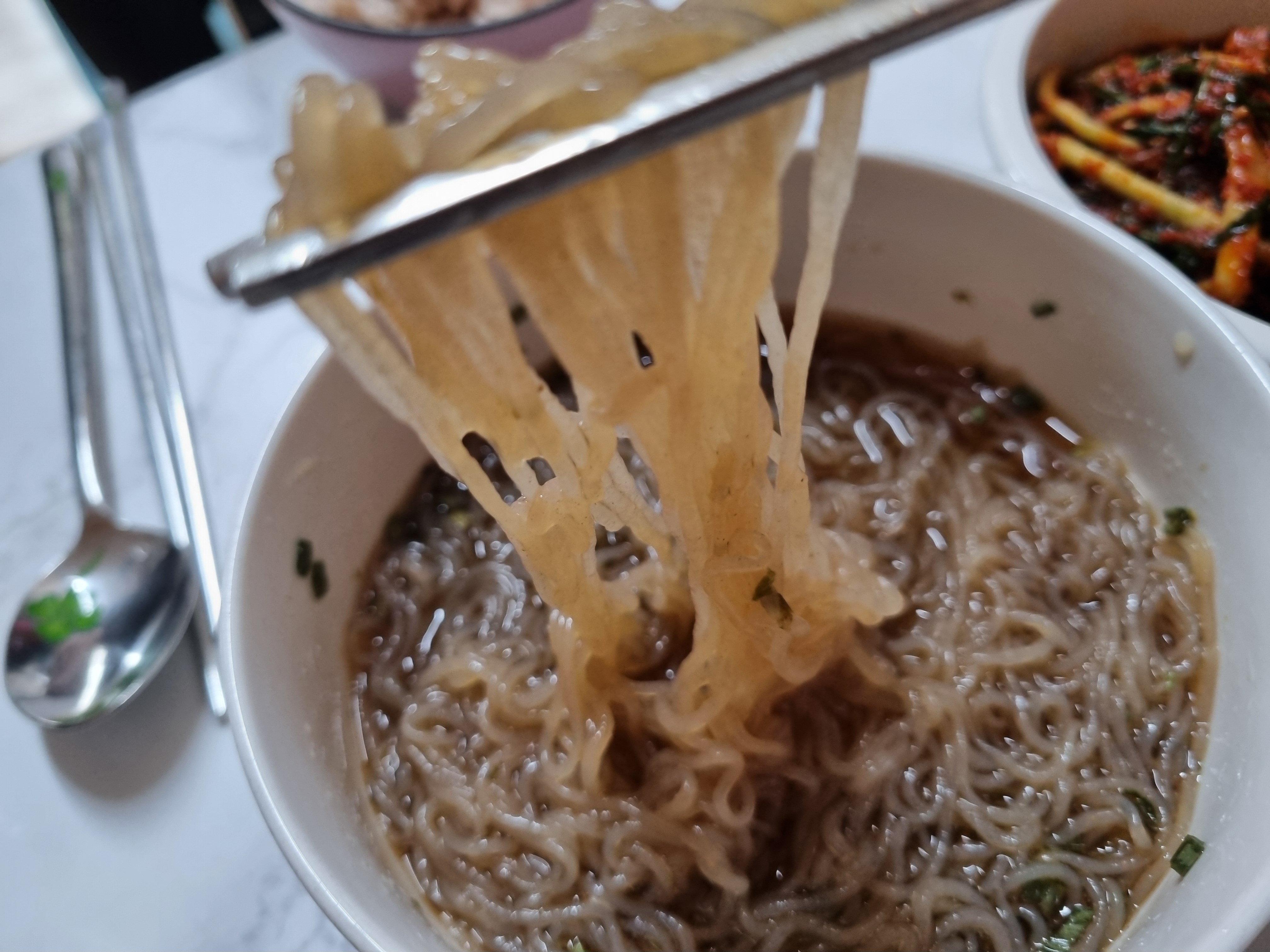 국물까지 아주 맛이 좋았으며 라면과는 다른 독특한 맛으로 좋았습니다.