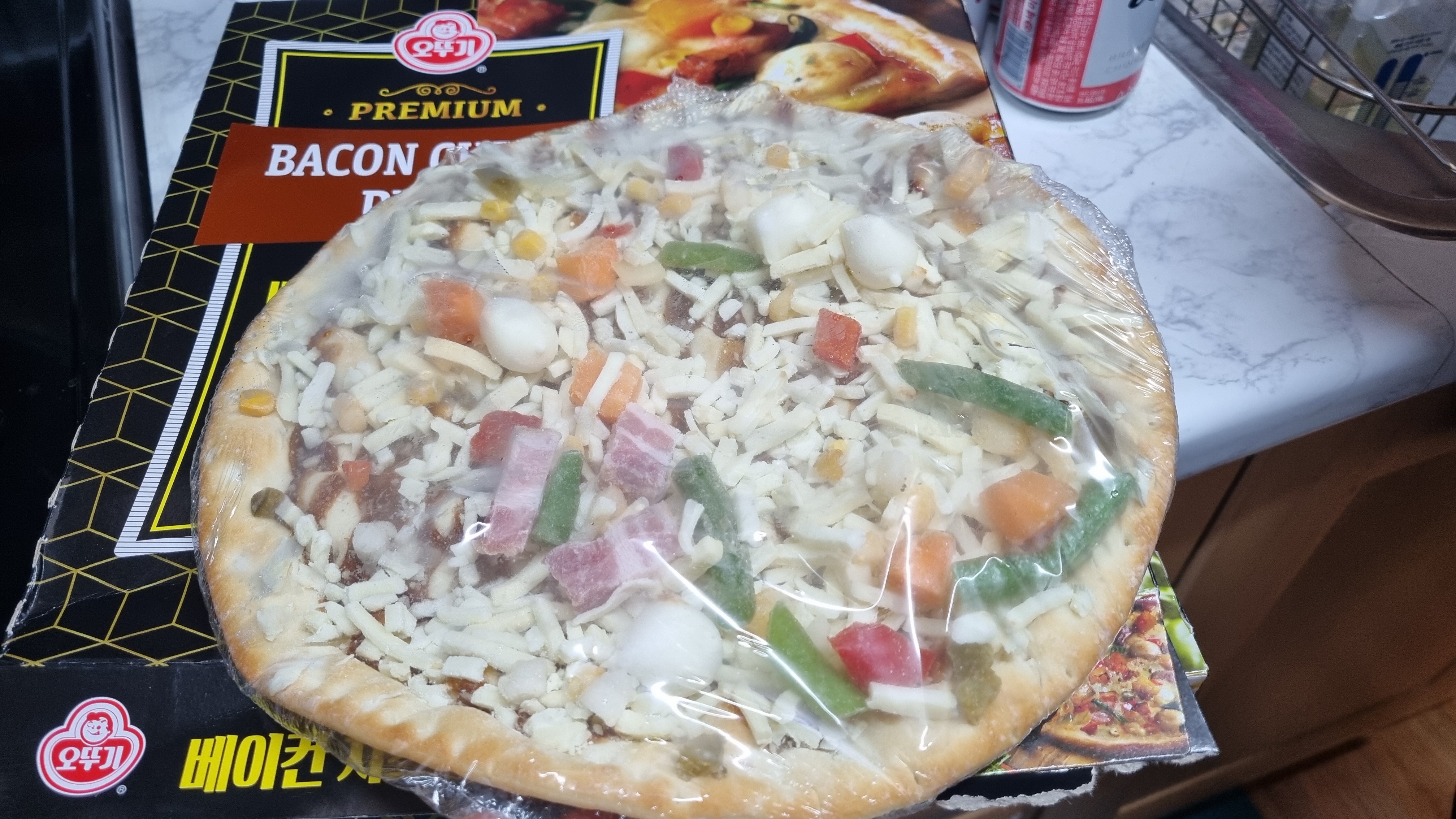 위의 사진은 냉동된 피자를 꺼낸 것인데 보기도 좋고 맛도 좋을 듯합니다.