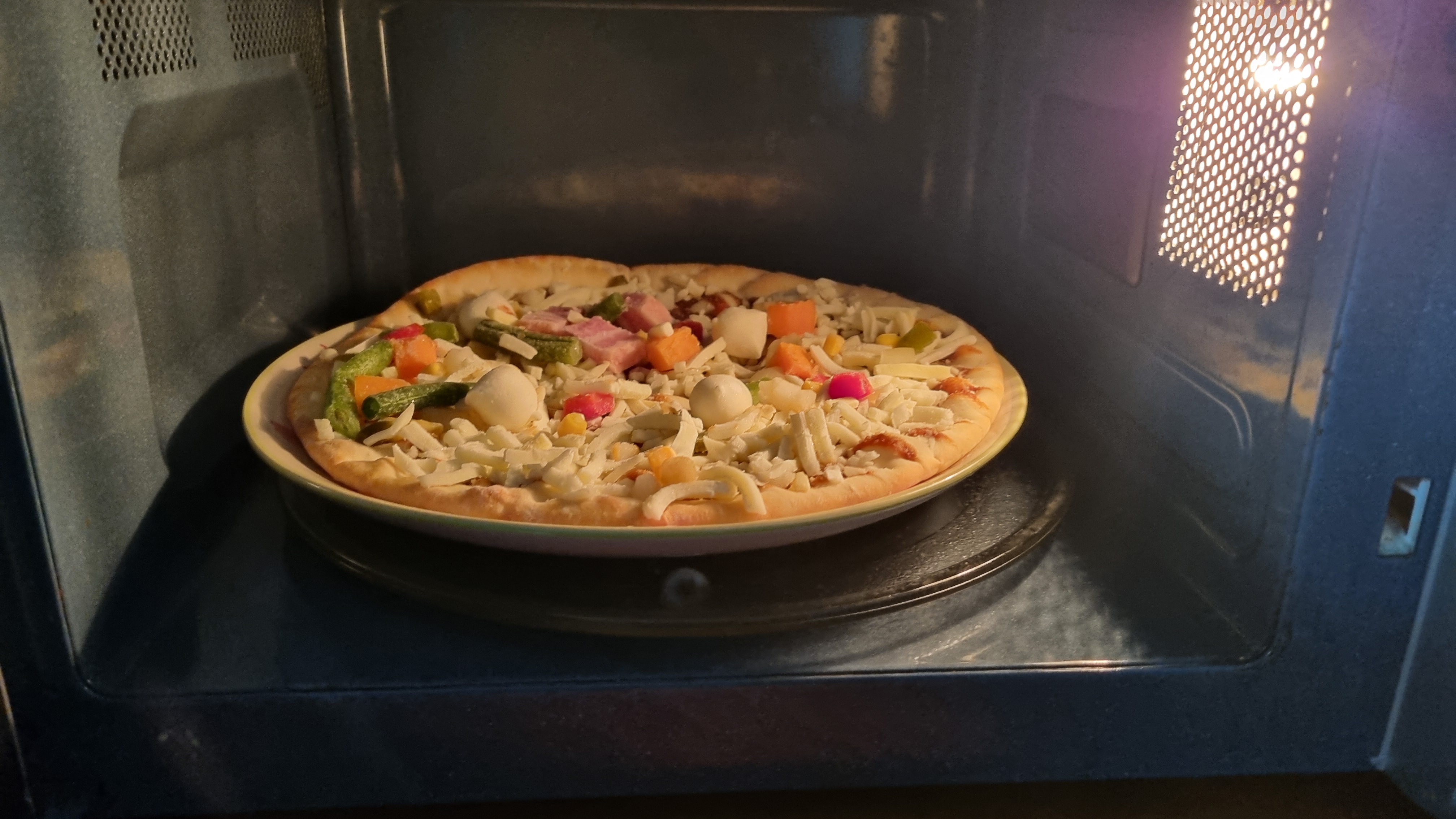 우리는 전자렌인지 피자 메뉴가 있어 바로 누르고 조리를 시작했는데 시간은 5분이었습니다.