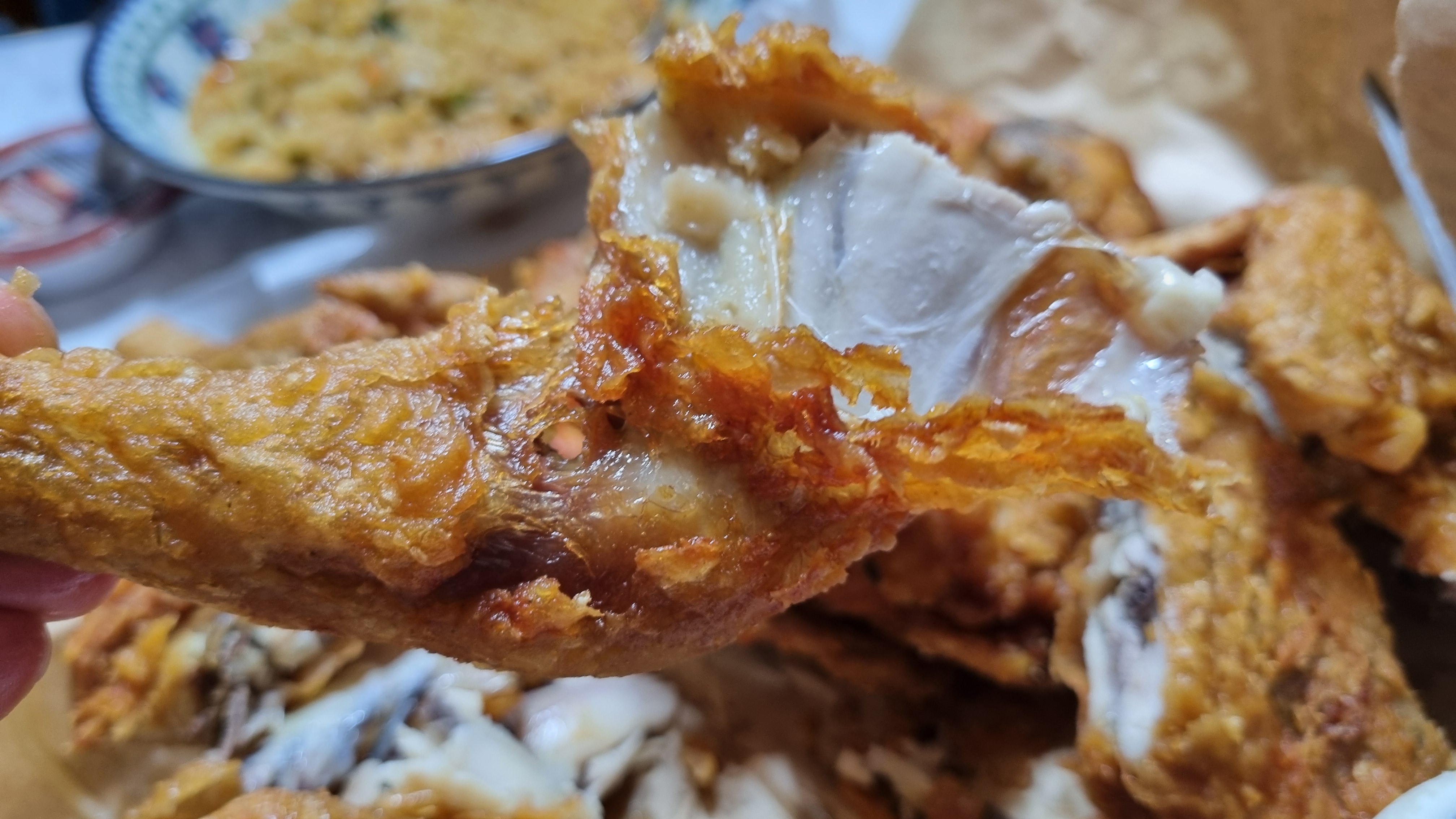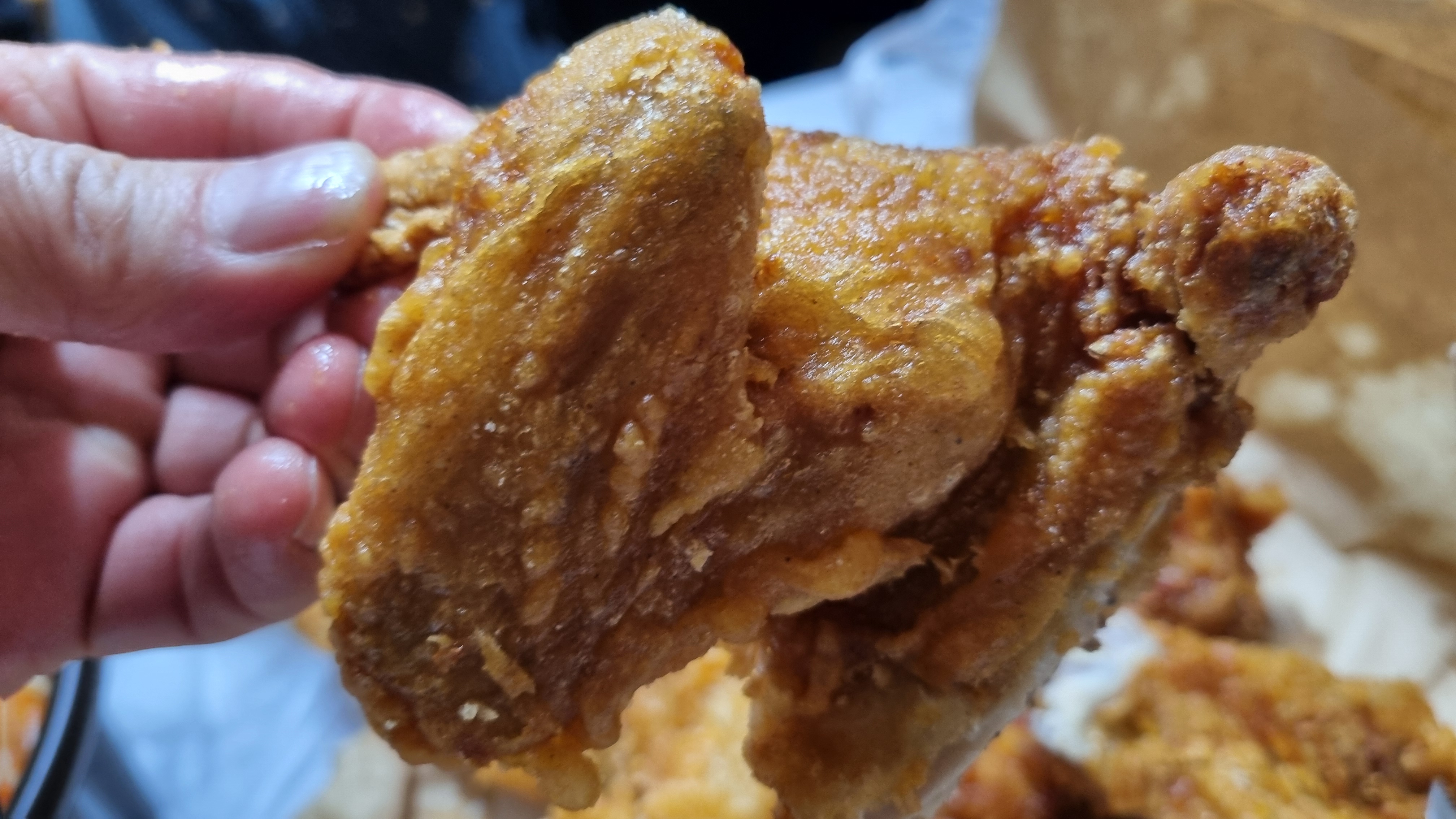 아주 바삭하게 튀겨지고 보기에도 아주 맛있게 보이겨 후라이드이지만 기본양념이 되어 있어 아주 살짝 매콤한 맛이 있어 더 좋은데 초등생들도 먹을 수 있는 수준입니다.