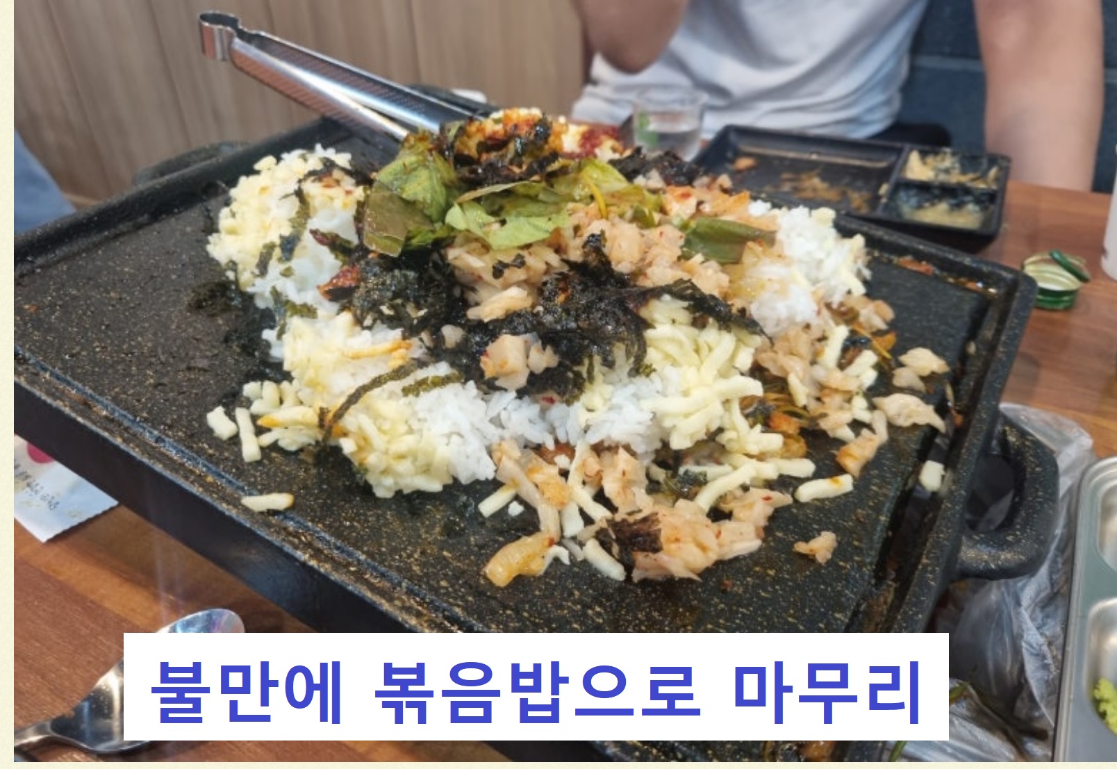 고기를 맛있게 먹고 불판에 공기밥을 볶아서 드시면 마무리를 아주 잘할 수 있는데 이것도 종업원이 아주 기술적으로 잘 볶아주는데 괜찮습니다.