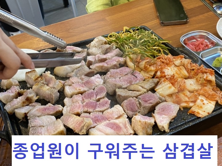 초기에 종업원이나 사장님이 직접 구워지는데 정말 잘 구워주고 고기를 자를 때도 크기와 위치를 아주 정확하게 하여 보기에도 좋습니다.