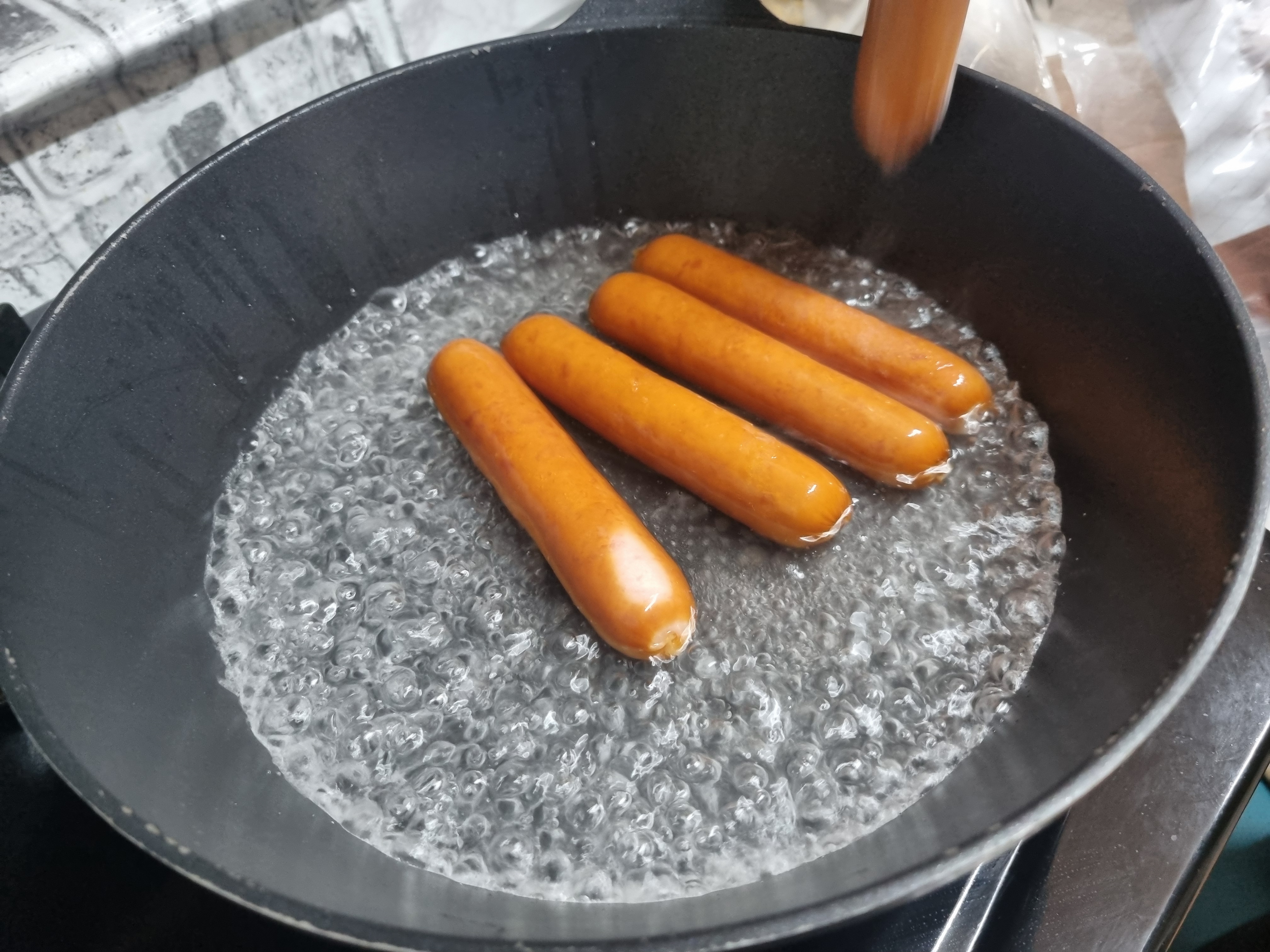 칼집을 내어 살짝 끓여주면 내부에 있는 색소나 방부제 같은 첨가제가 쉽게 제거되게 됩니다.